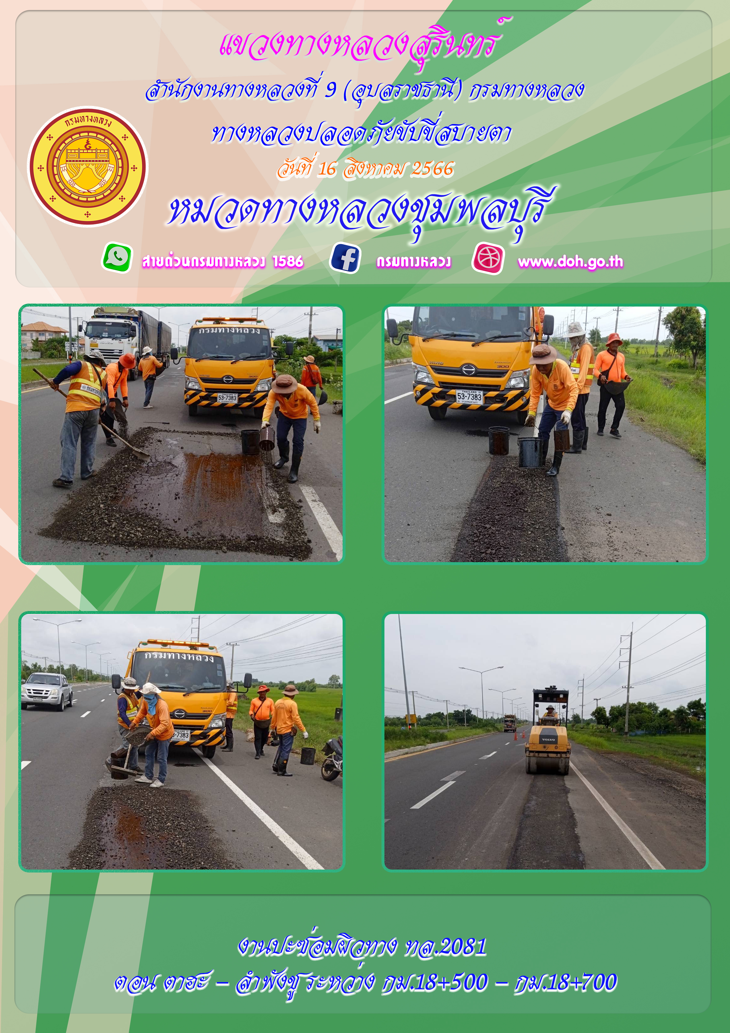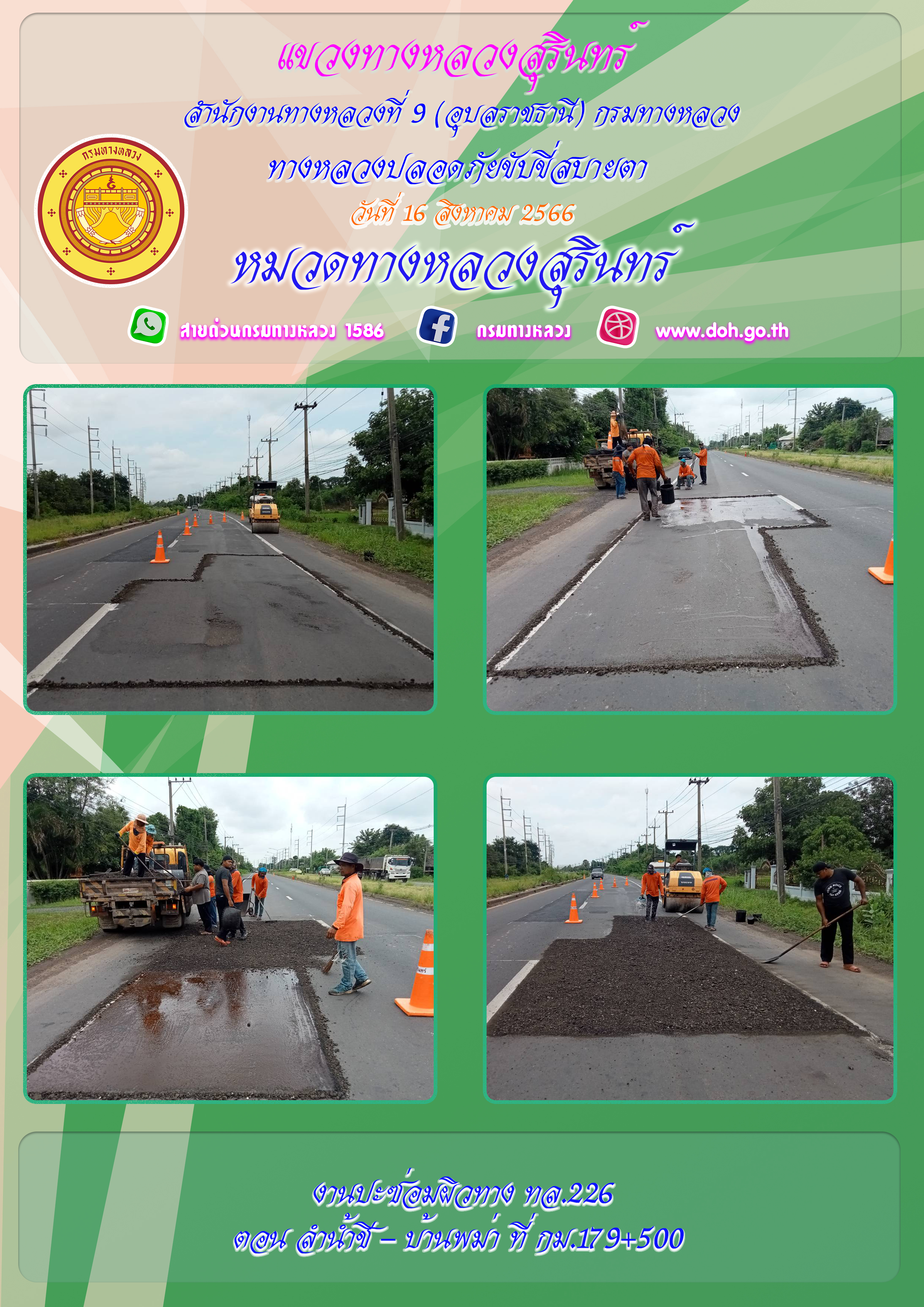 ข้อมูลภาพกิจกรรม : ทางหลวงปลอยภัย ขับขี่สบายตา 16 สิงหาคม 2566