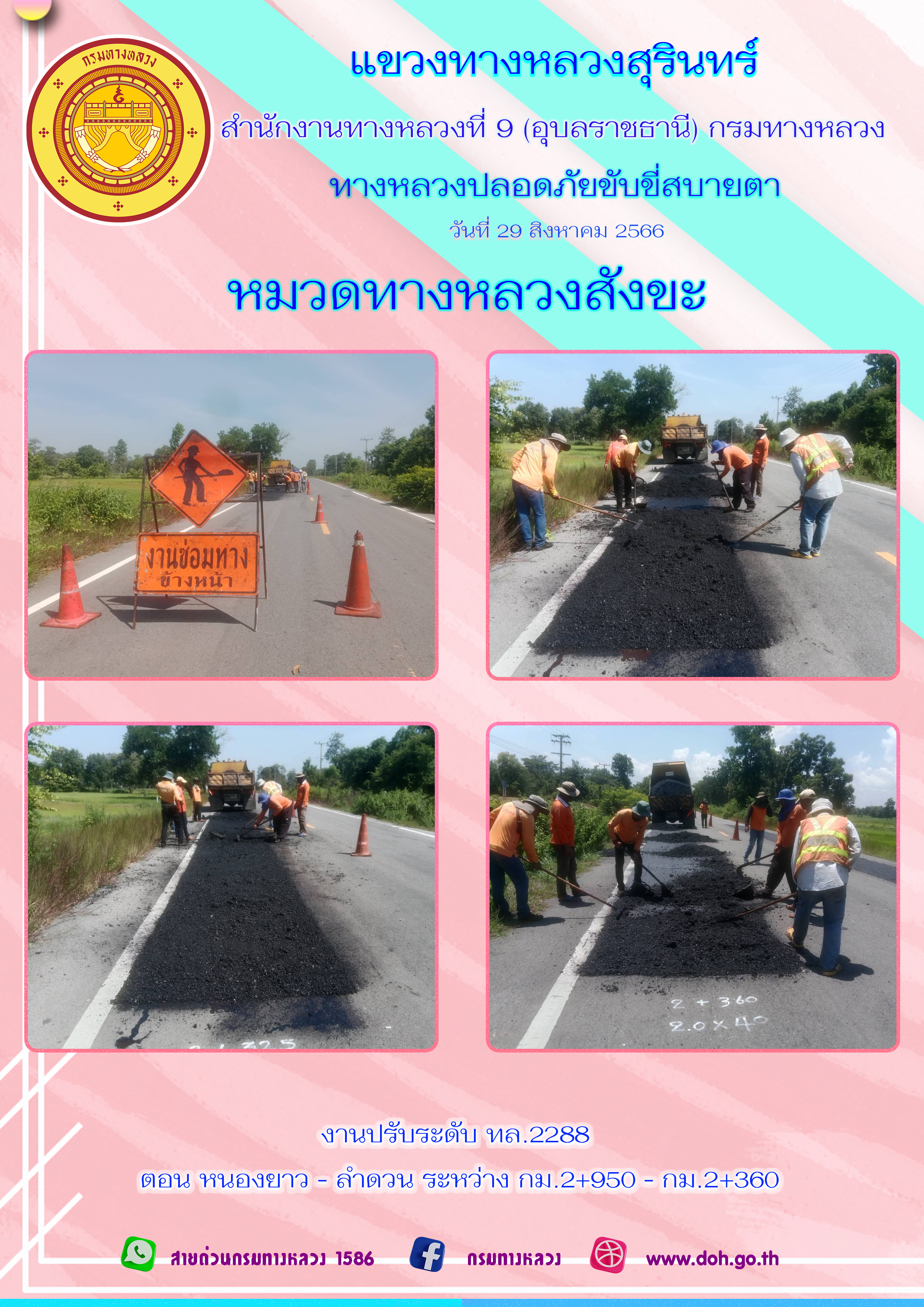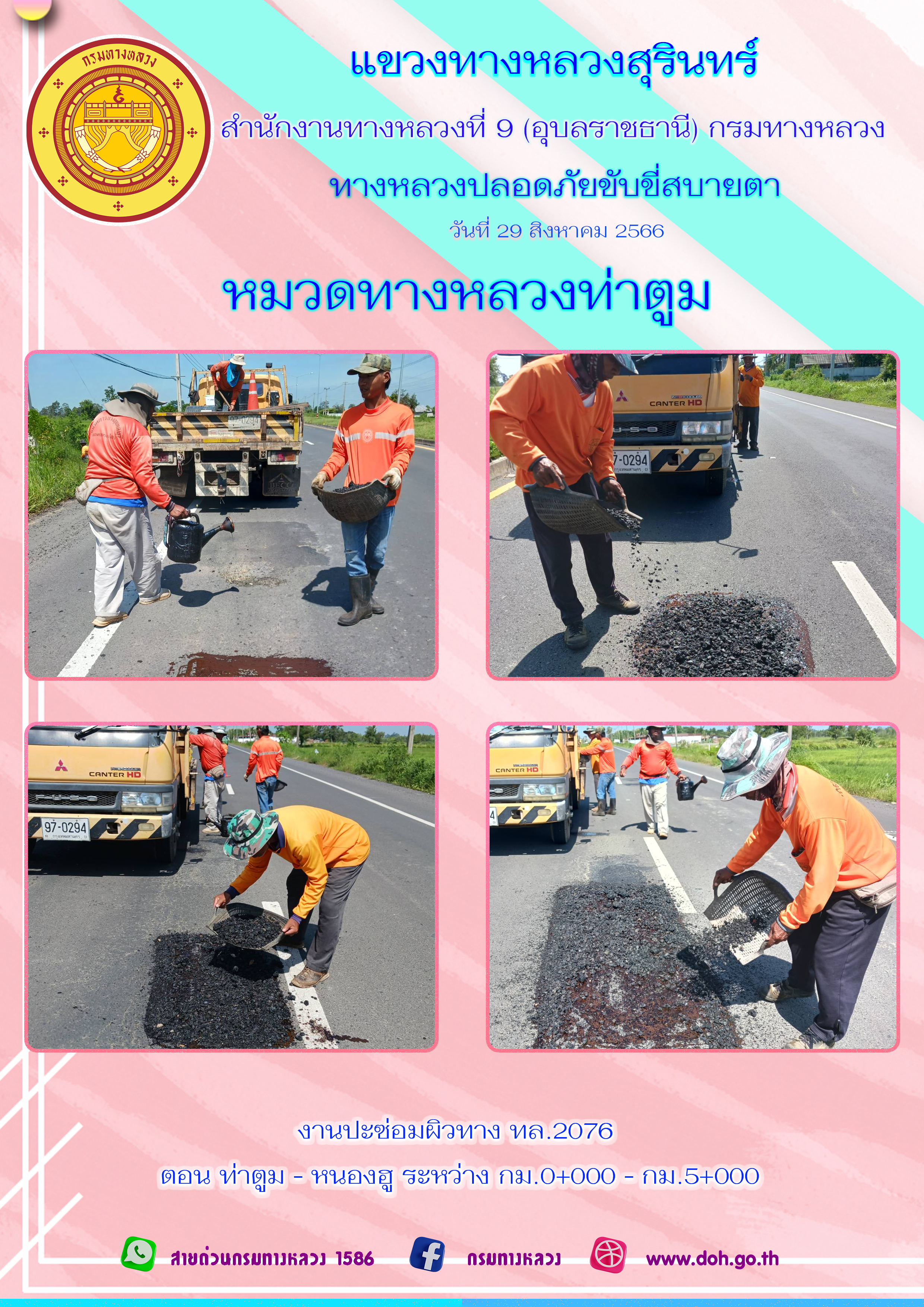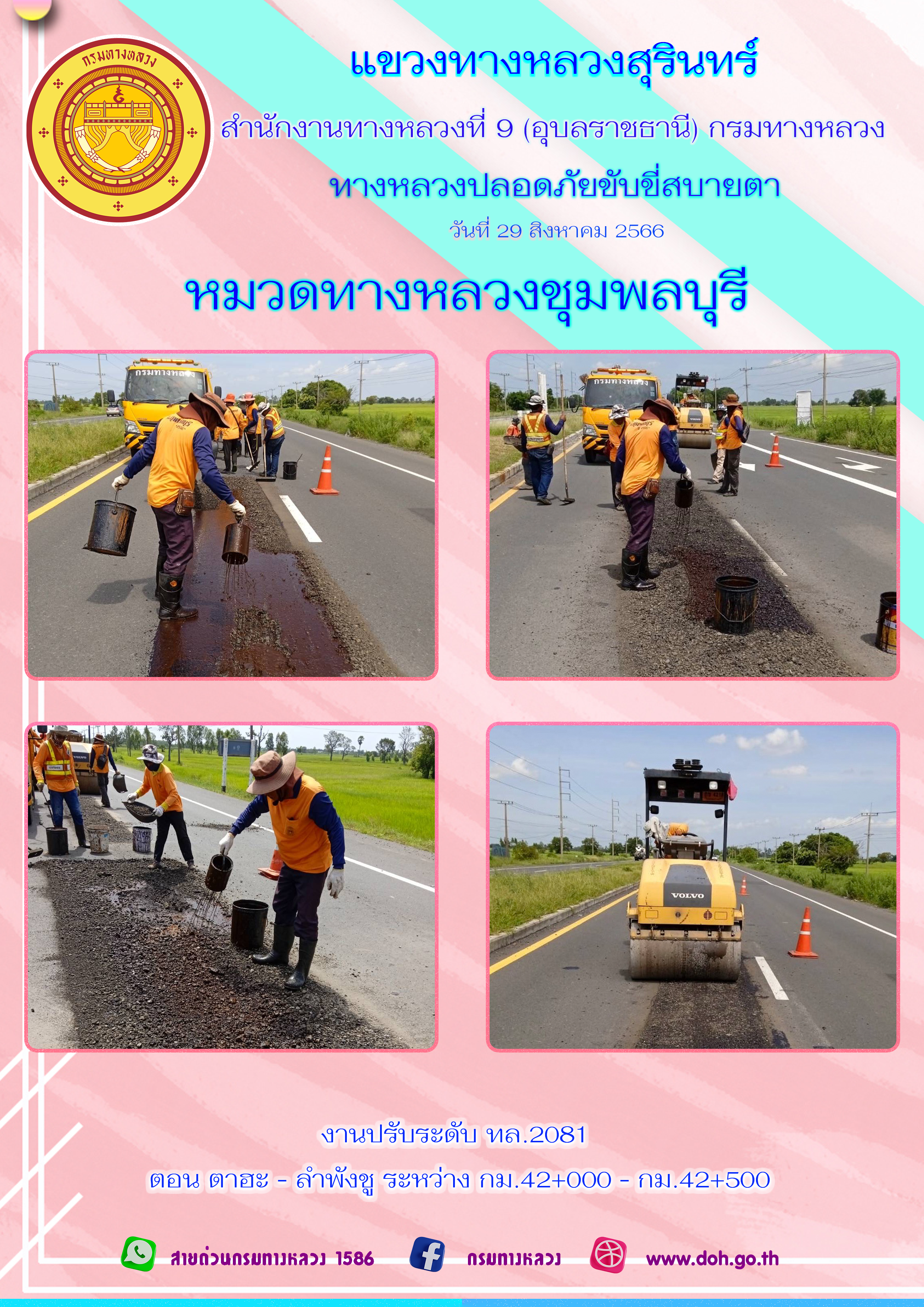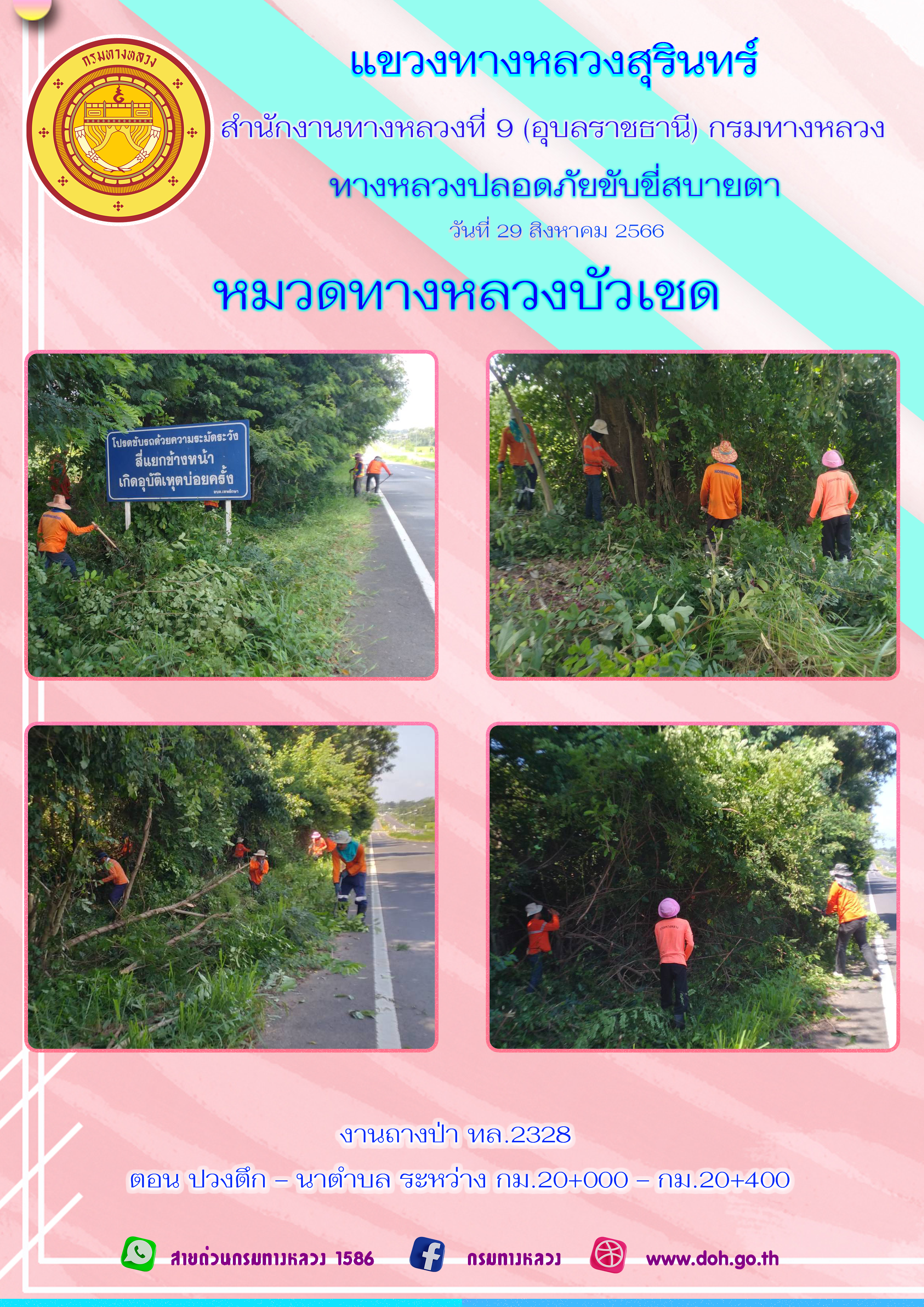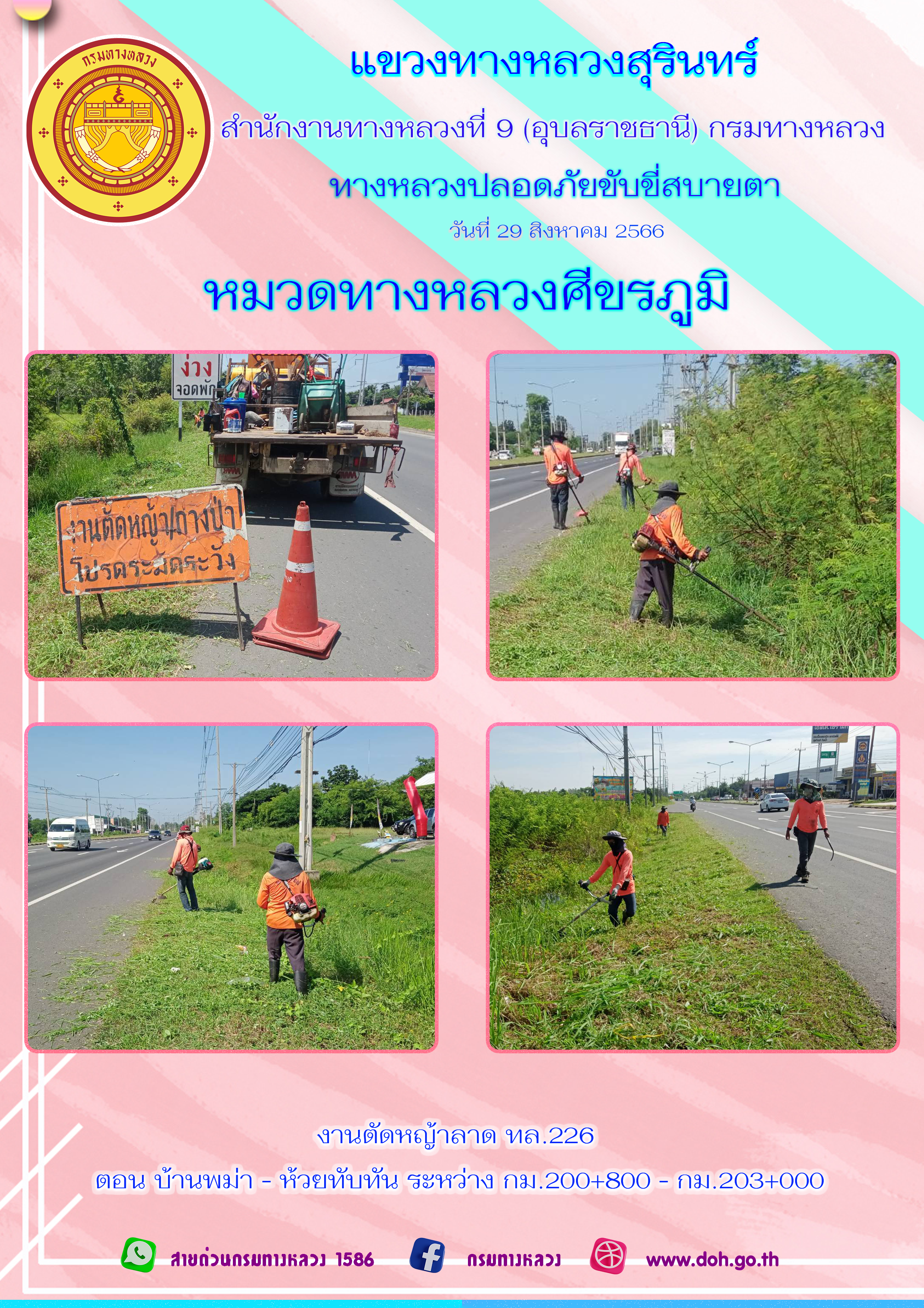 ข้อมูลภาพกิจกรรม : ทางหลวงปลอยภัย ขับขี่สบายตา 29 สิงหาคม 2566