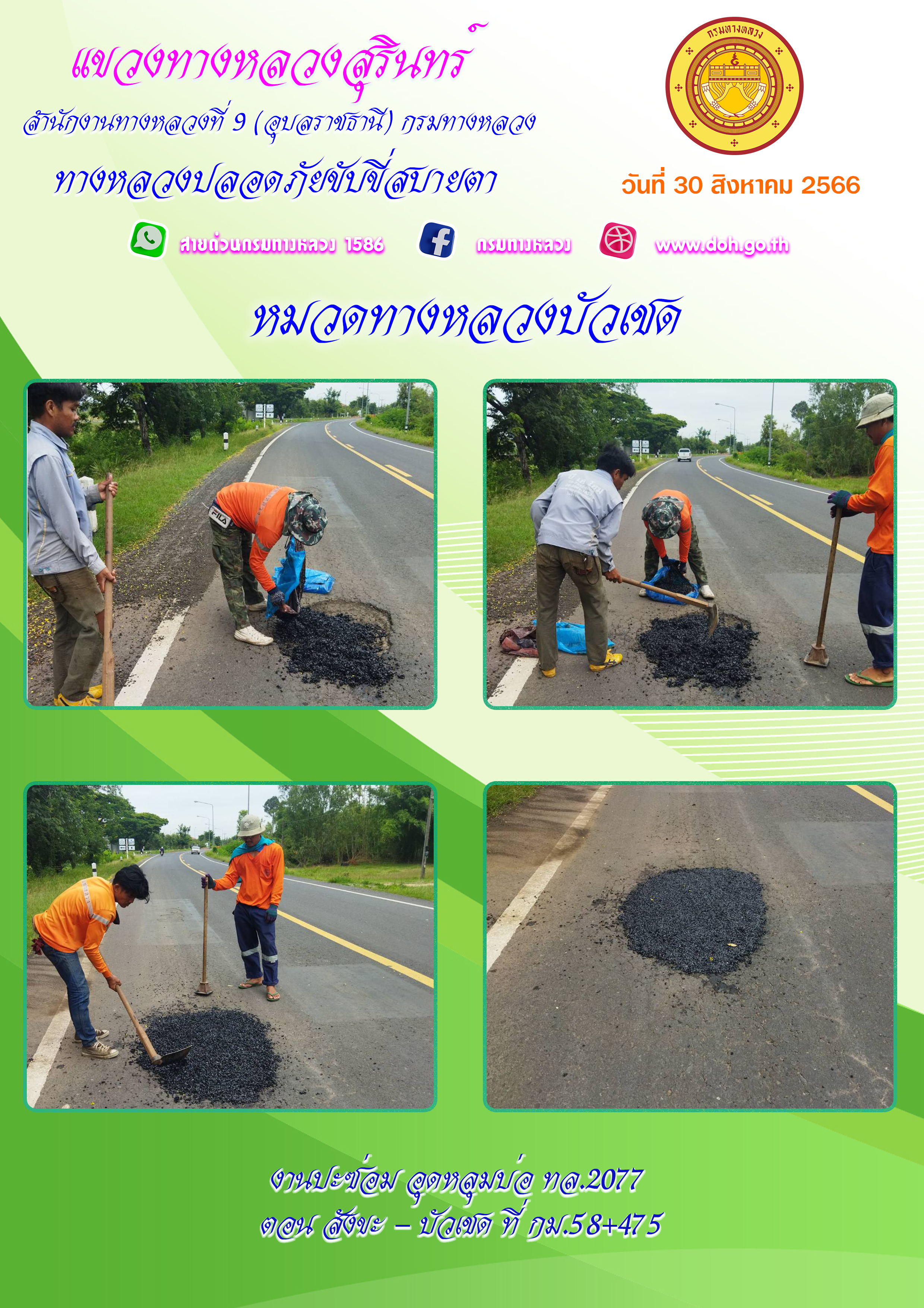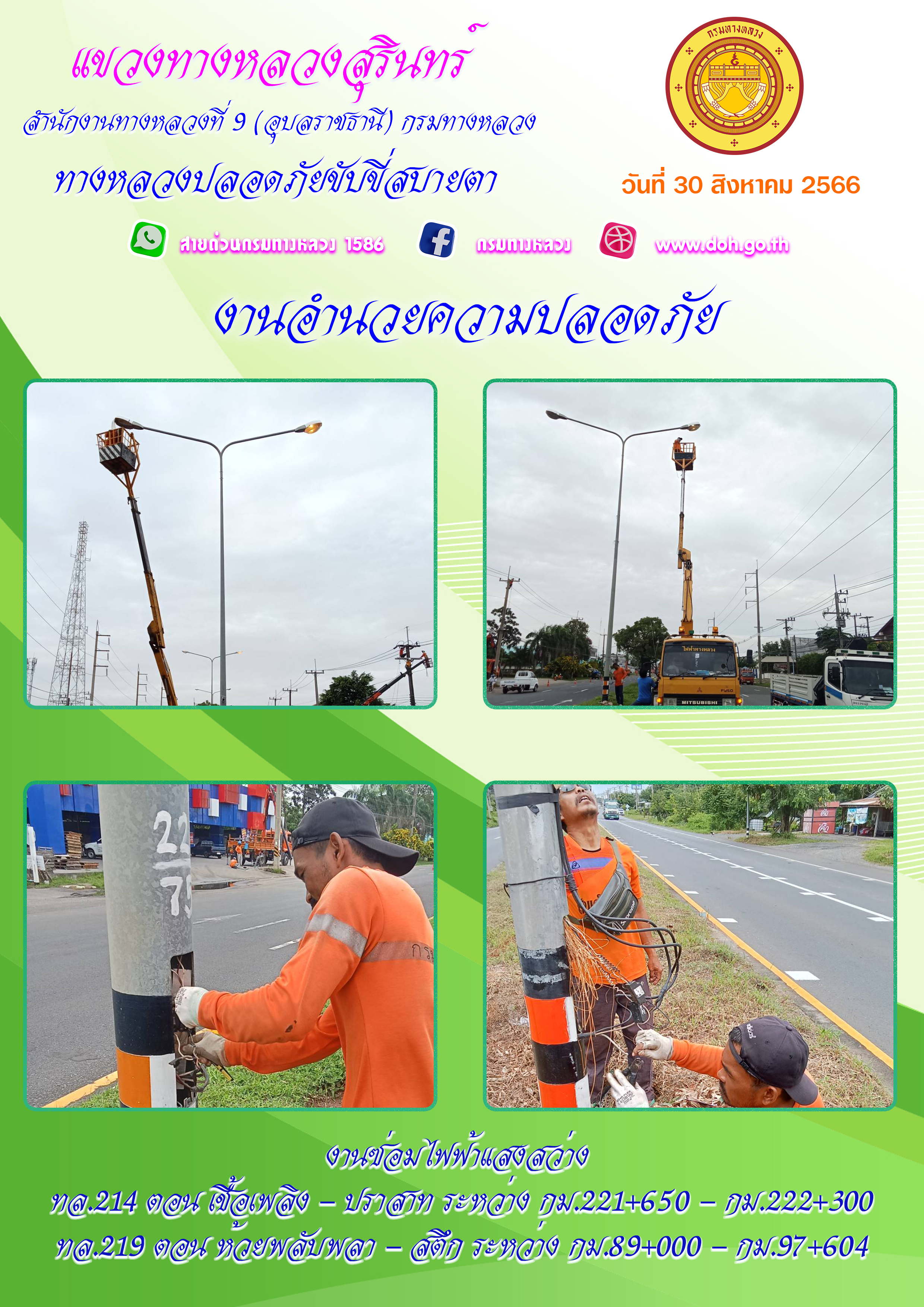ข้อมูลภาพกิจกรรม : ทางหลวงปลอยภัย ขับขี่สบายตา 30 สิงหาคม 2566