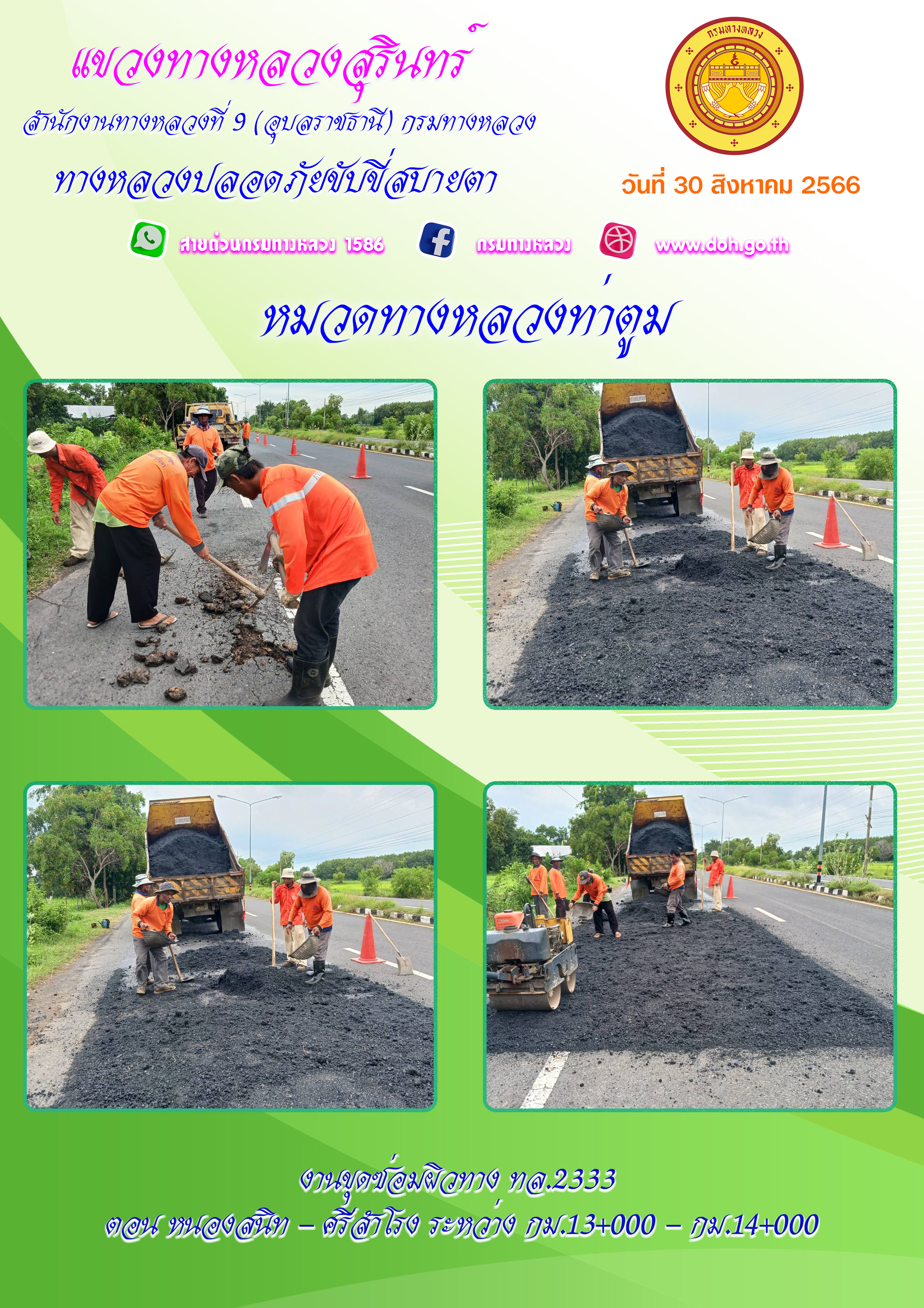 ทางหลวงปลอยภัย ขับขี่สบายตา 30 สิงหาคม 2566