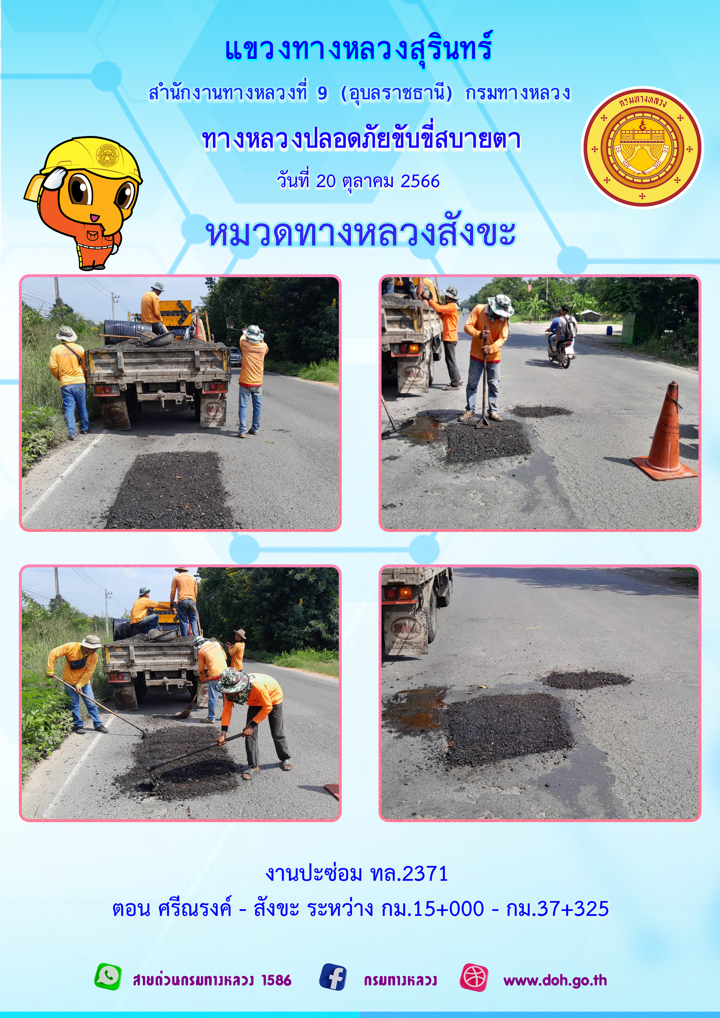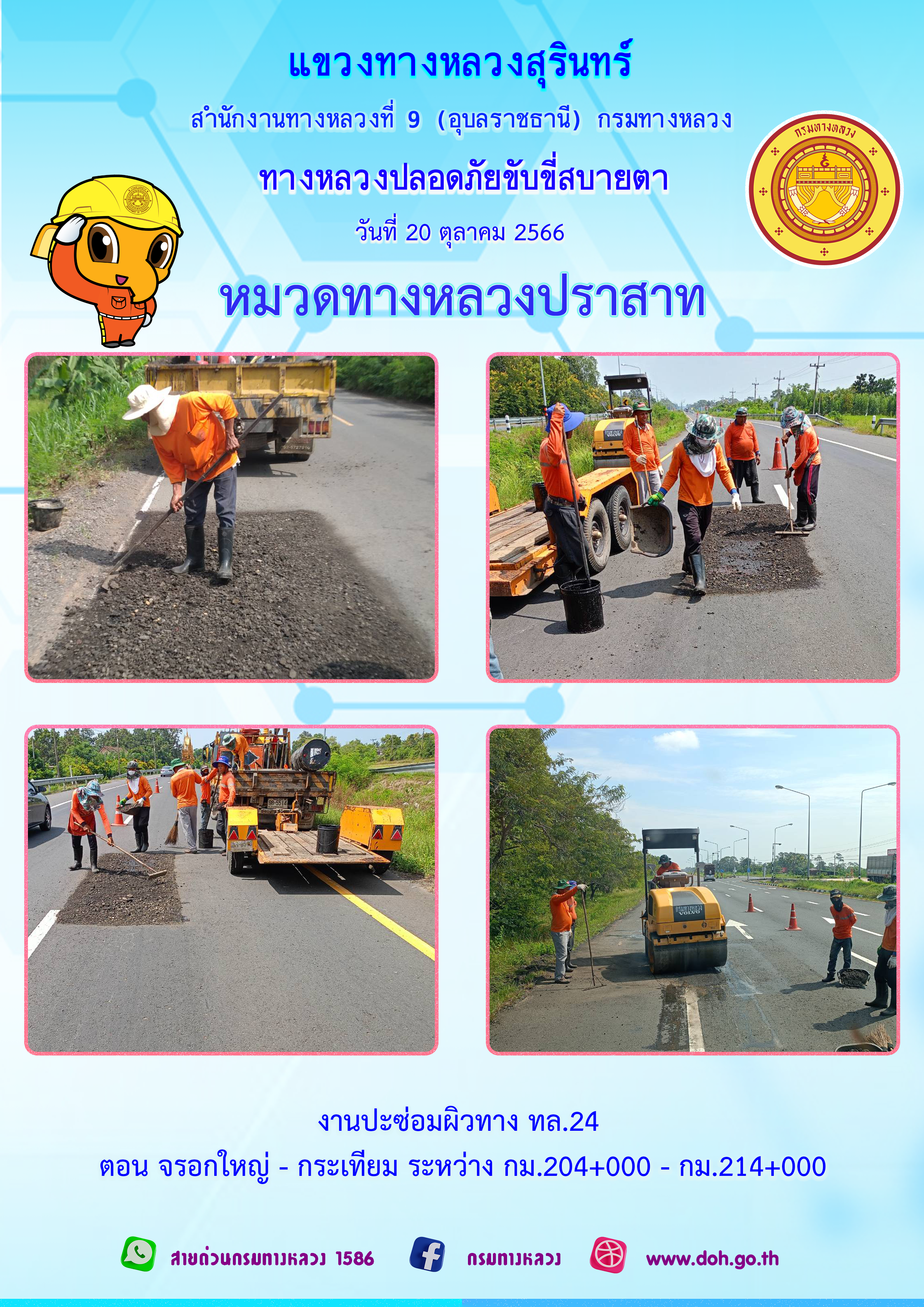 ข้อมูลภาพกิจกรรม : ทางหลวงปลอยภัย ขับขี่สบายตา 20 ตุลาคม 2566