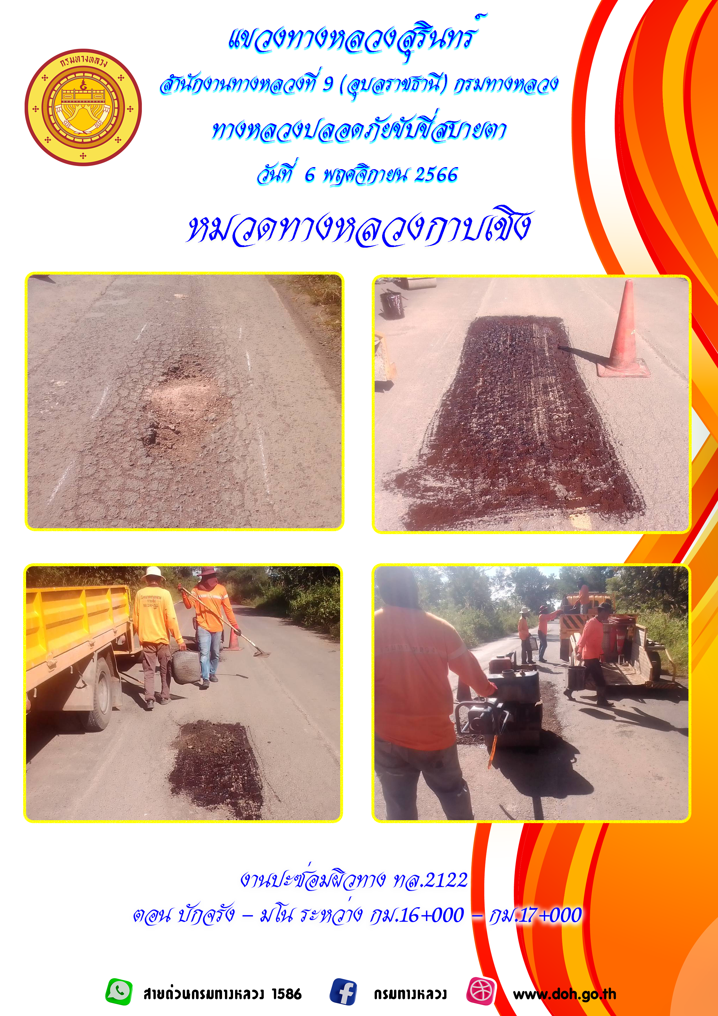 ทางหลวงปลอยภัย ขับขี่สบายตา 6 พฤศจิกายน 2566