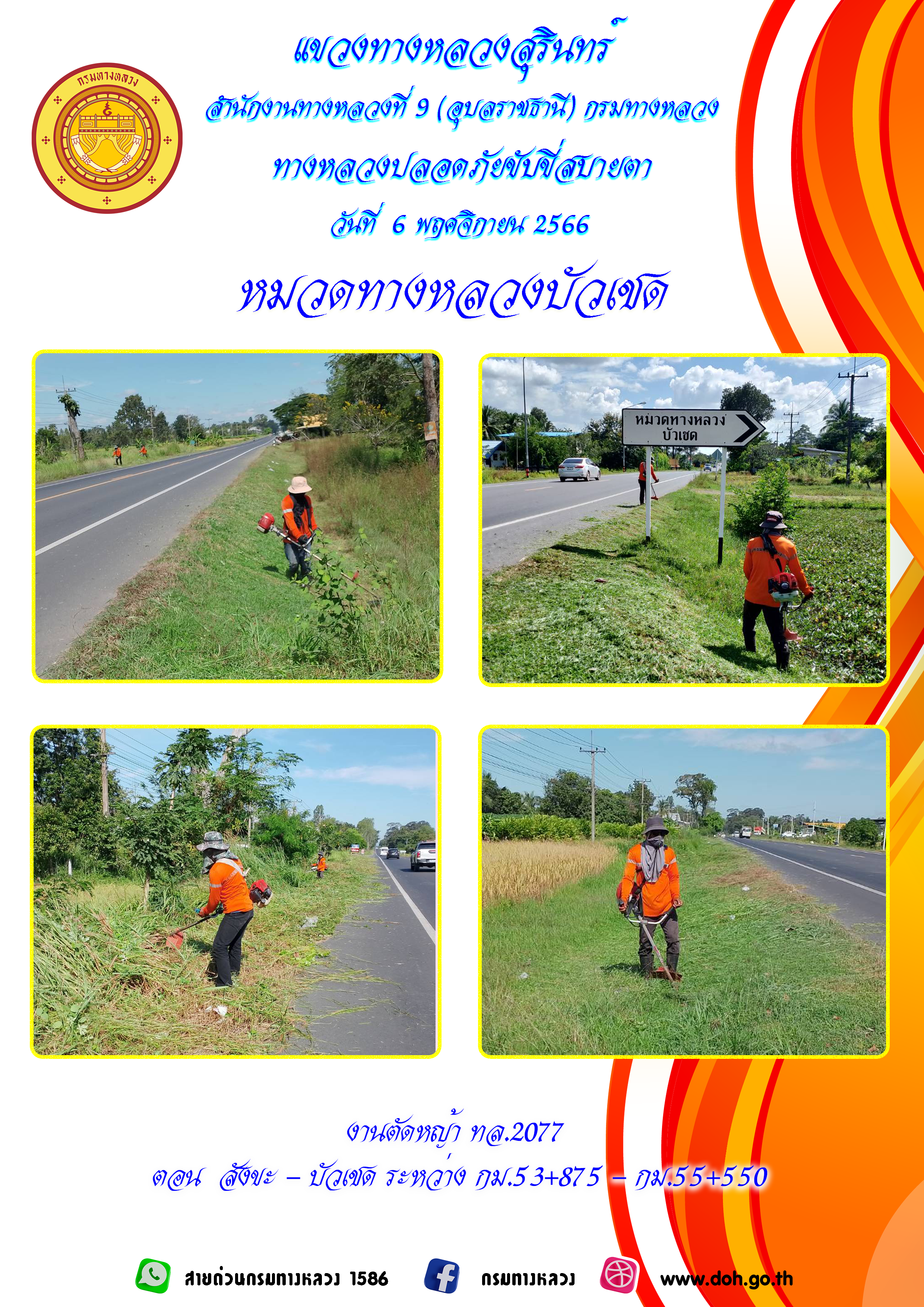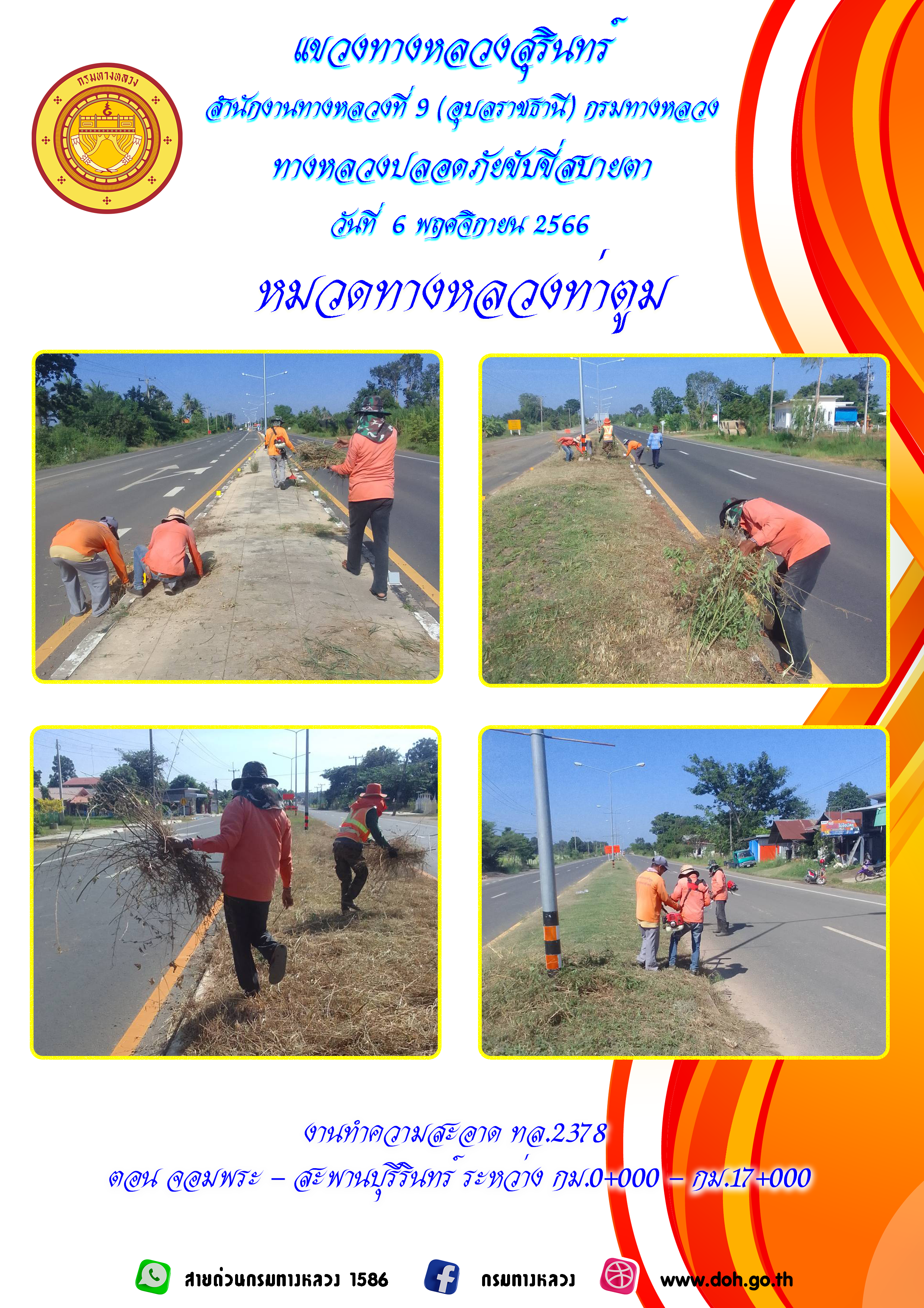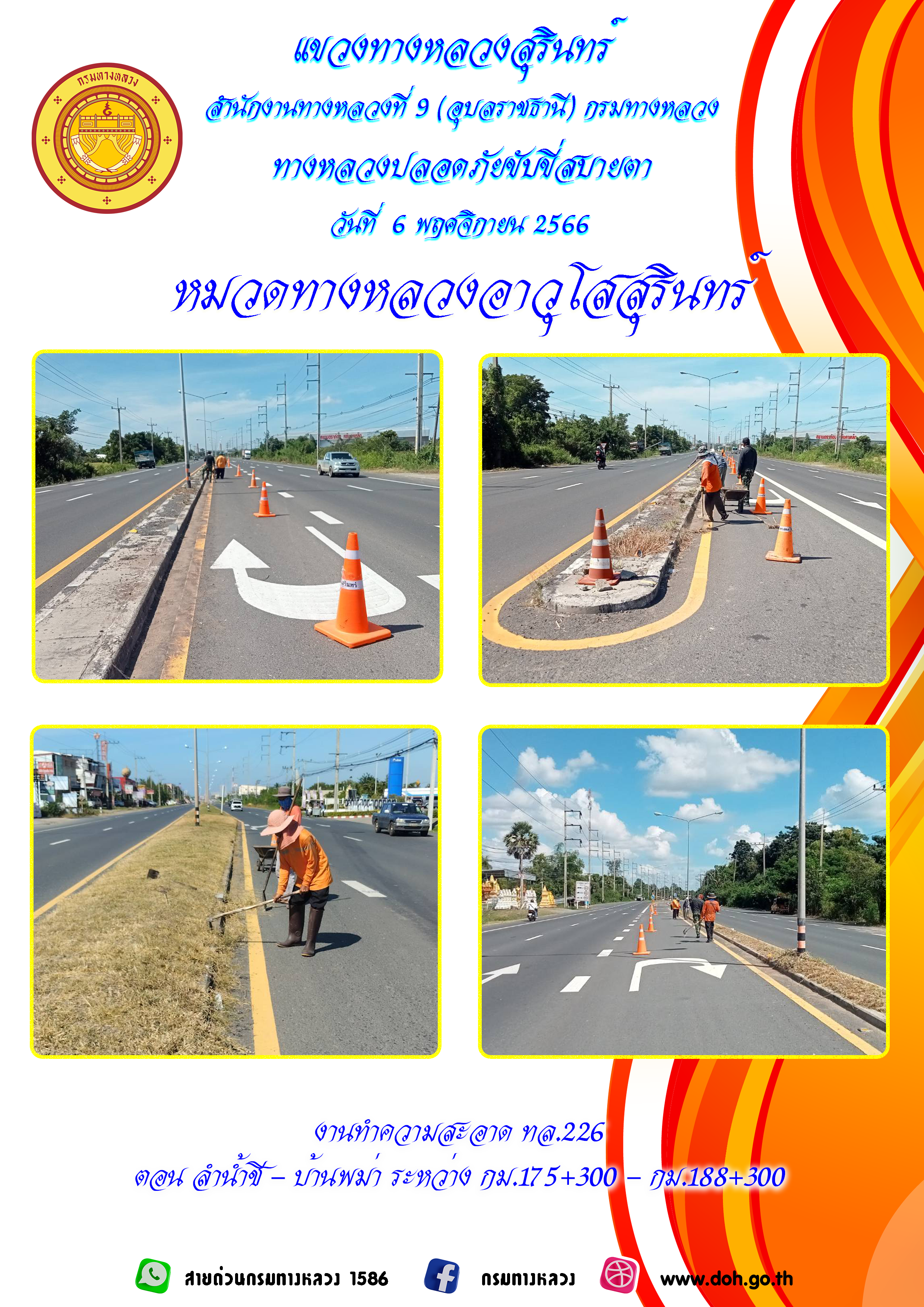 ข้อมูลภาพกิจกรรม : ทางหลวงปลอยภัย ขับขี่สบายตา 6 พฤศจิกายน 2566