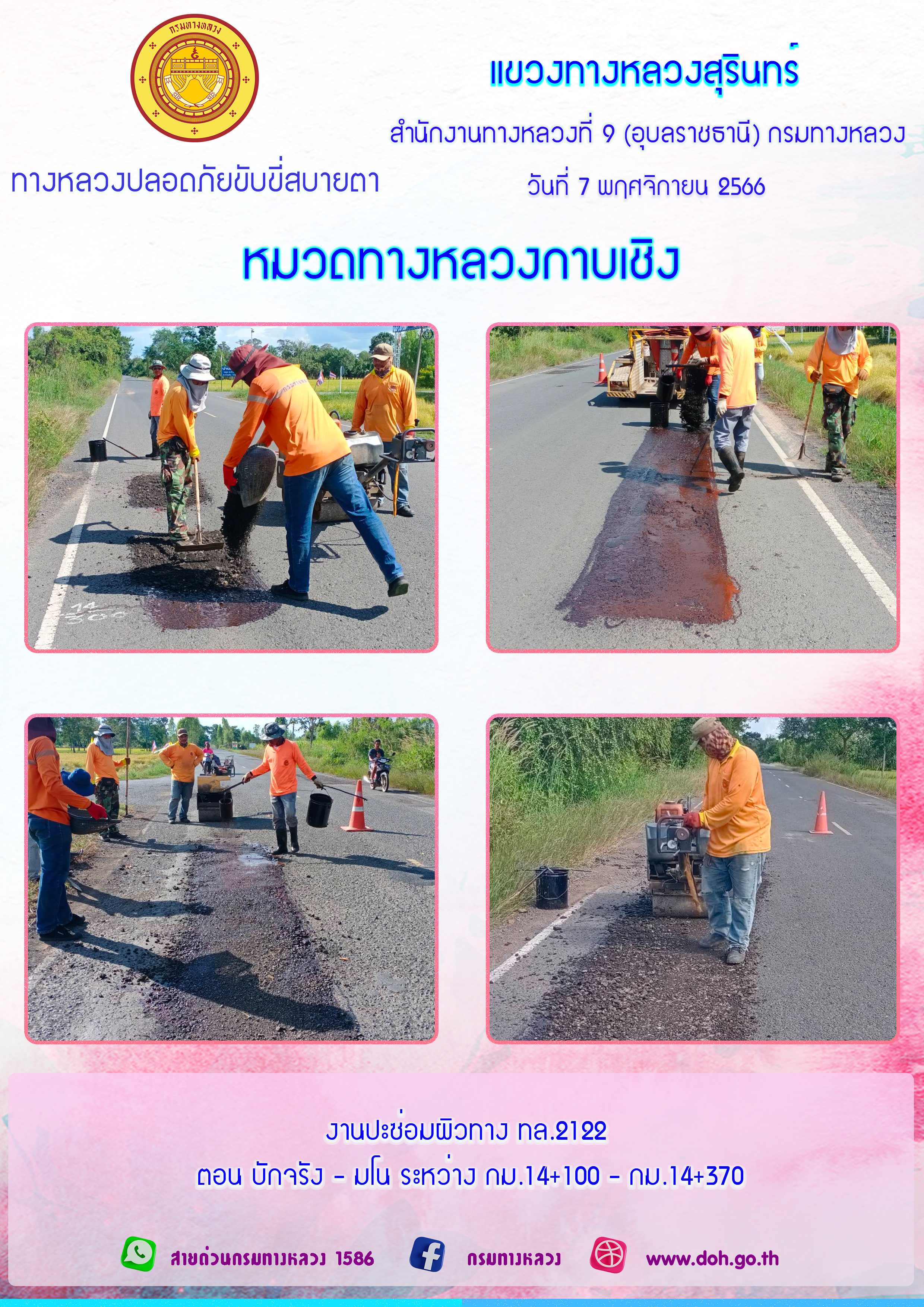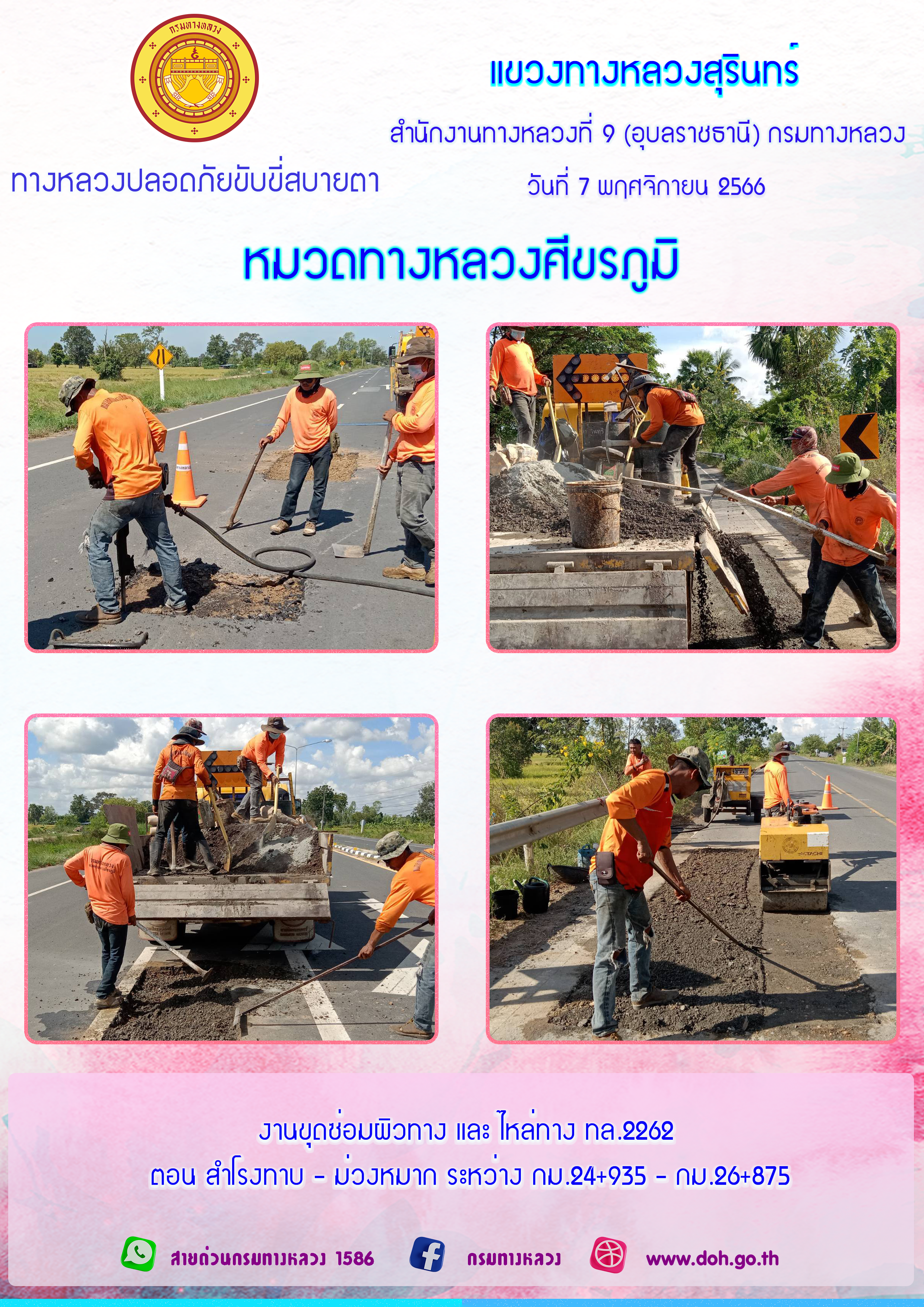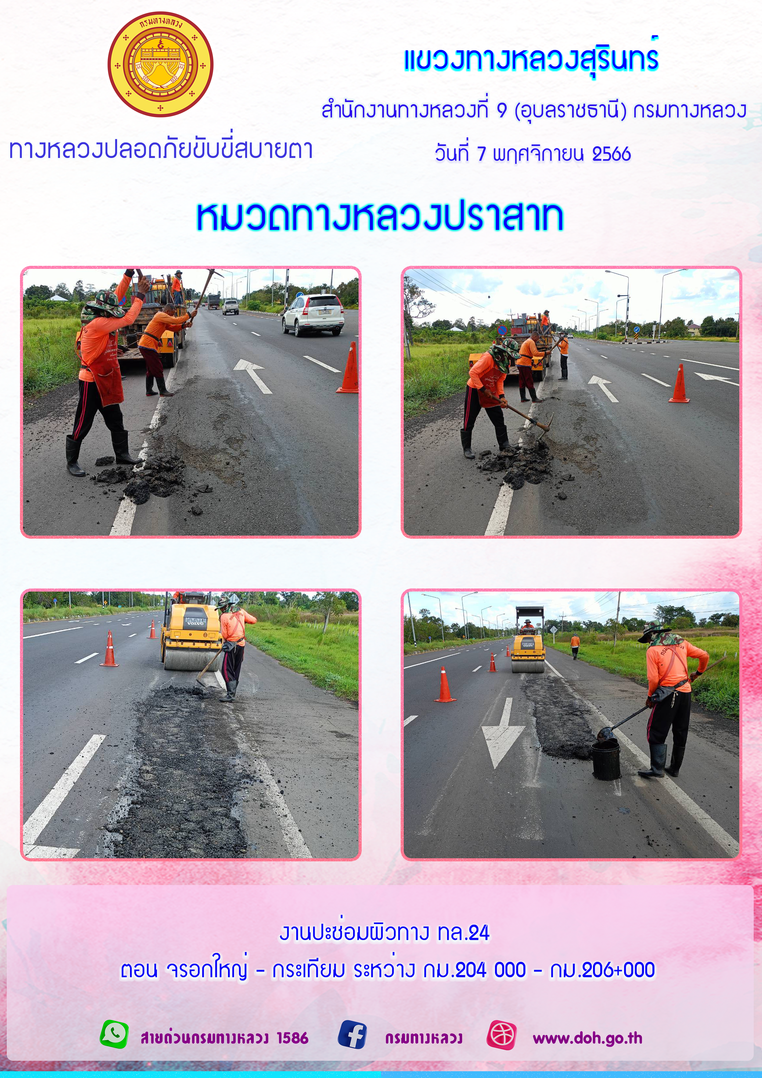 ทางหลวงปลอยภัย ขับขี่สบายตา 7 พฤศจิกายน 2566