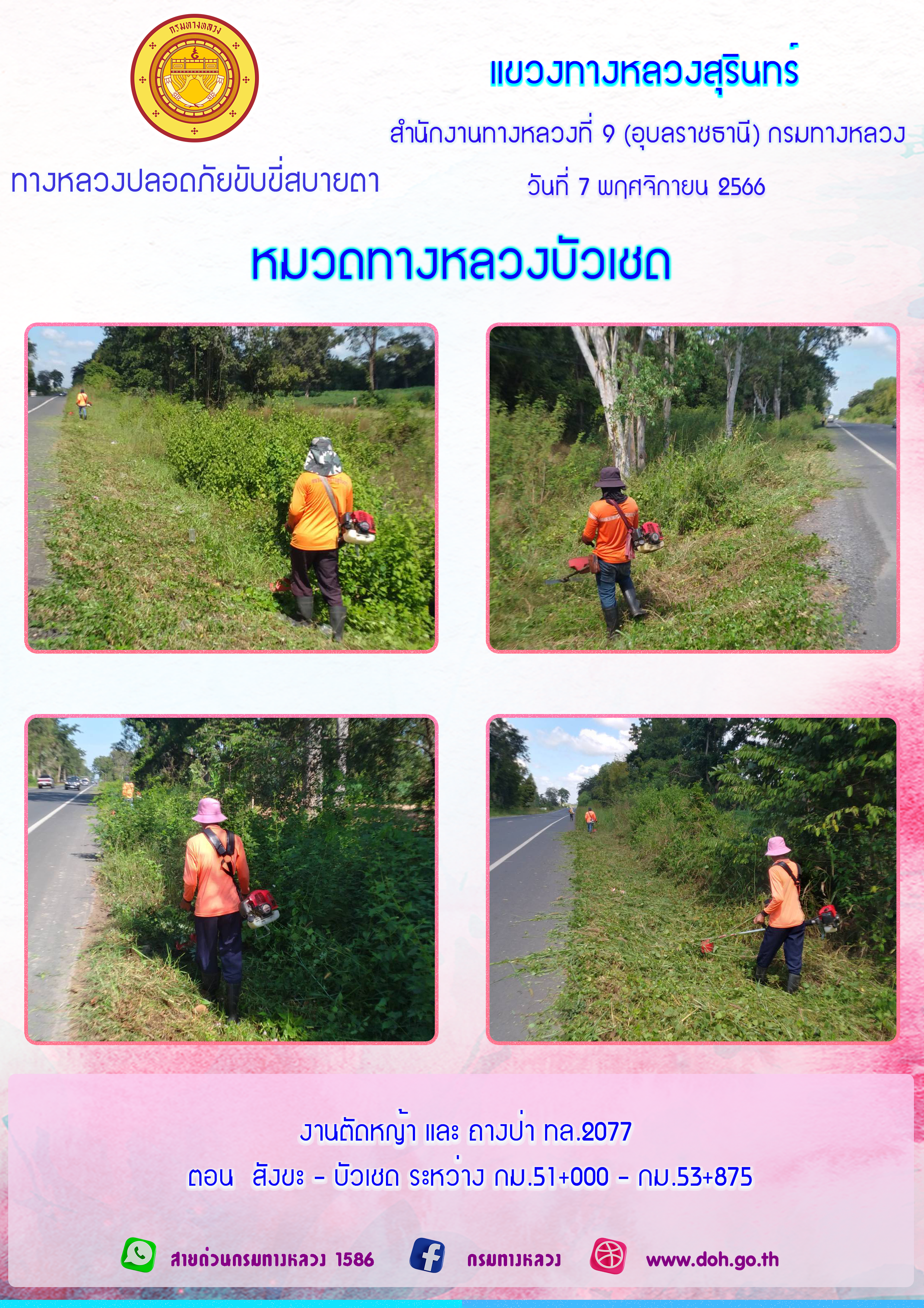 ข้อมูลภาพกิจกรรม : ทางหลวงปลอยภัย ขับขี่สบายตา 7 พฤศจิกายน 2566
