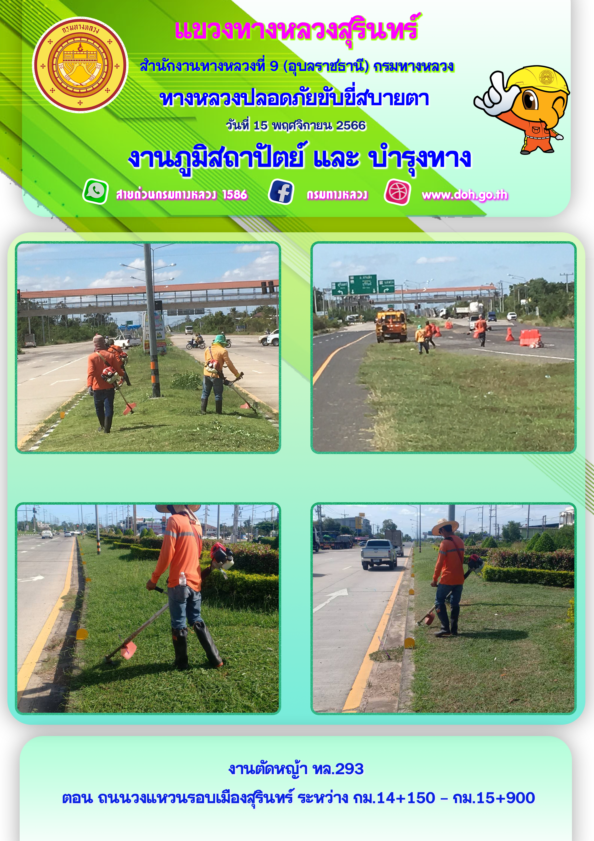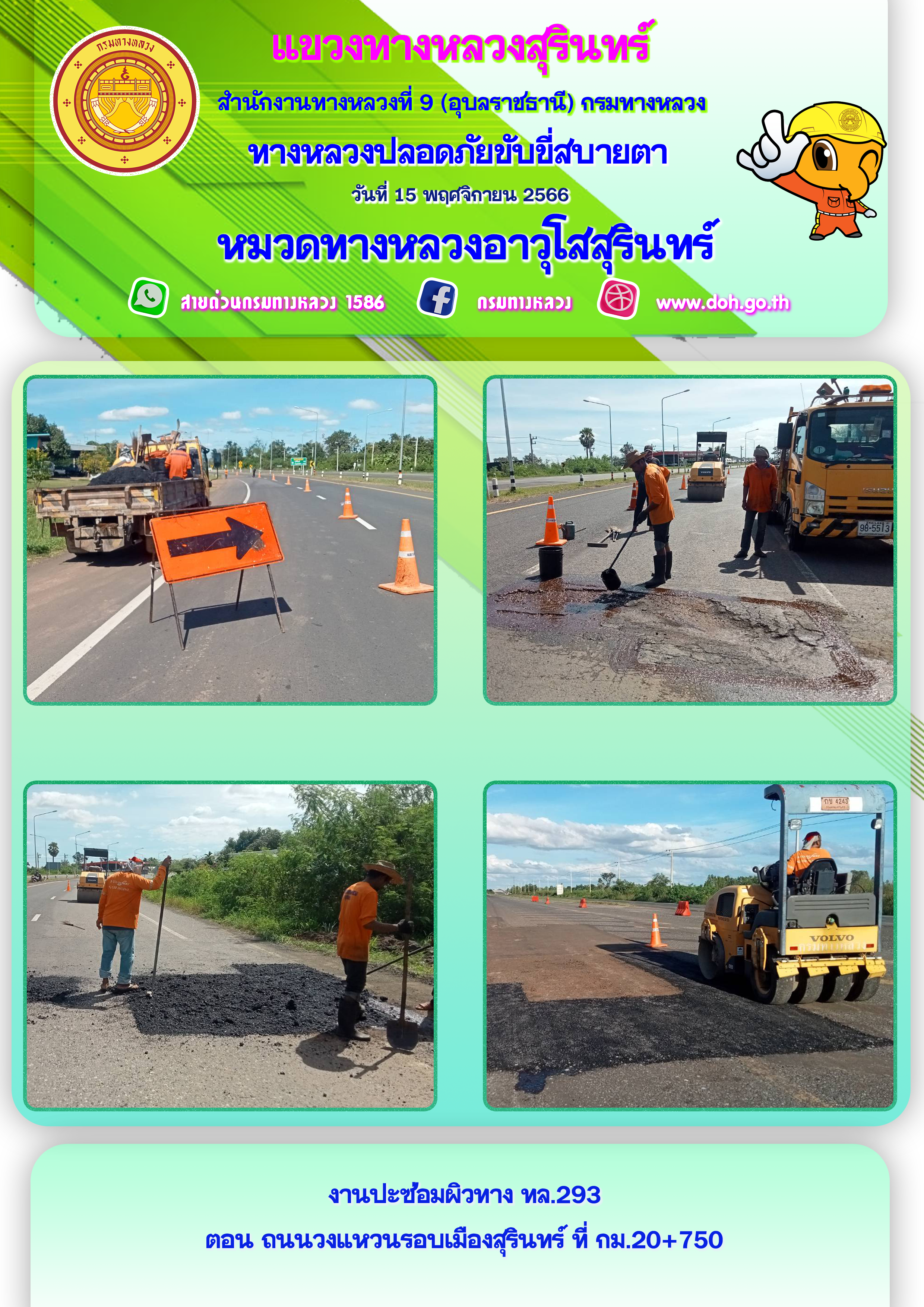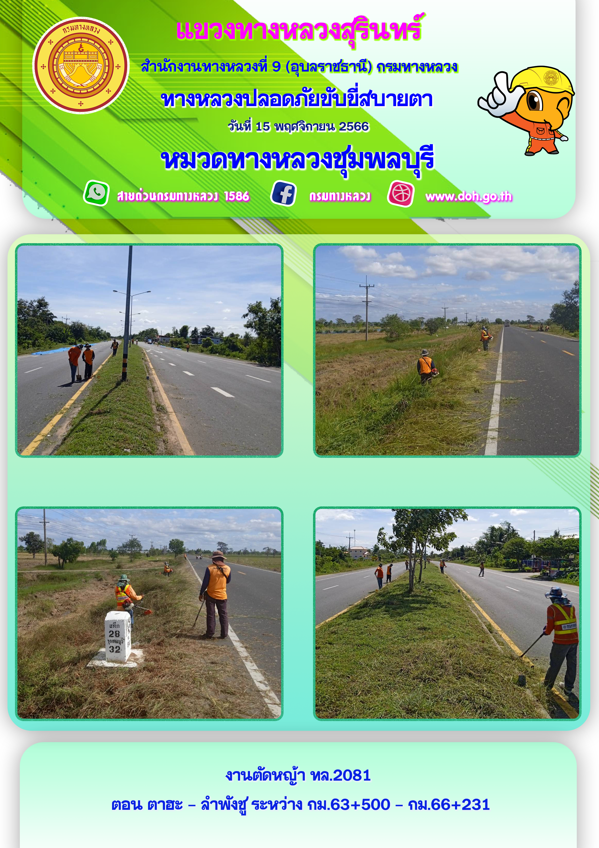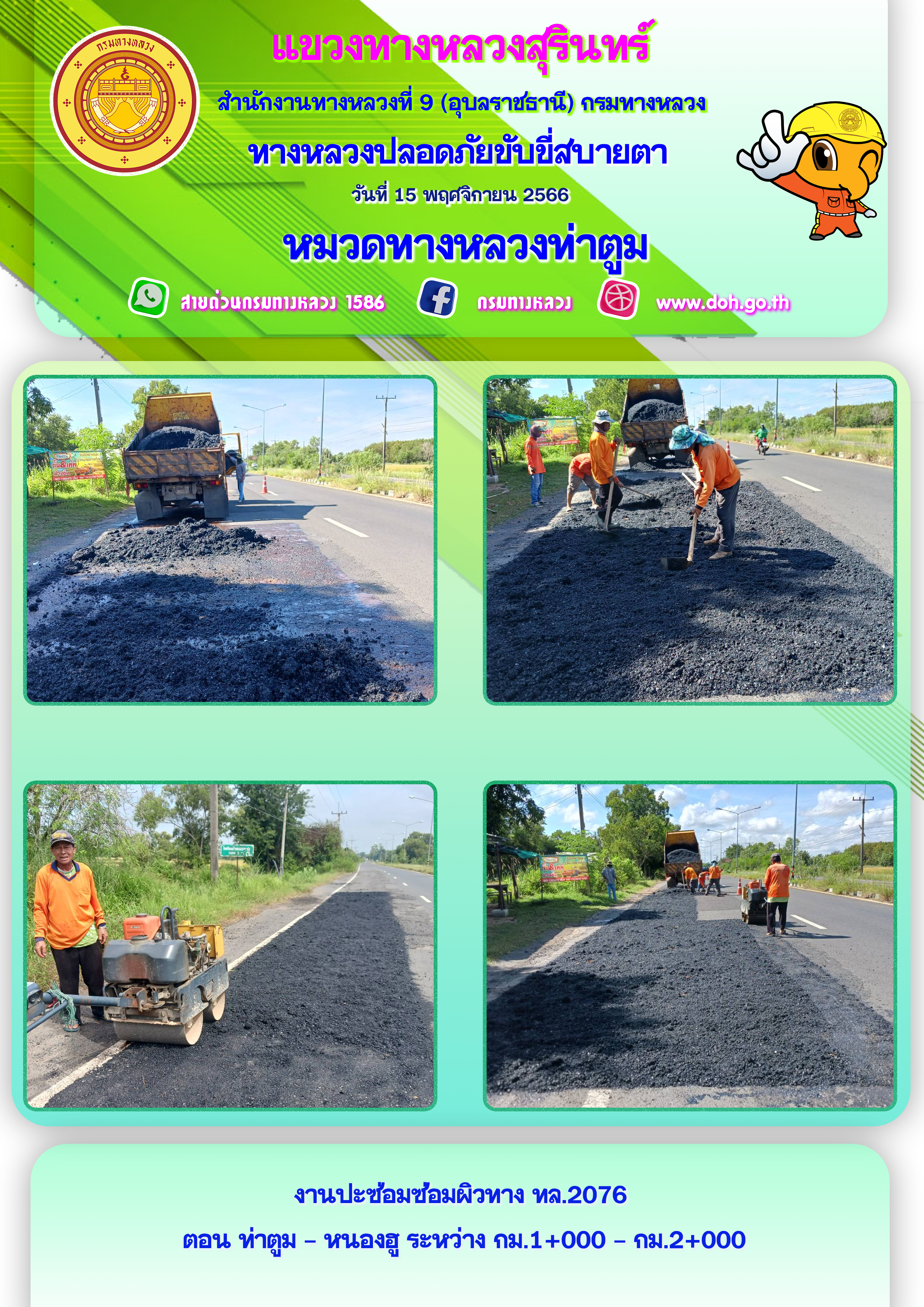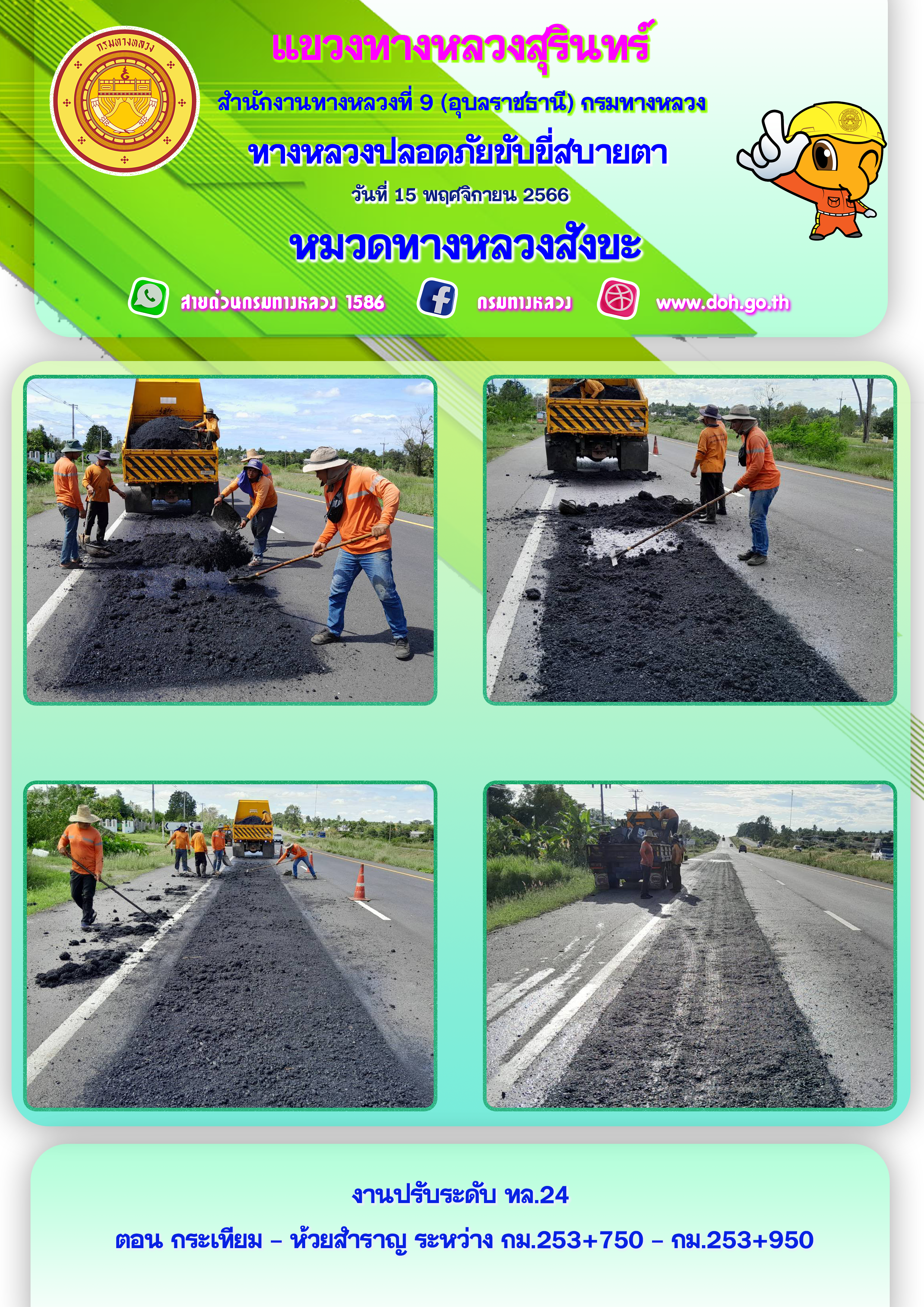ข้อมูลภาพกิจกรรม : ทางหลวงปลอยภัย ขับขี่สบายตา 15 พฤศจิกายน 2566