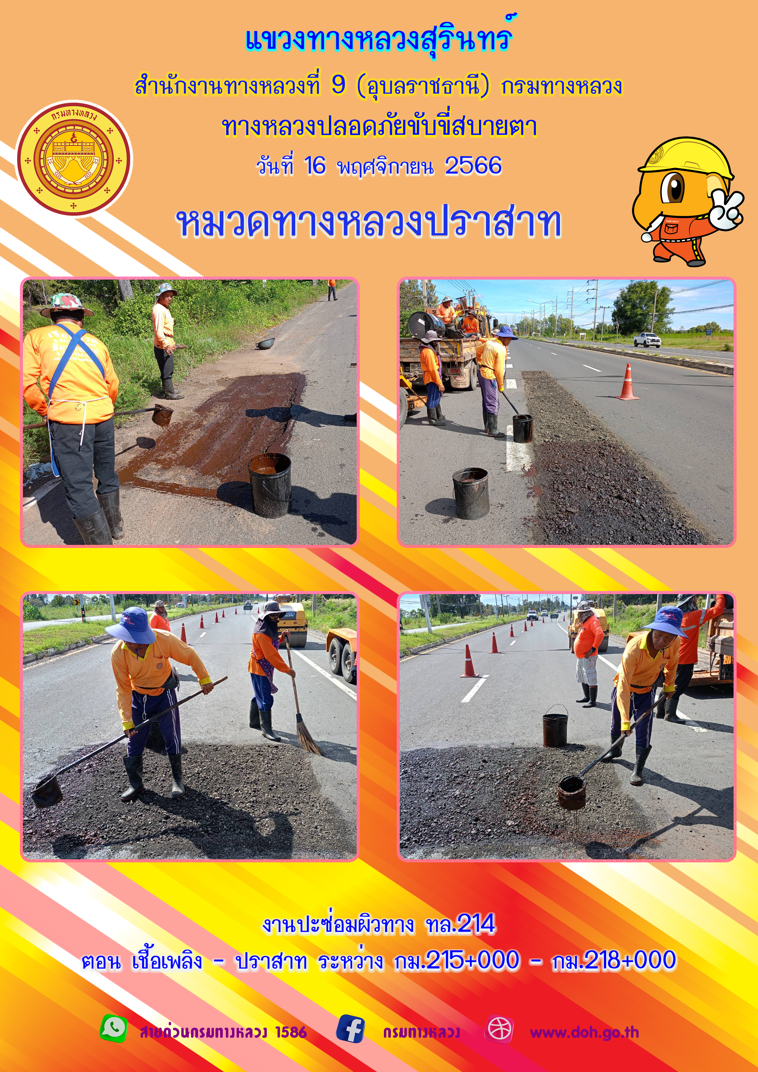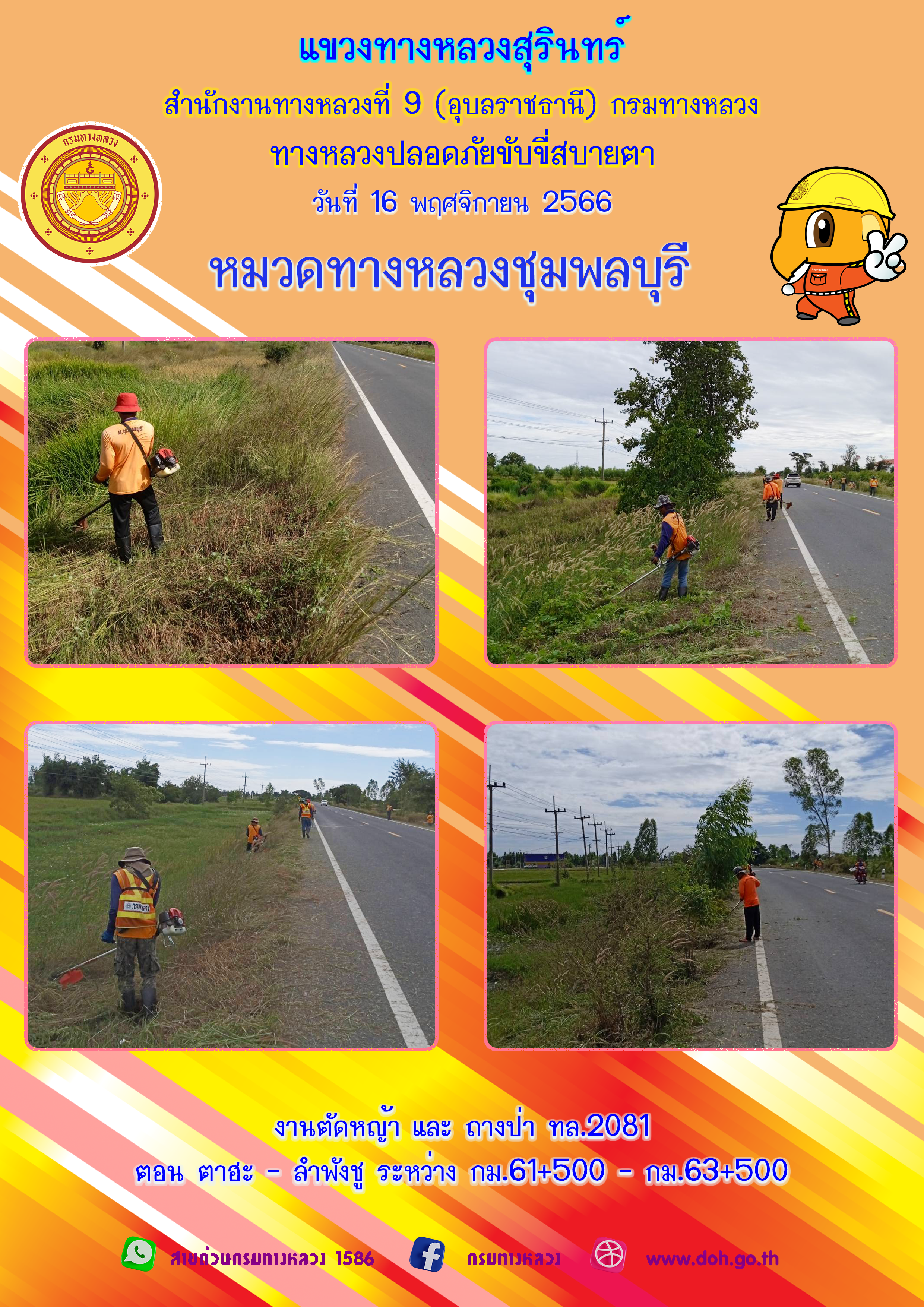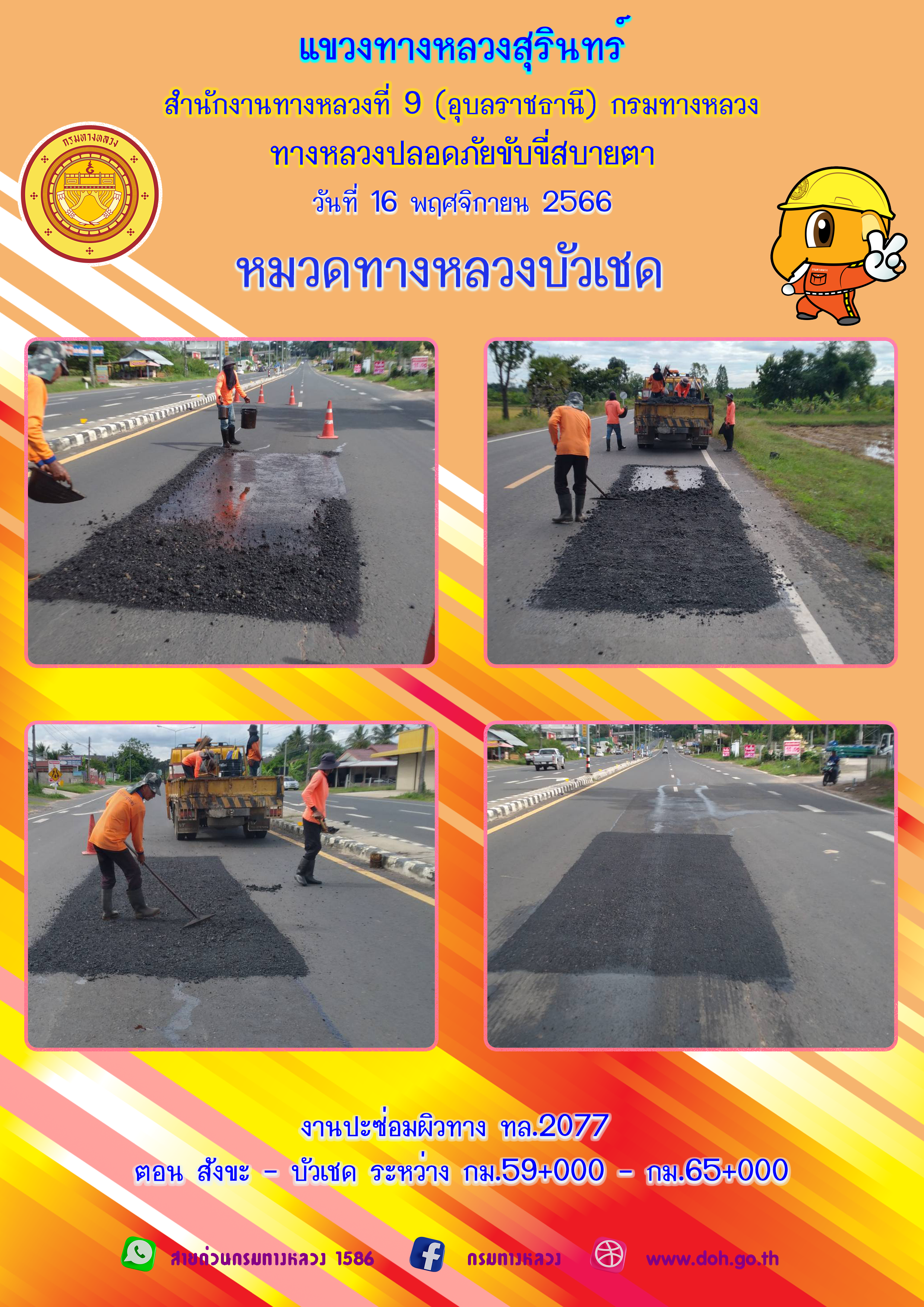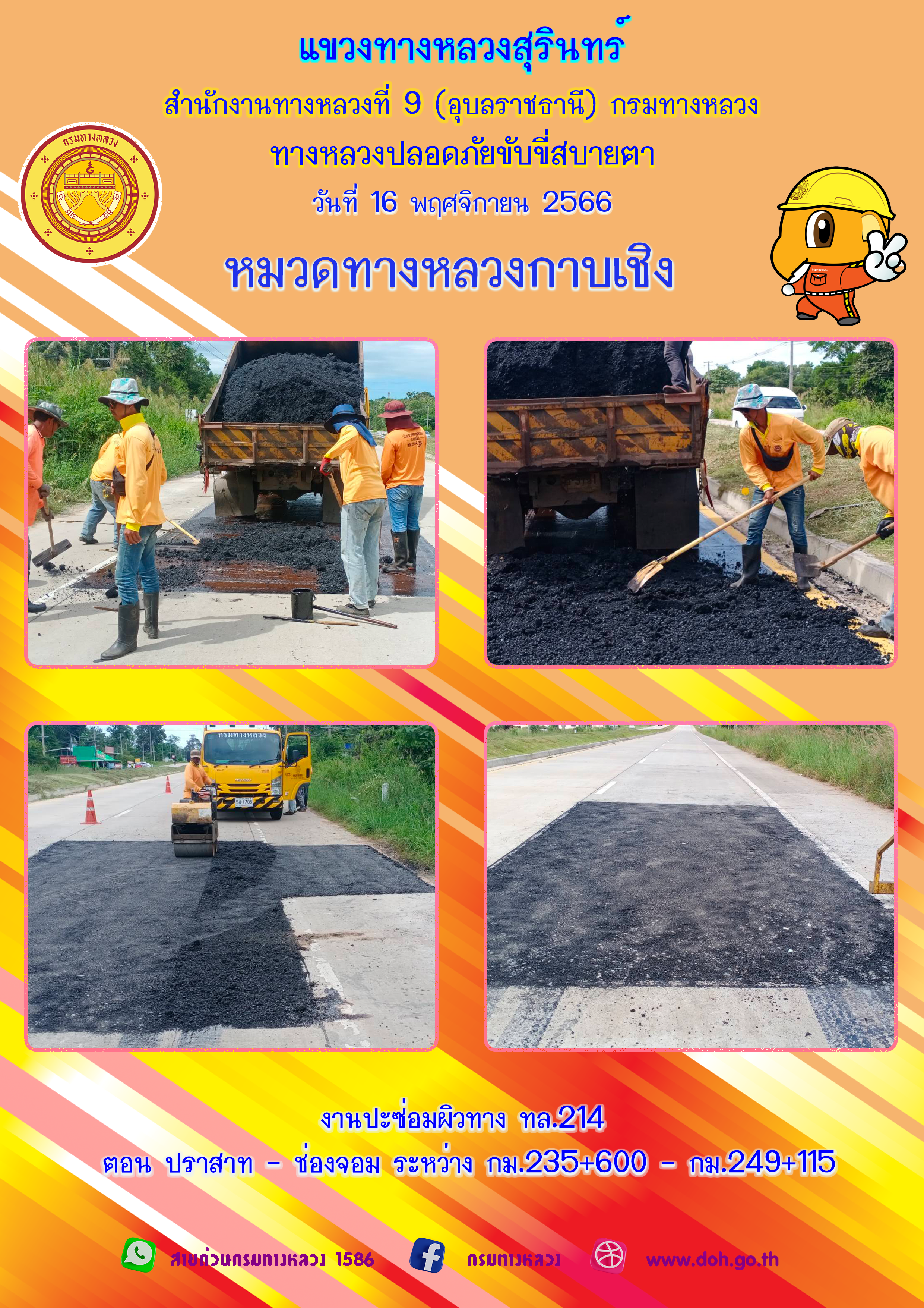 ข้อมูลภาพกิจกรรม : ทางหลวงปลอยภัย ขับขี่สบายตา 16 พฤศจิกายน 2566