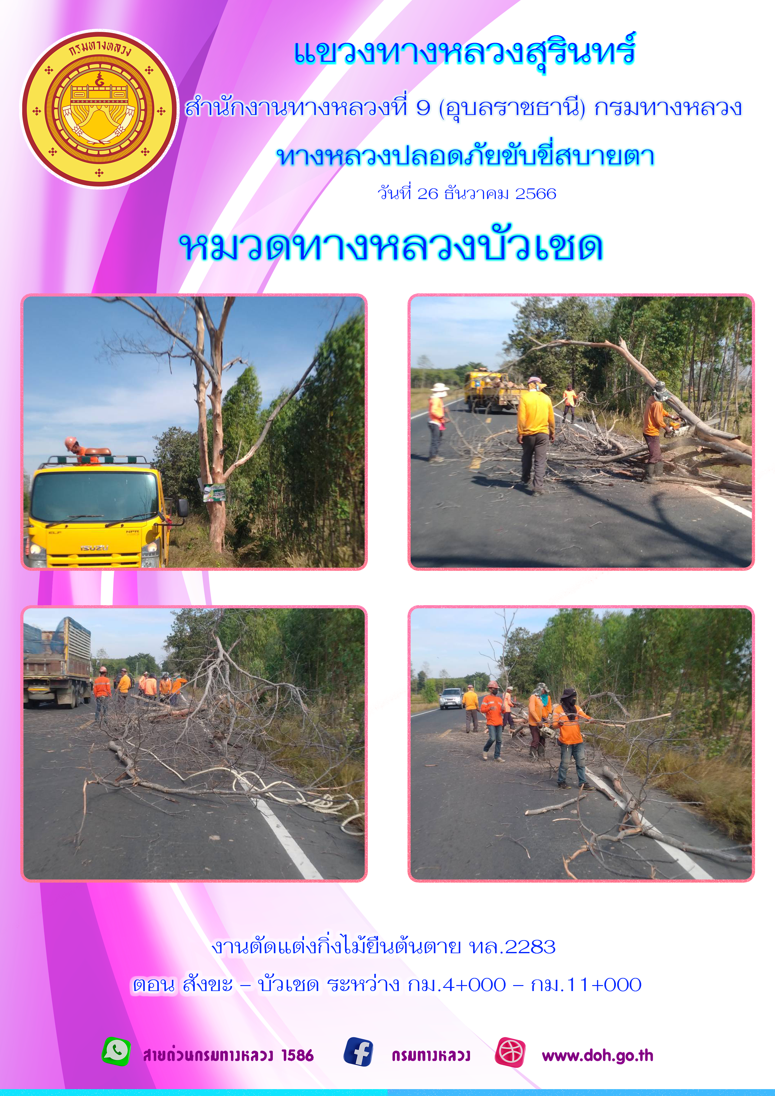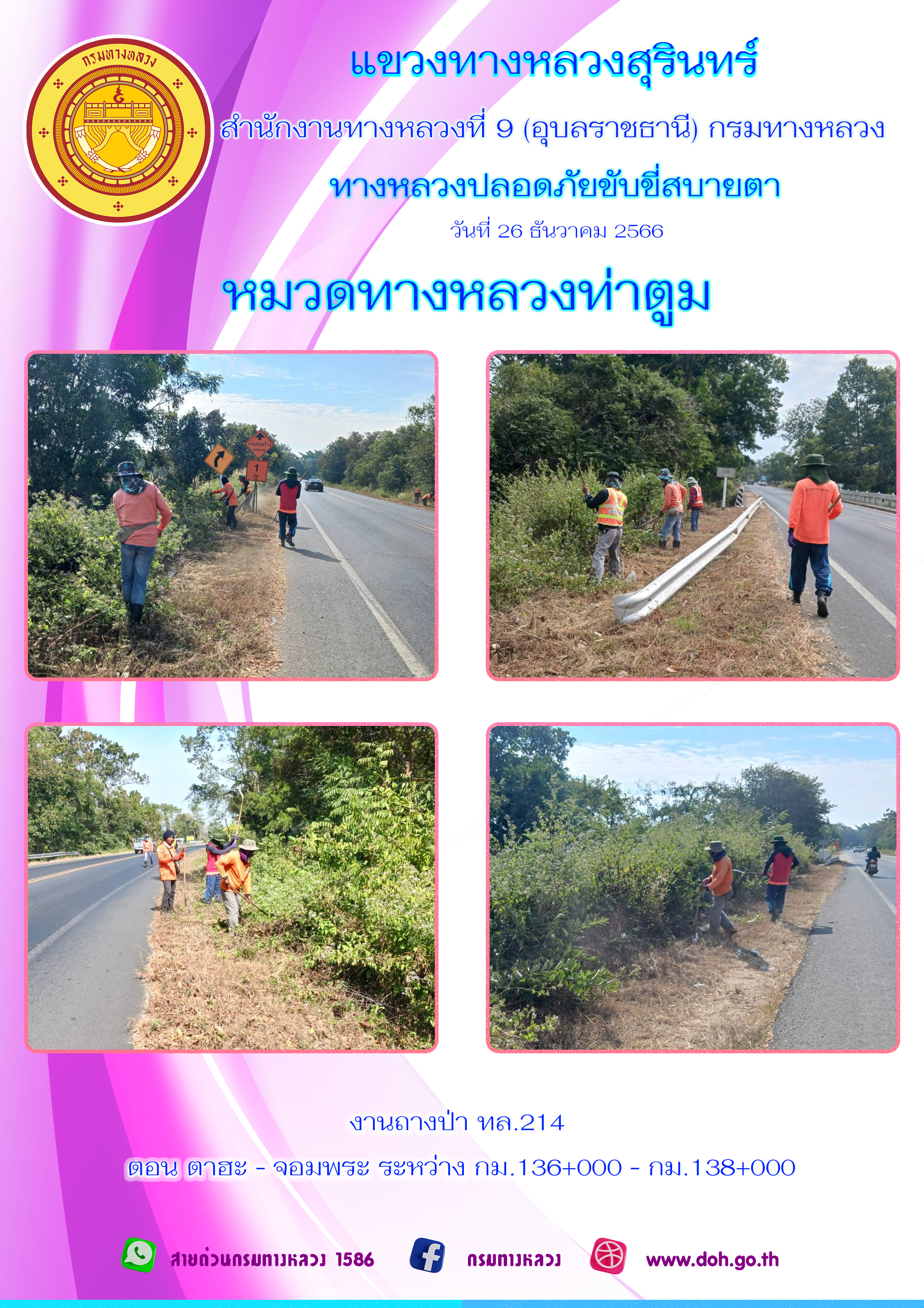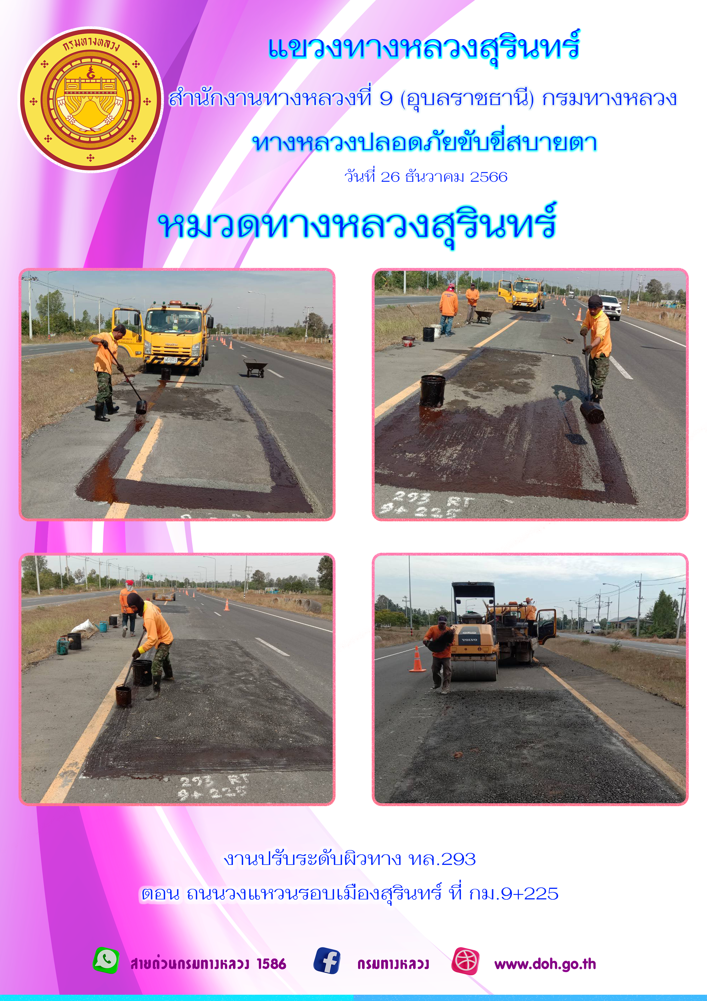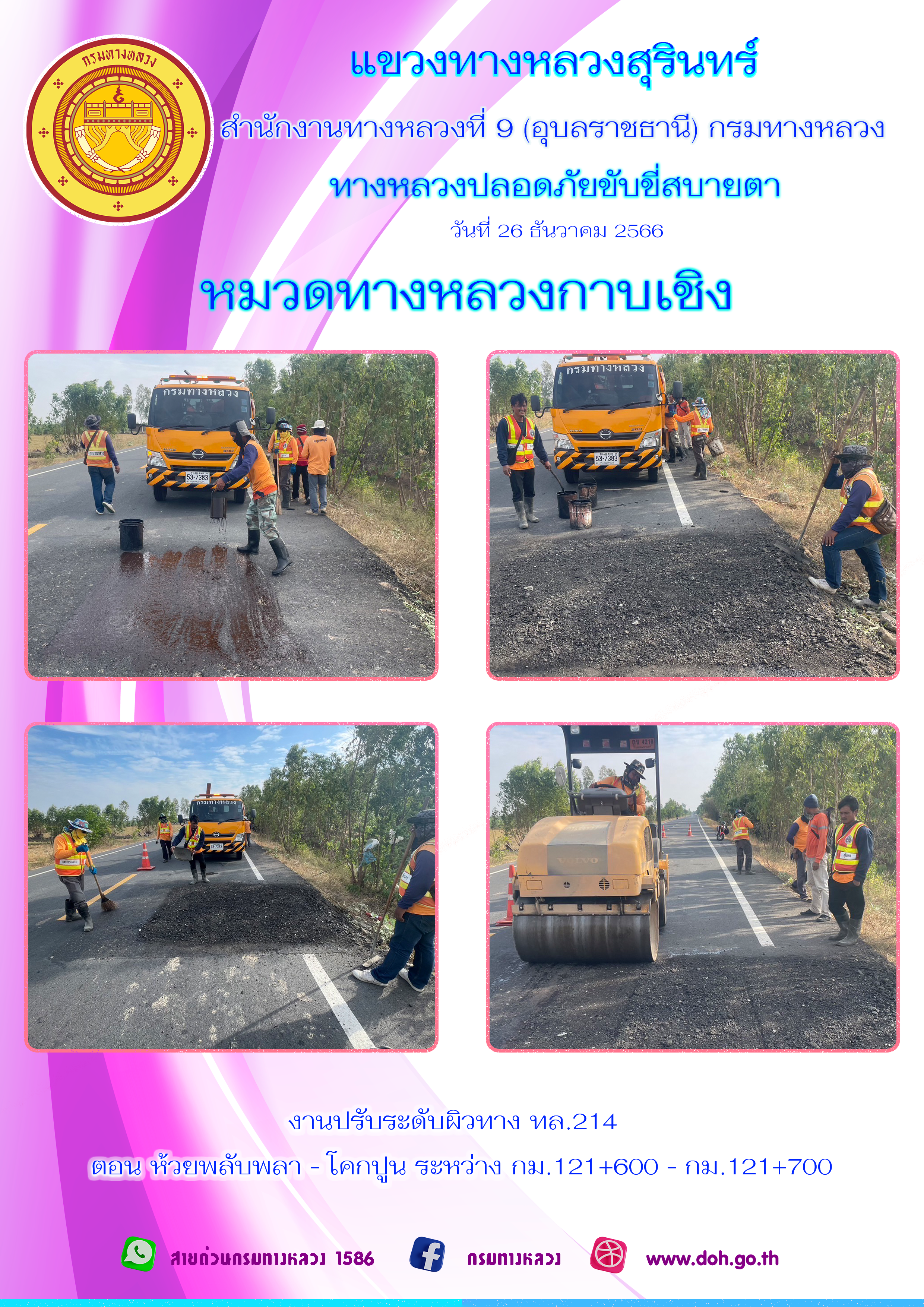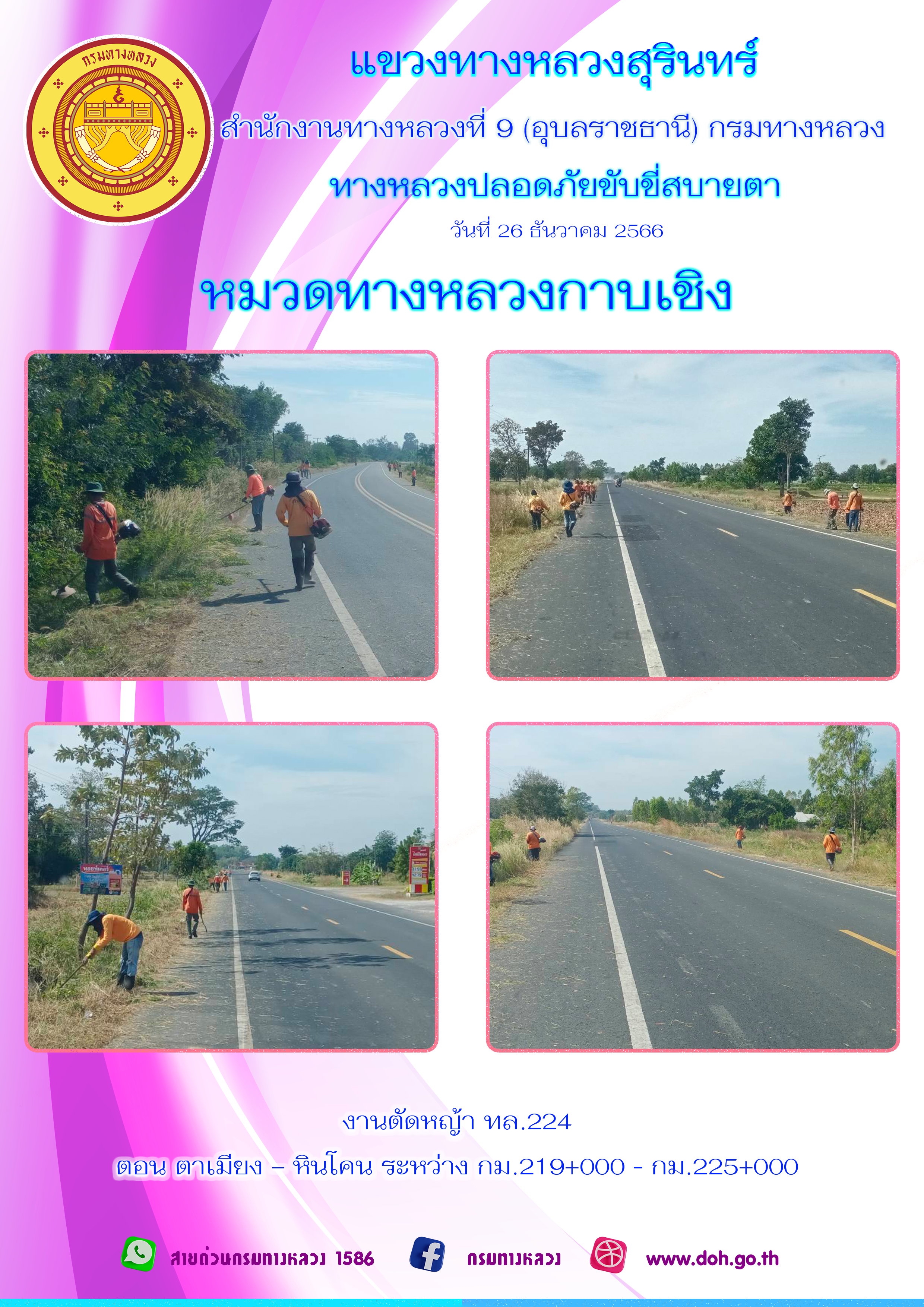 ข้อมูลภาพกิจกรรม : ทางหลวงปลอยภัย ขับขี่สบายตา 26 ธันวาคม 2566