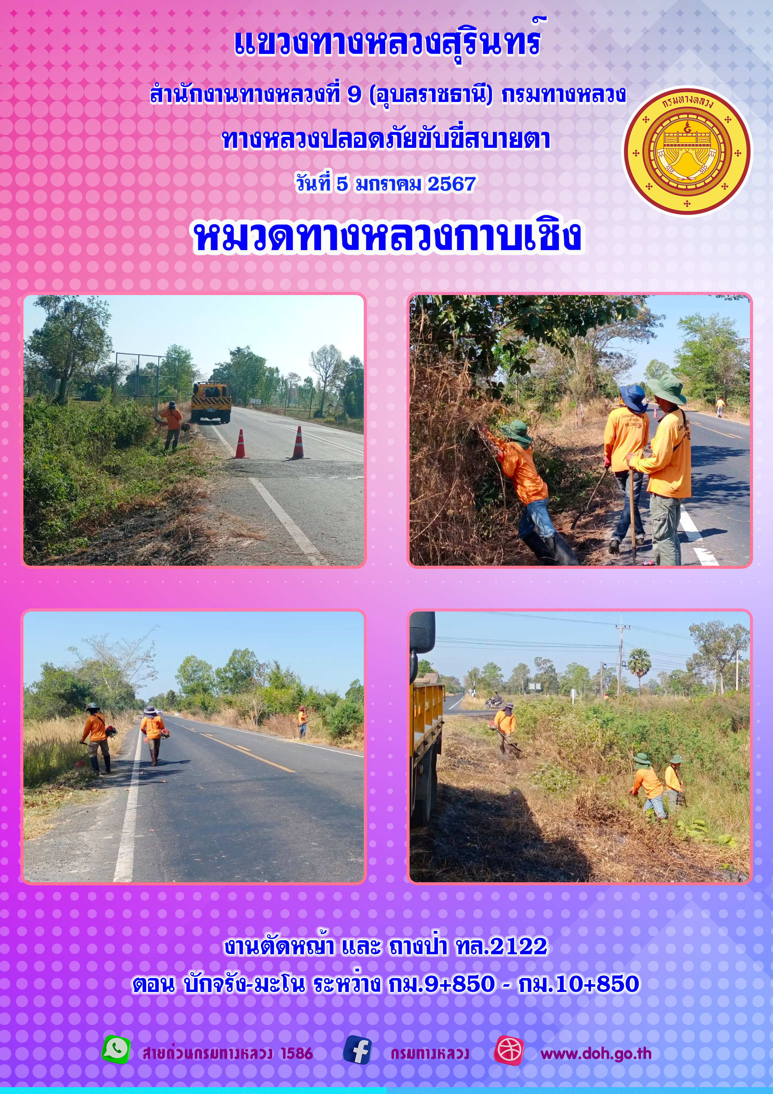 วิสัยทัศน์ : พัฒนาทางหลวงให้ได้มาตรฐาน มุ่งเน้นงานบริการประชาชน สร้างผลงานจากกิจกรรม 5 ส.