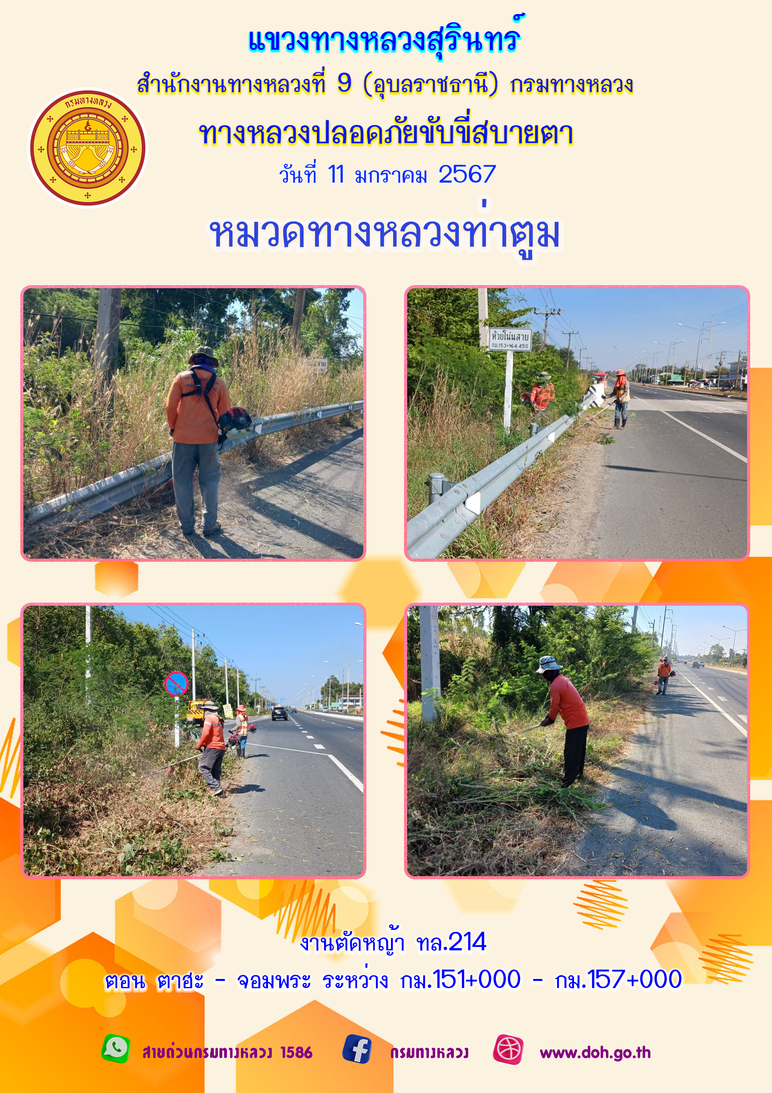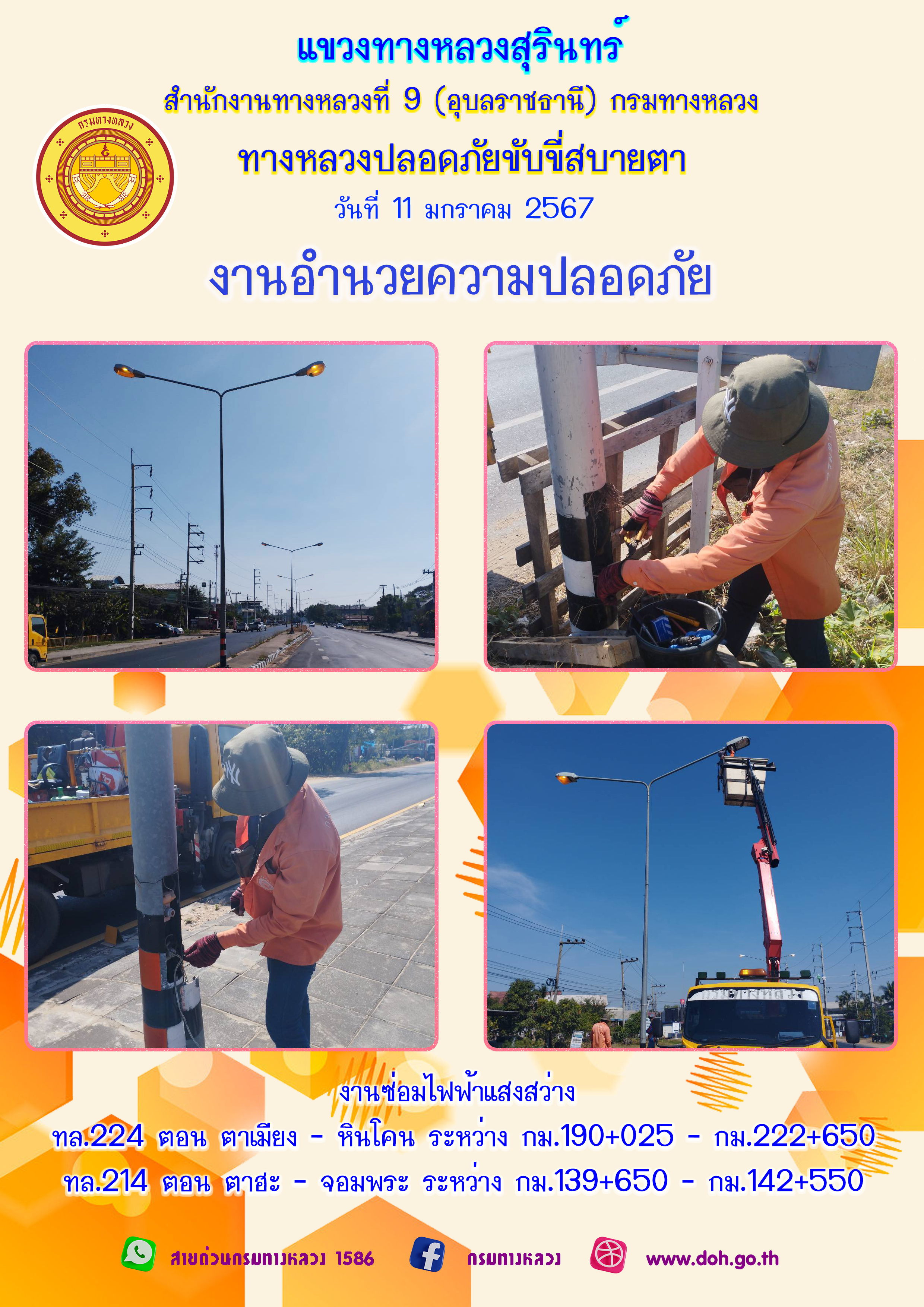 ข้อมูลภาพกิจกรรม : ทางหลวงปลอยภัย ขับขี่สบายตา 11 มกราคม 2567