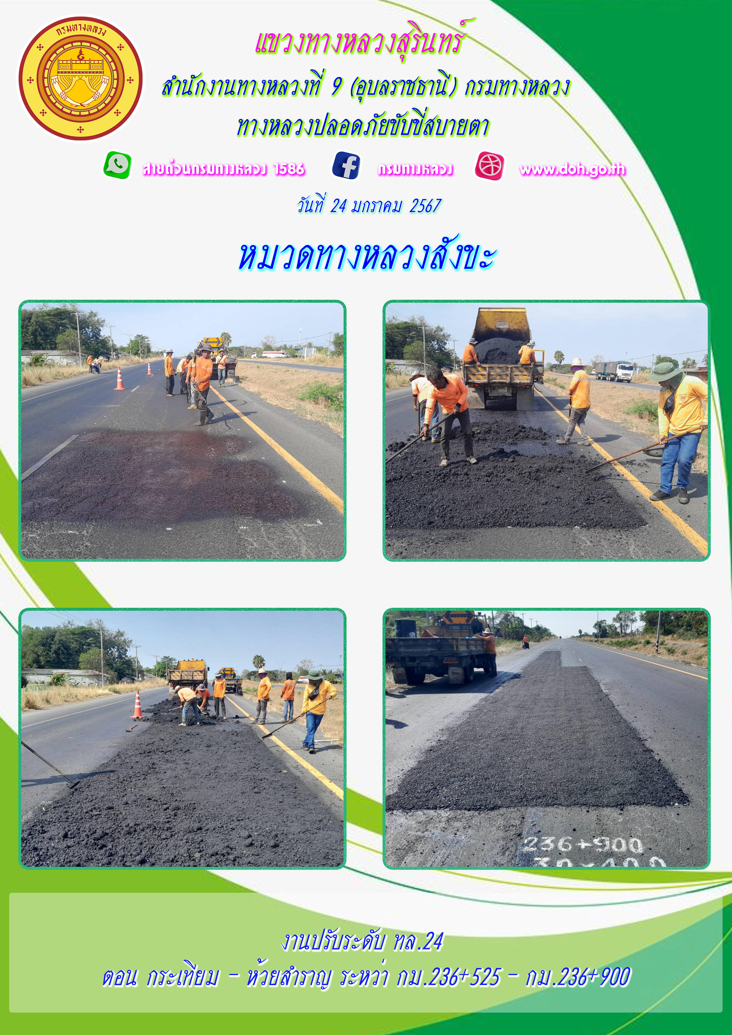 ทางหลวงปลอยภัย ขับขี่สบายตา 24 มกราคม 2567