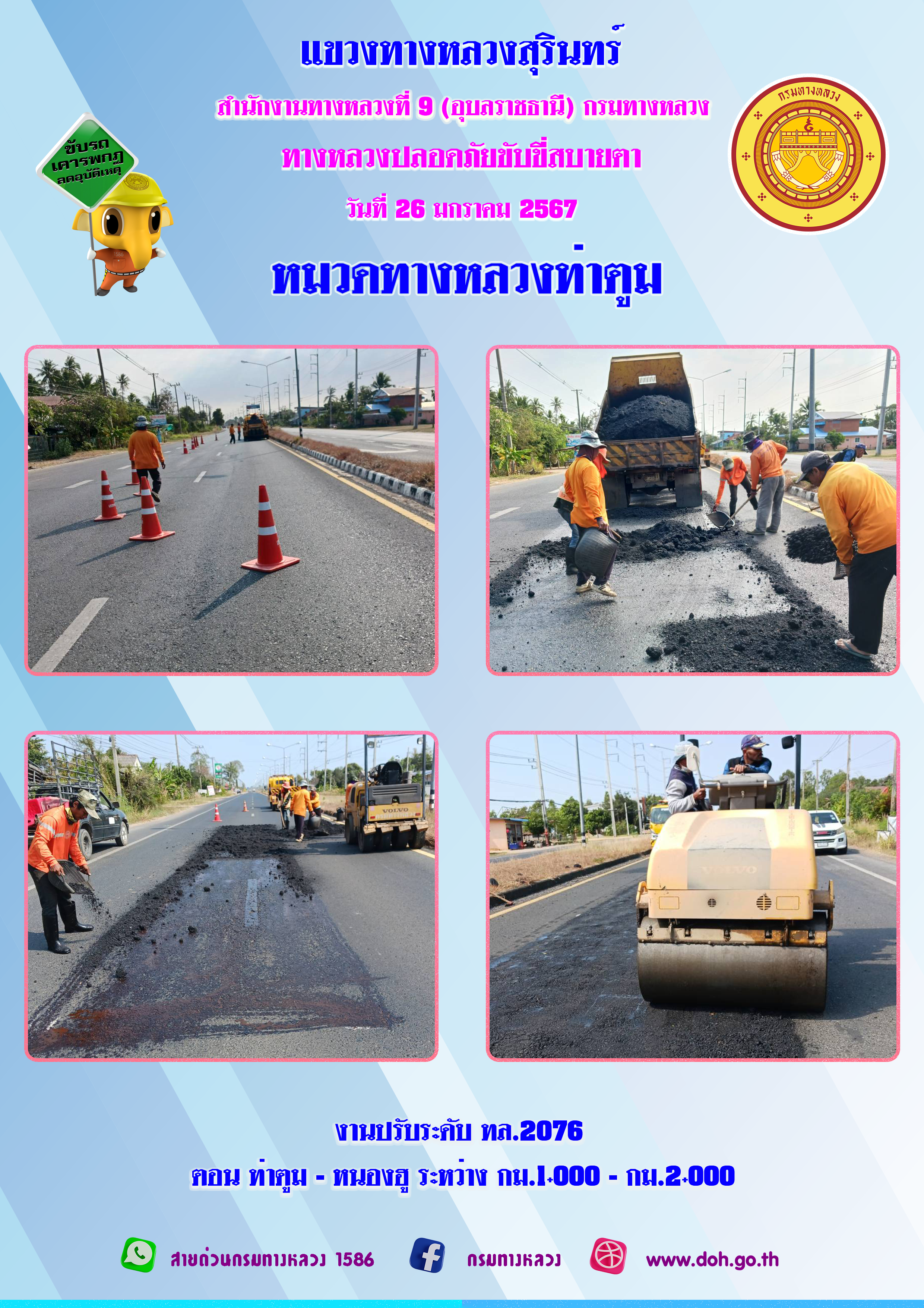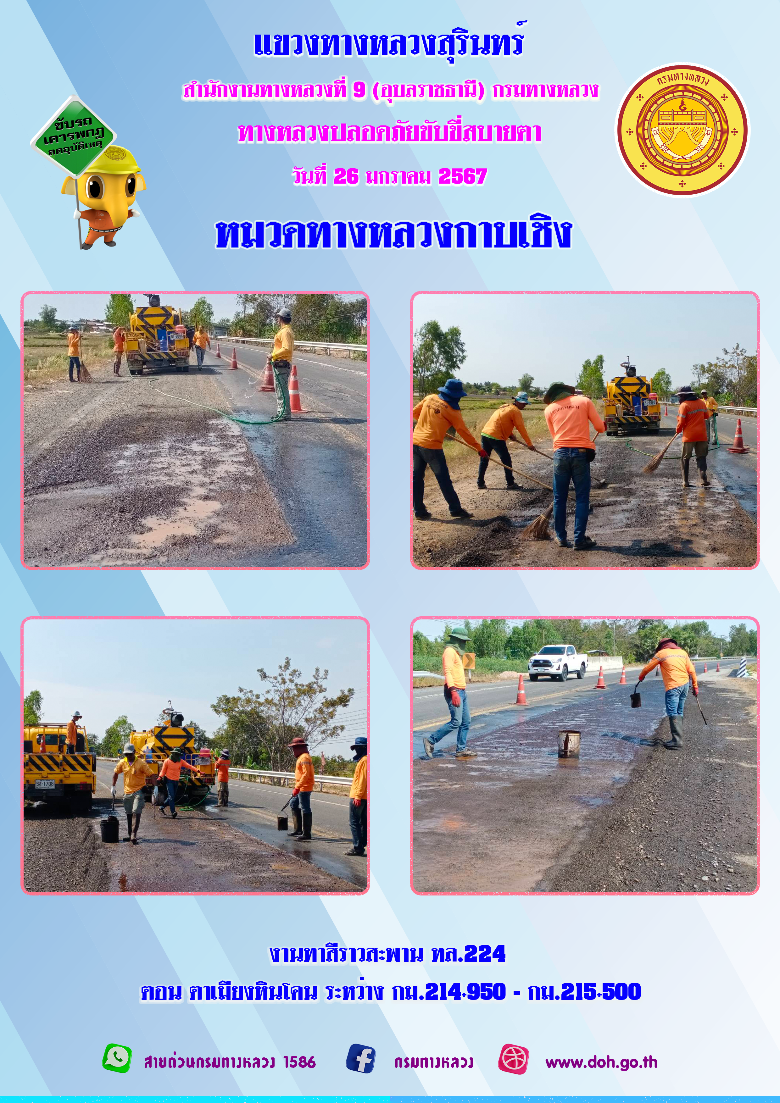 ข้อมูลภาพกิจกรรม : ทางหลวงปลอยภัย ขับขี่สบายตา 26 มกราคม 2567
