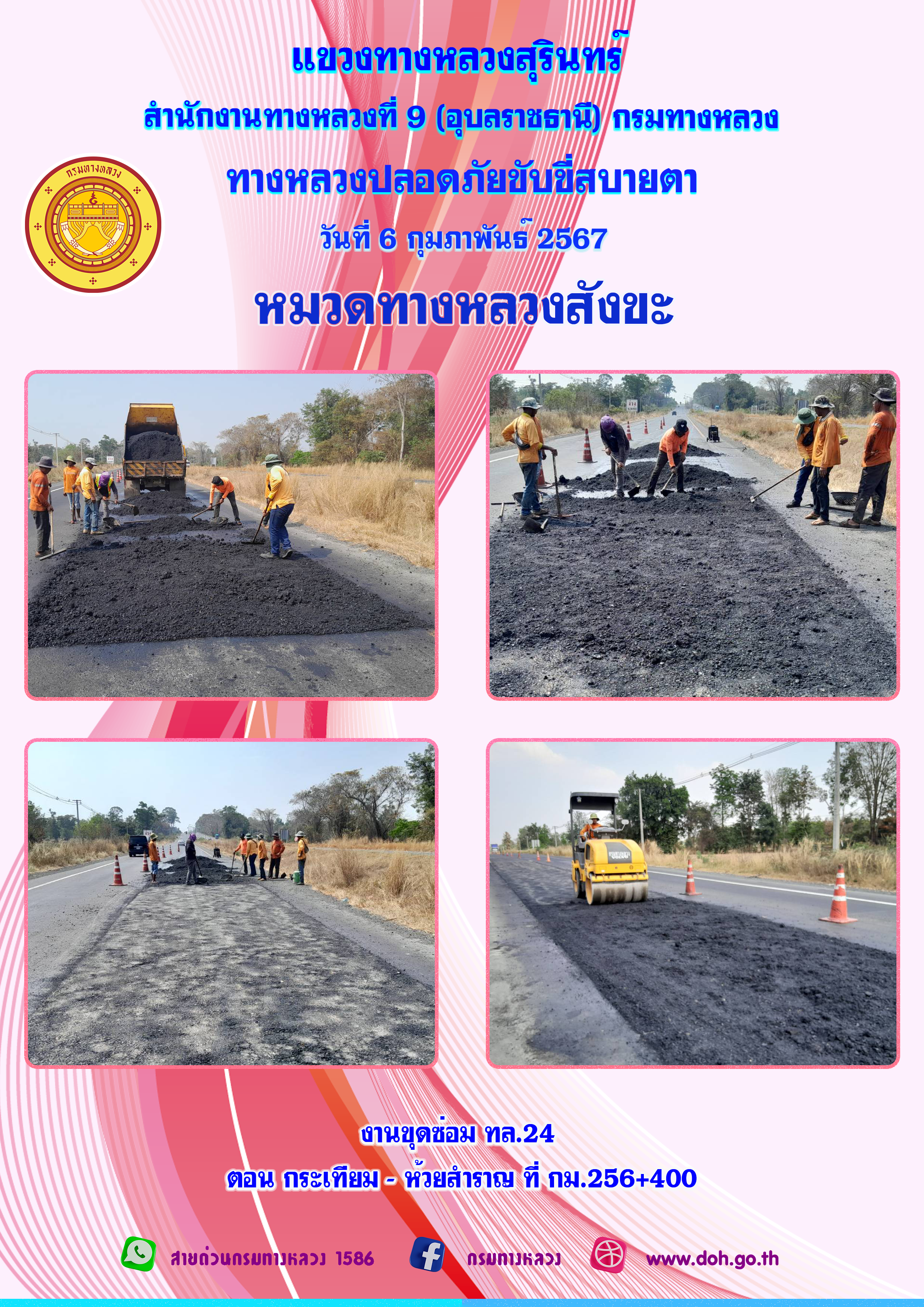 ข้อมูลภาพกิจกรรม : ทางหลวงปลอยภัย ขับขี่สบายตา 6 กุมภาพันธ์ 2567