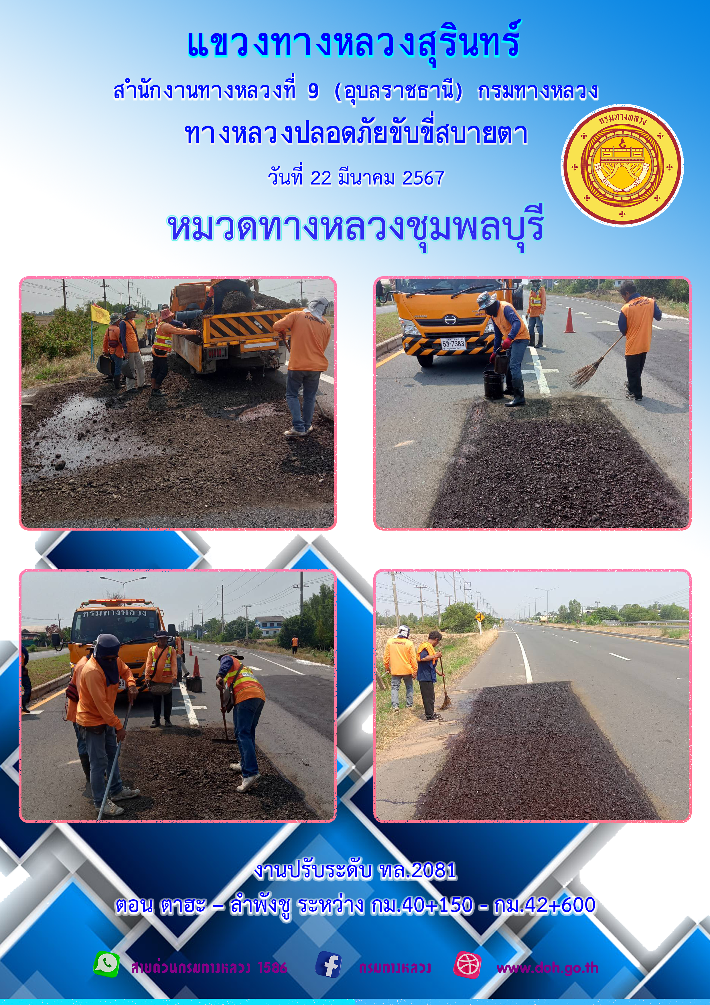ทางหลวงปลอยภัย ขับขี่สบายตา 22 มีนาคม 2567