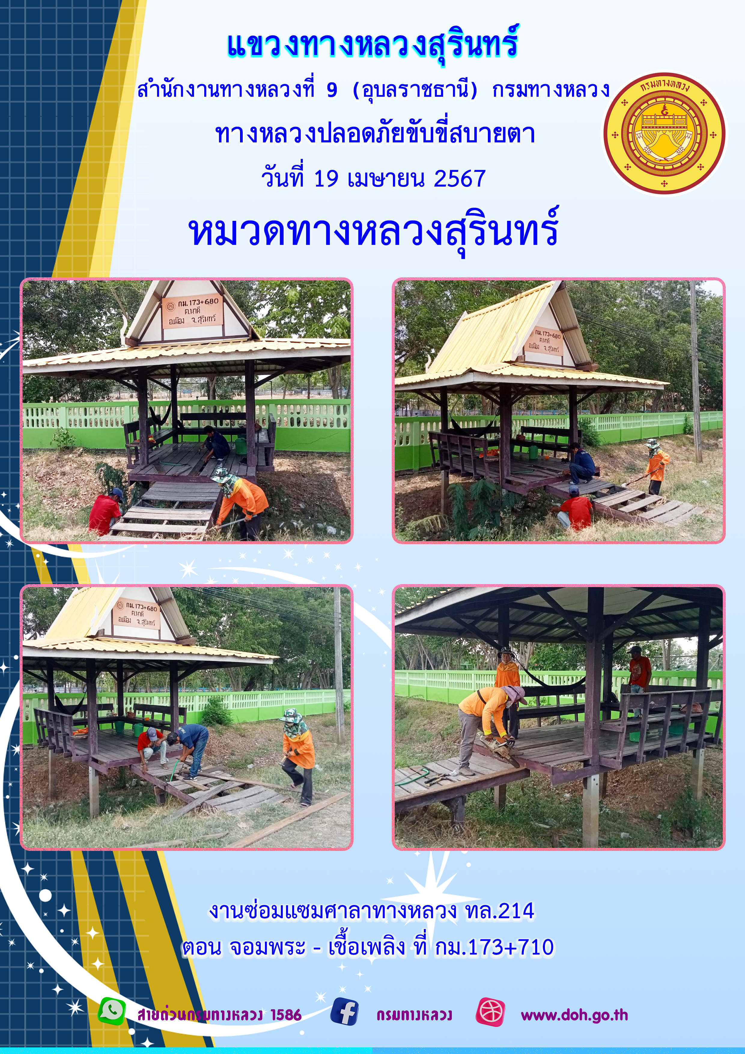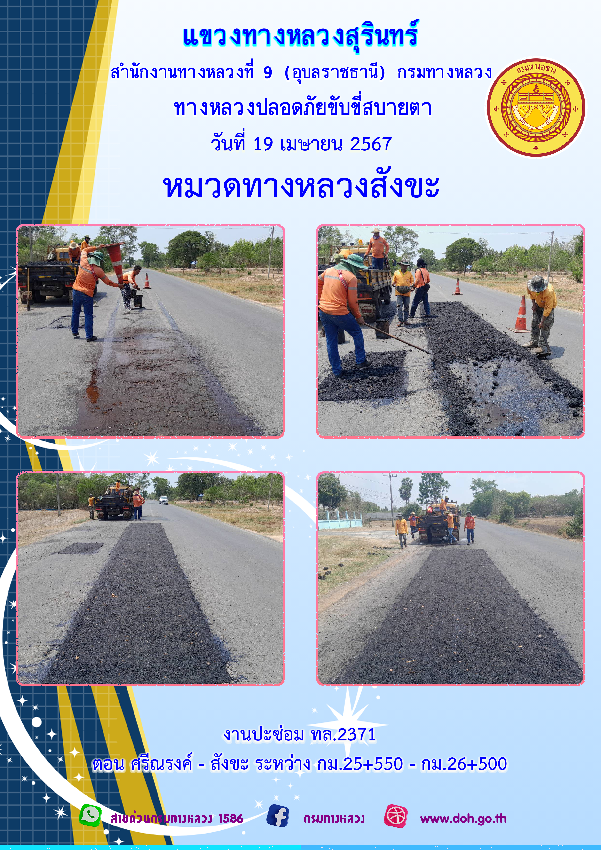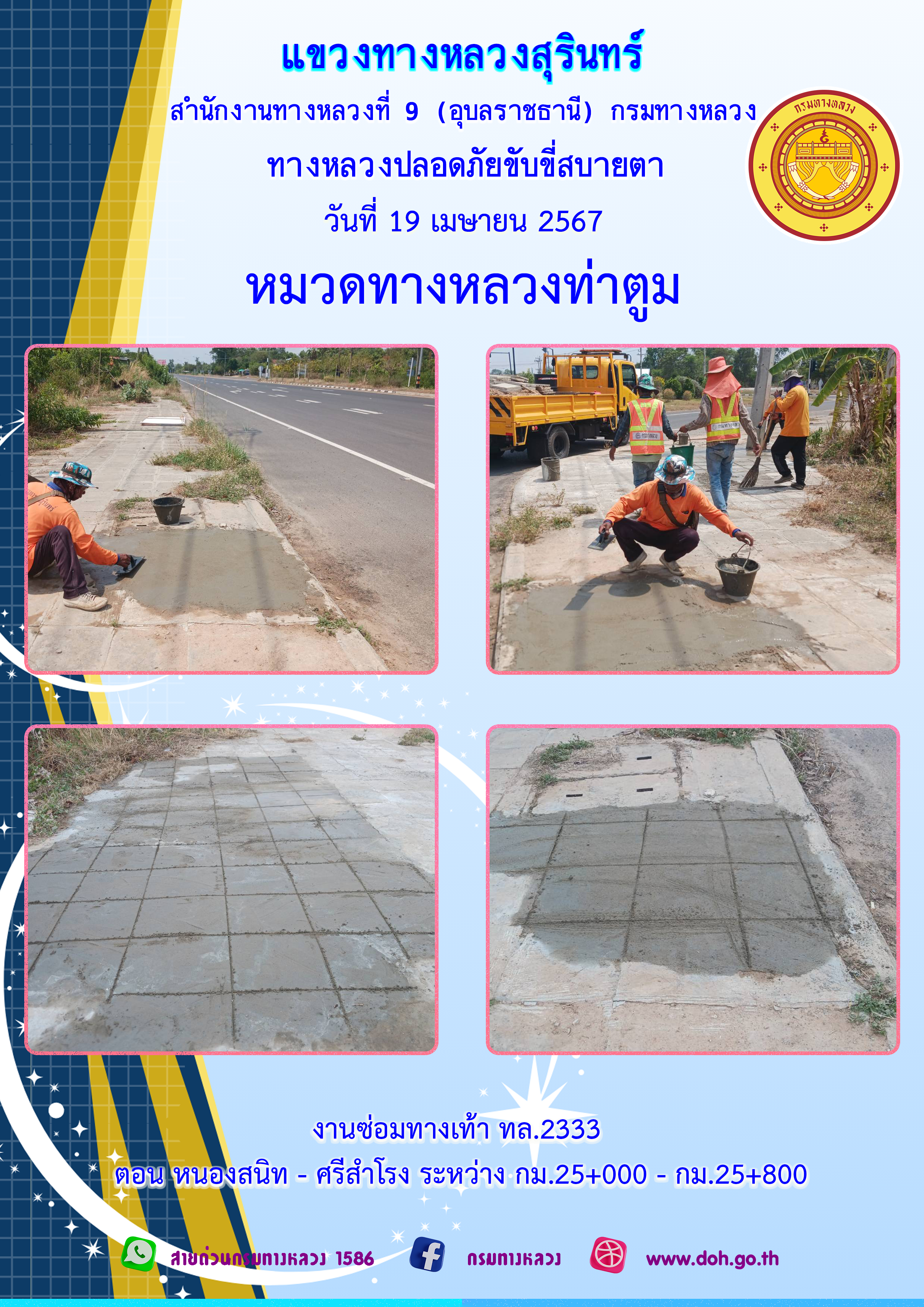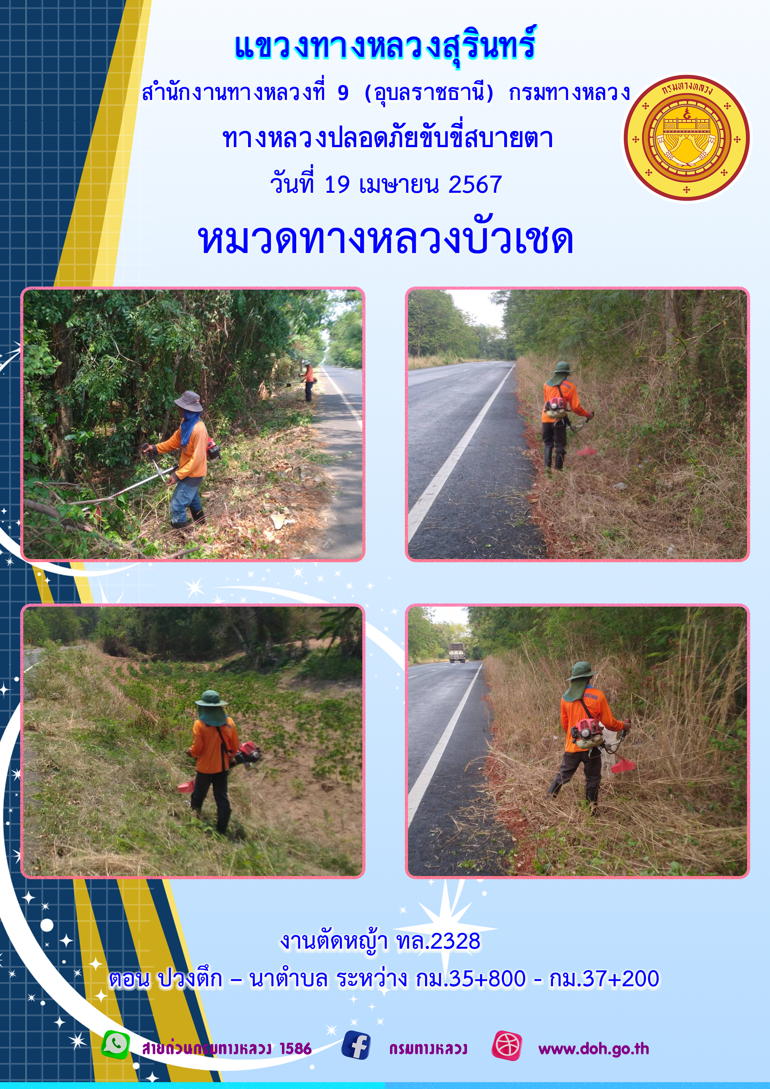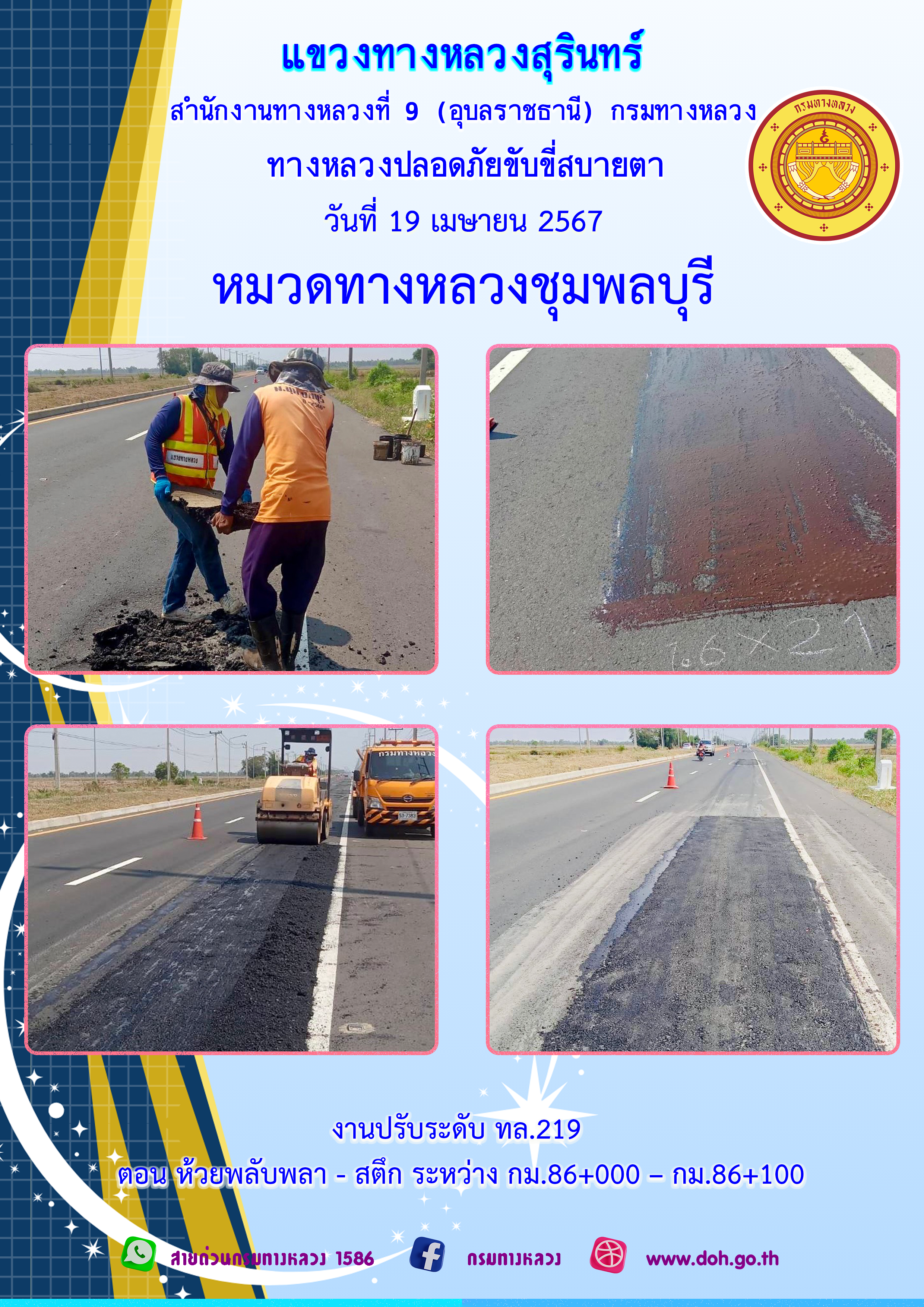 ข้อมูลภาพกิจกรรม : ทางหลวงปลอยภัย ขับขี่สบายตา 18 เมษายน 2567
