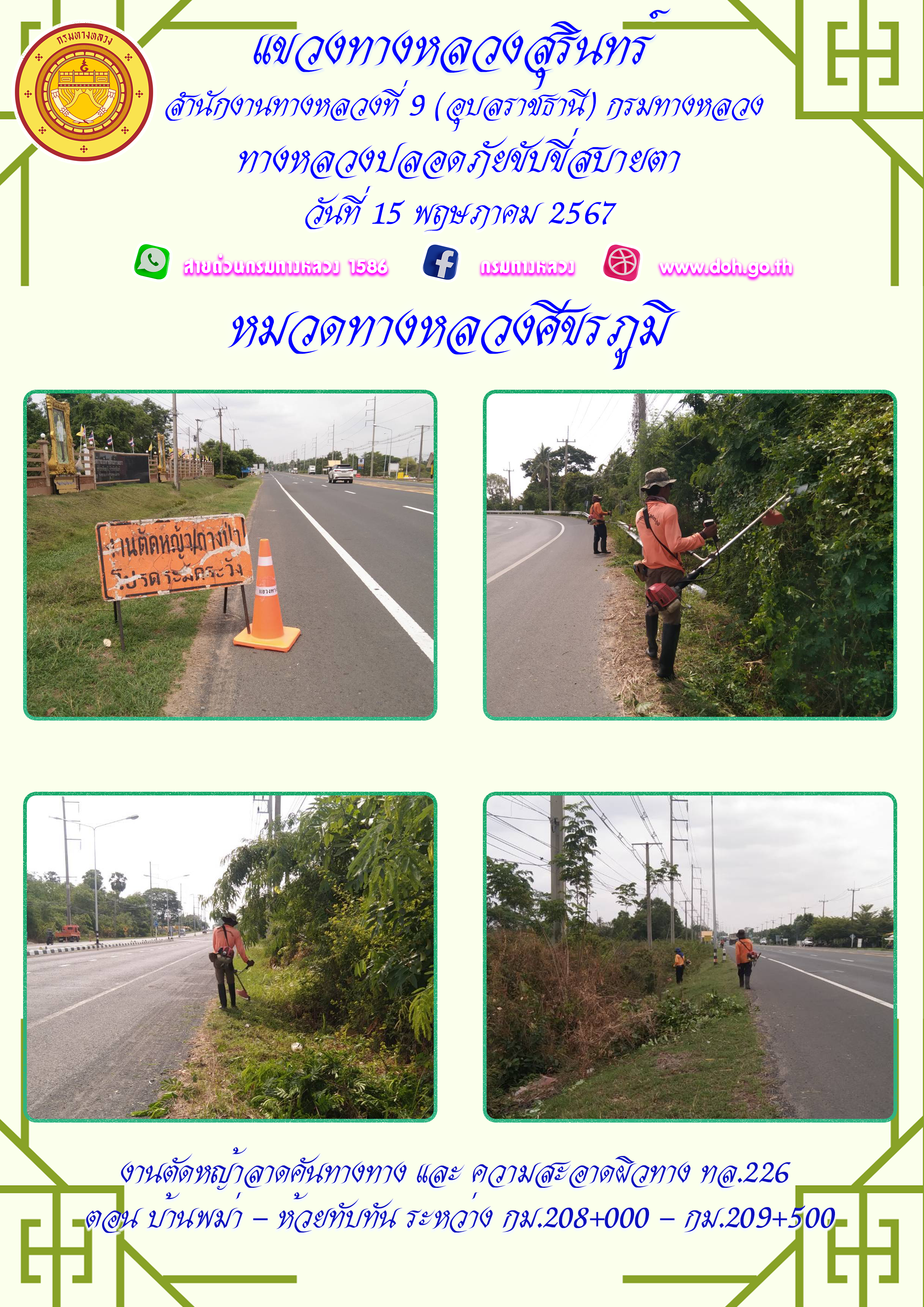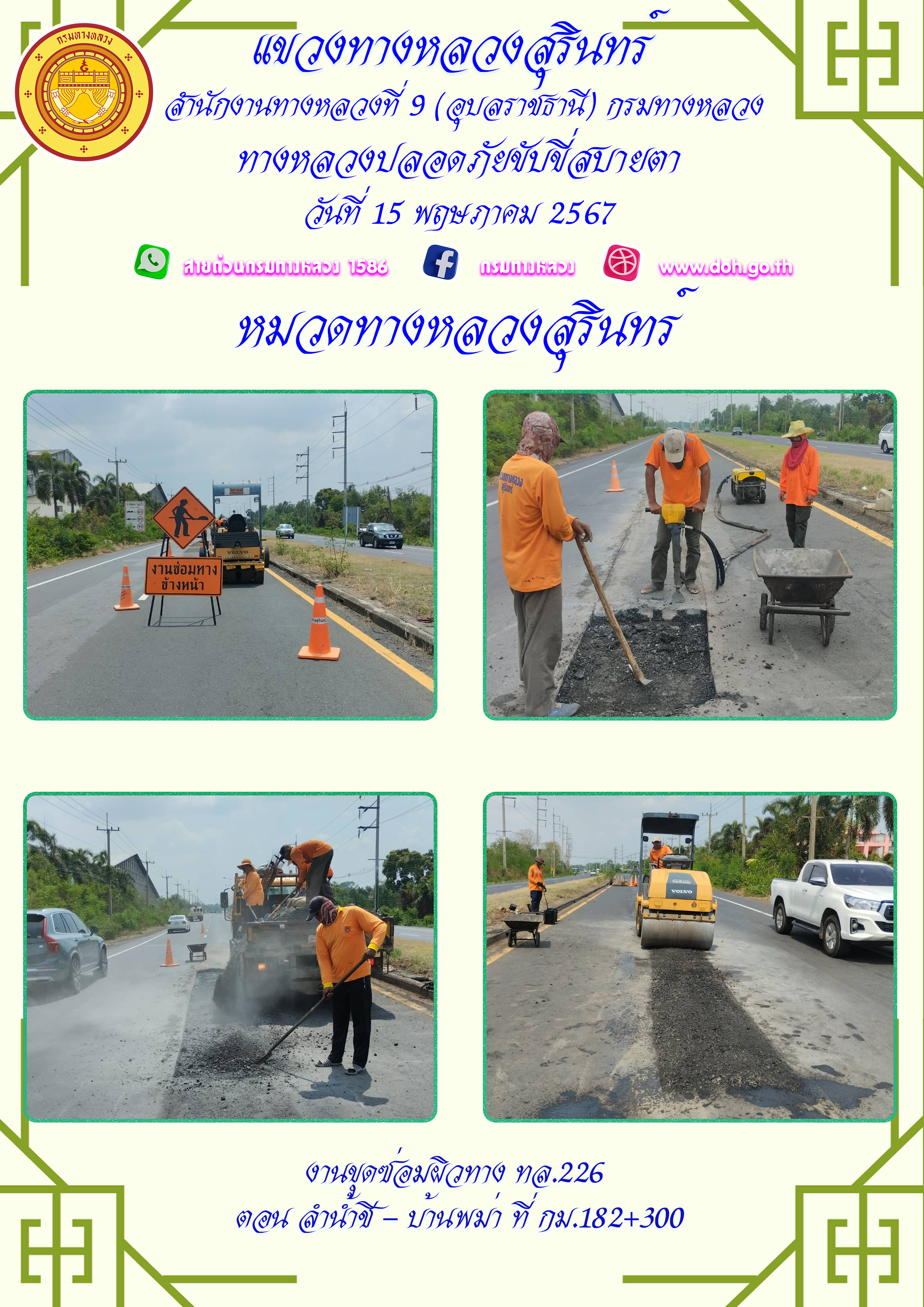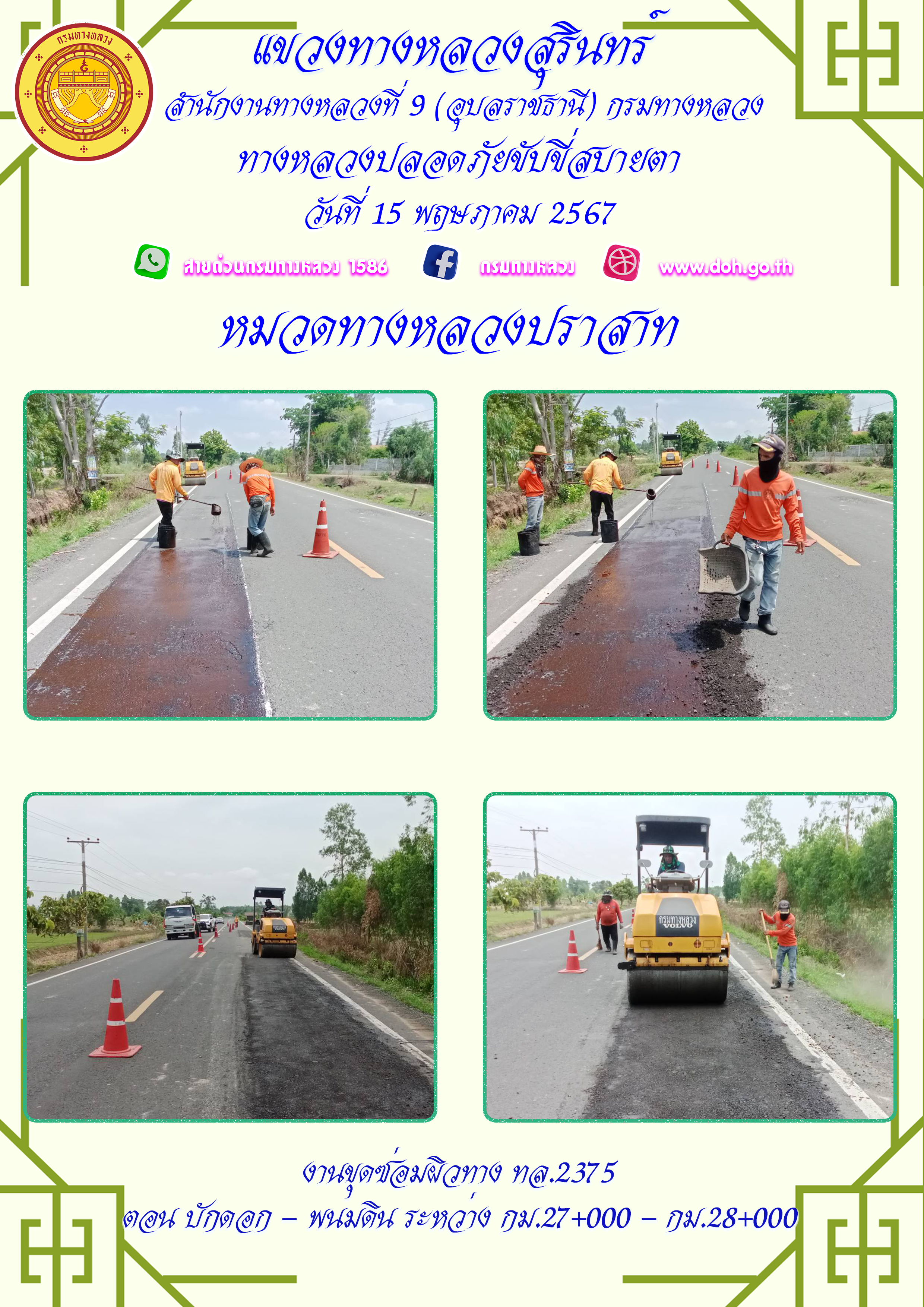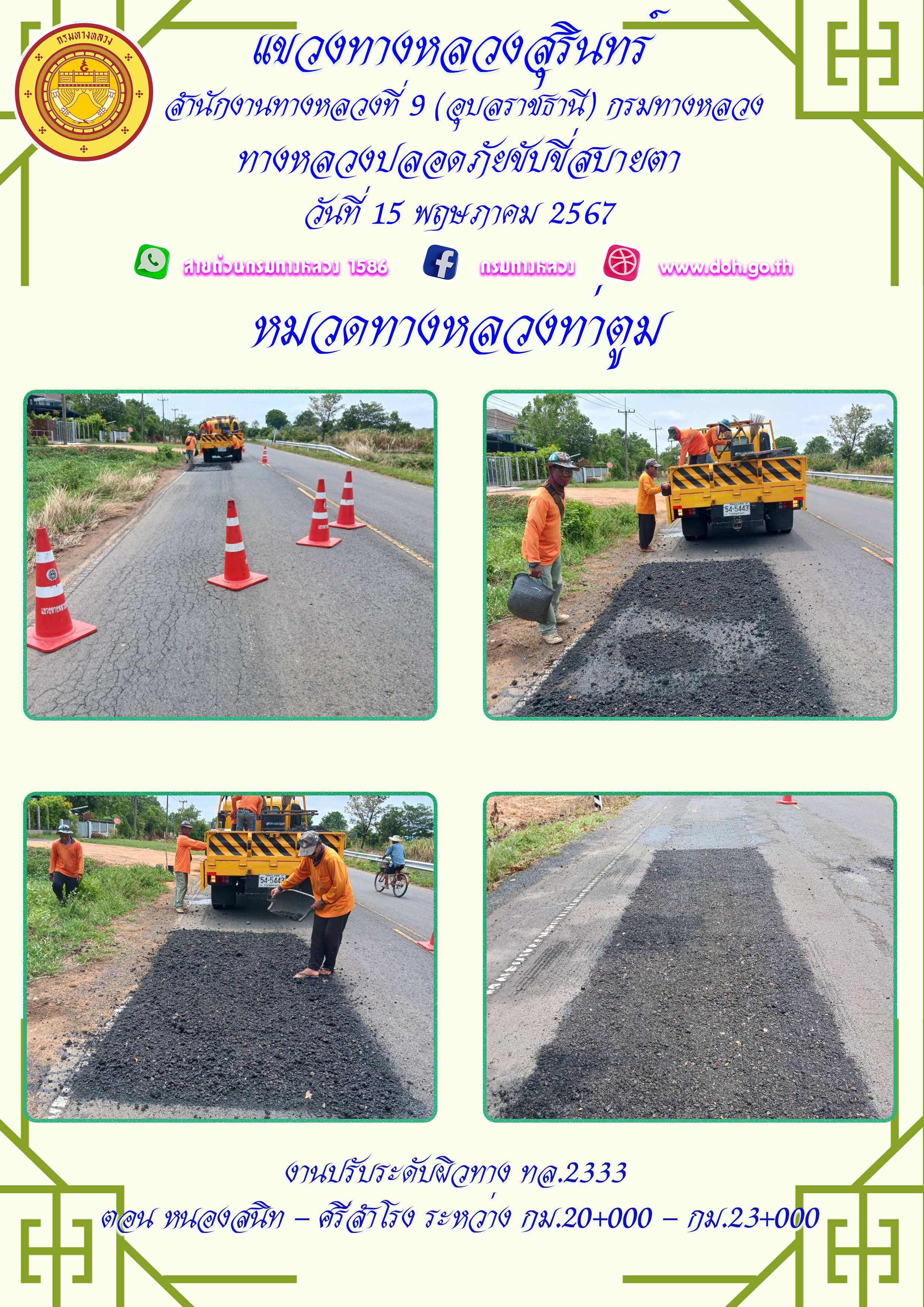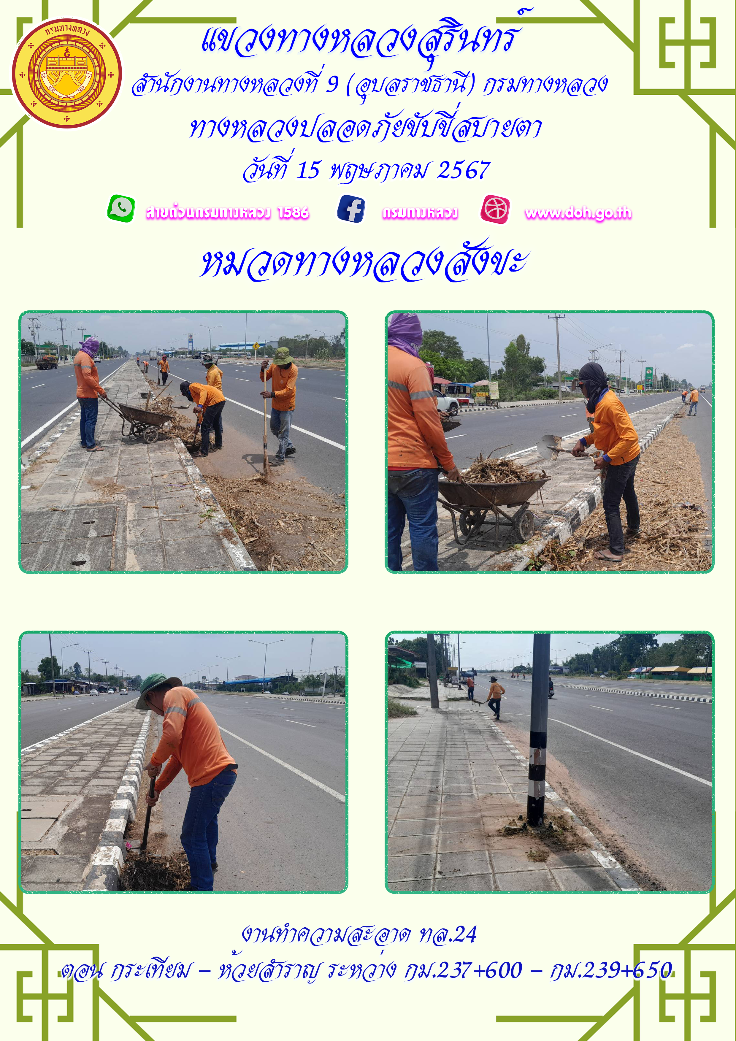 ทางหลวงปลอยภัย ขับขี่สบายตา 15 พฤษภาคม 2567
