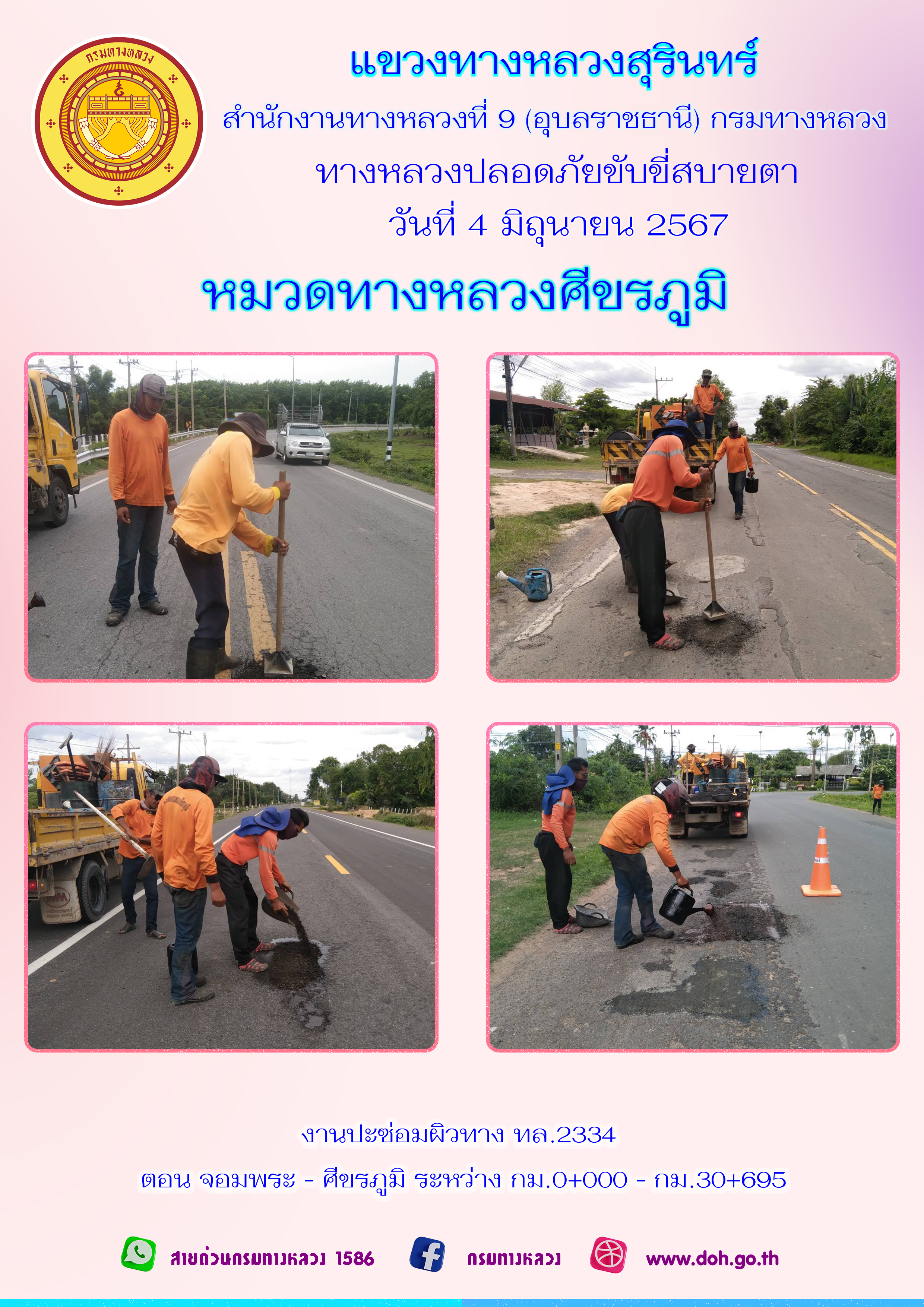ทางหลวงปลอยภัย ขับขี่สบายตา 4 มิถุนายน 2567