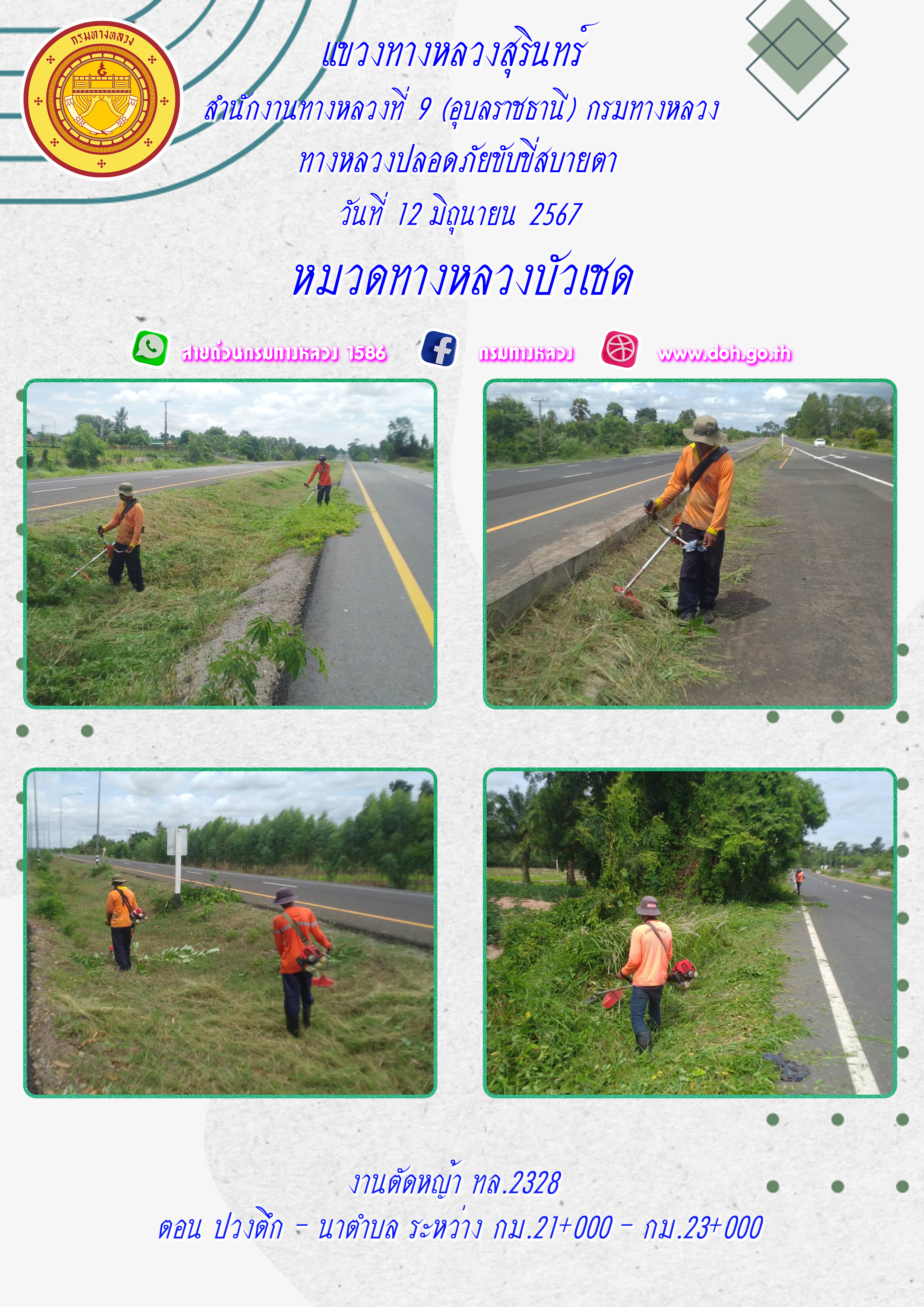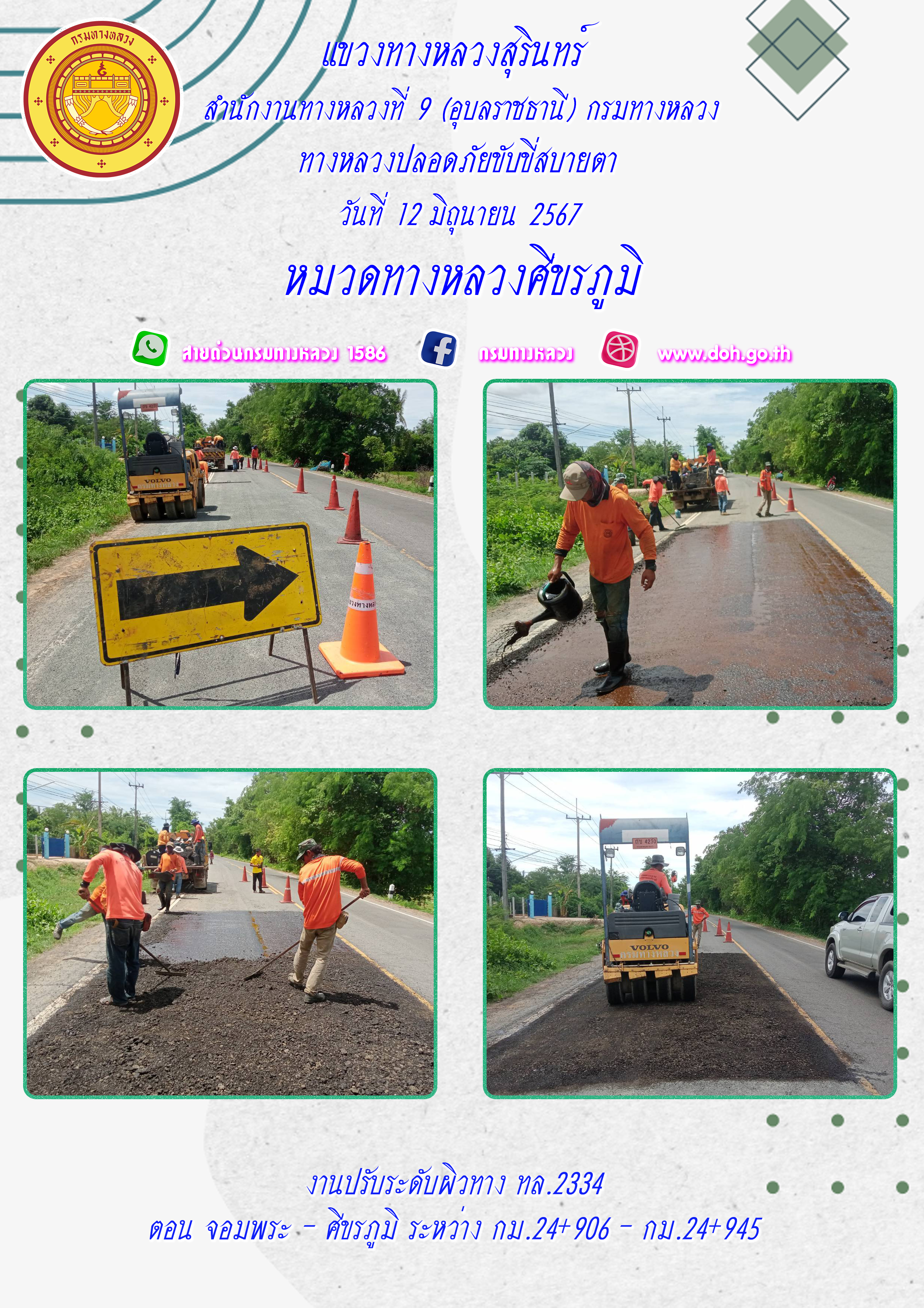 ข้อมูลภาพกิจกรรม : ทางหลวงปลอยภัย ขับขี่สบายตา 12 มิถุนายน 2567
