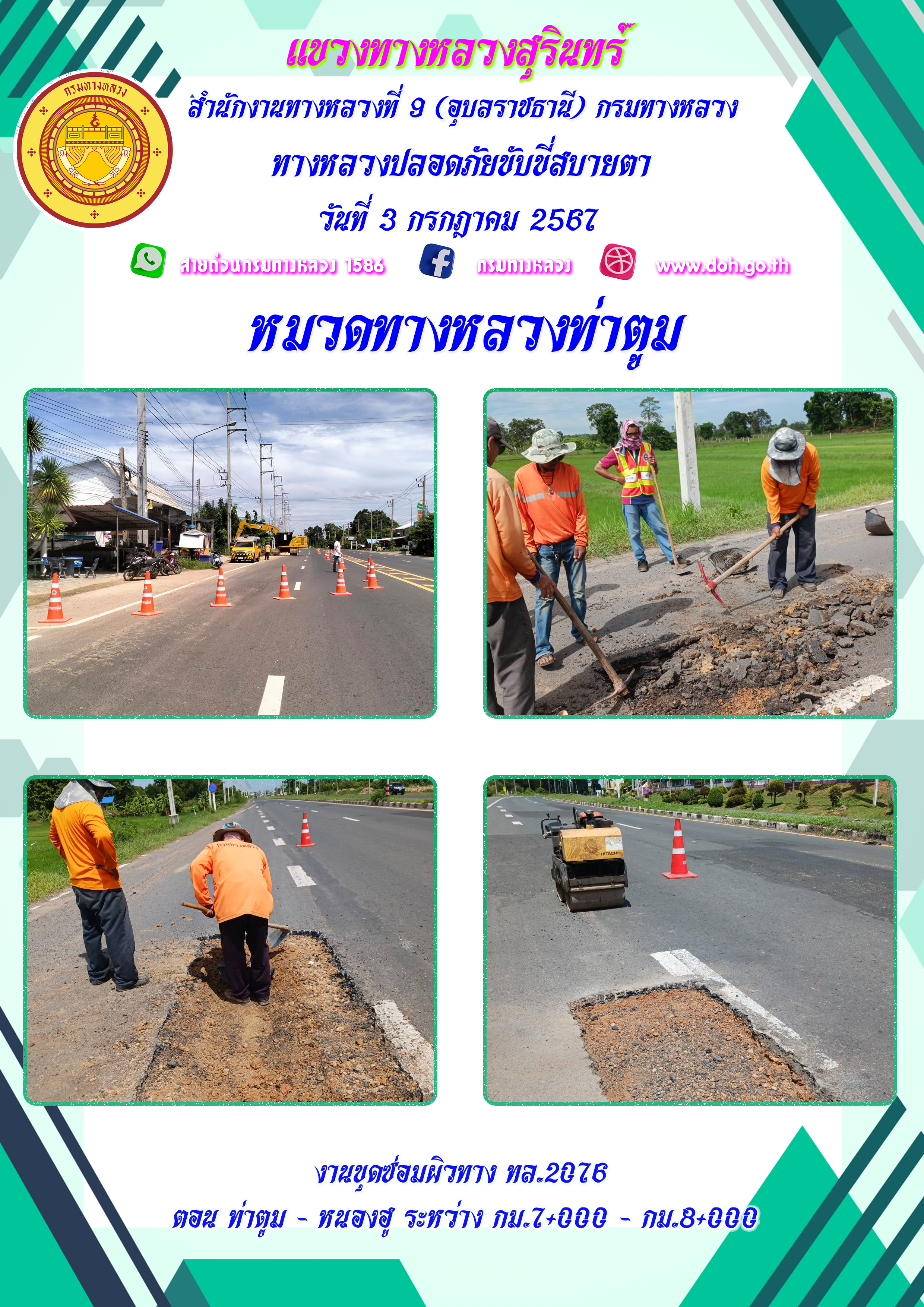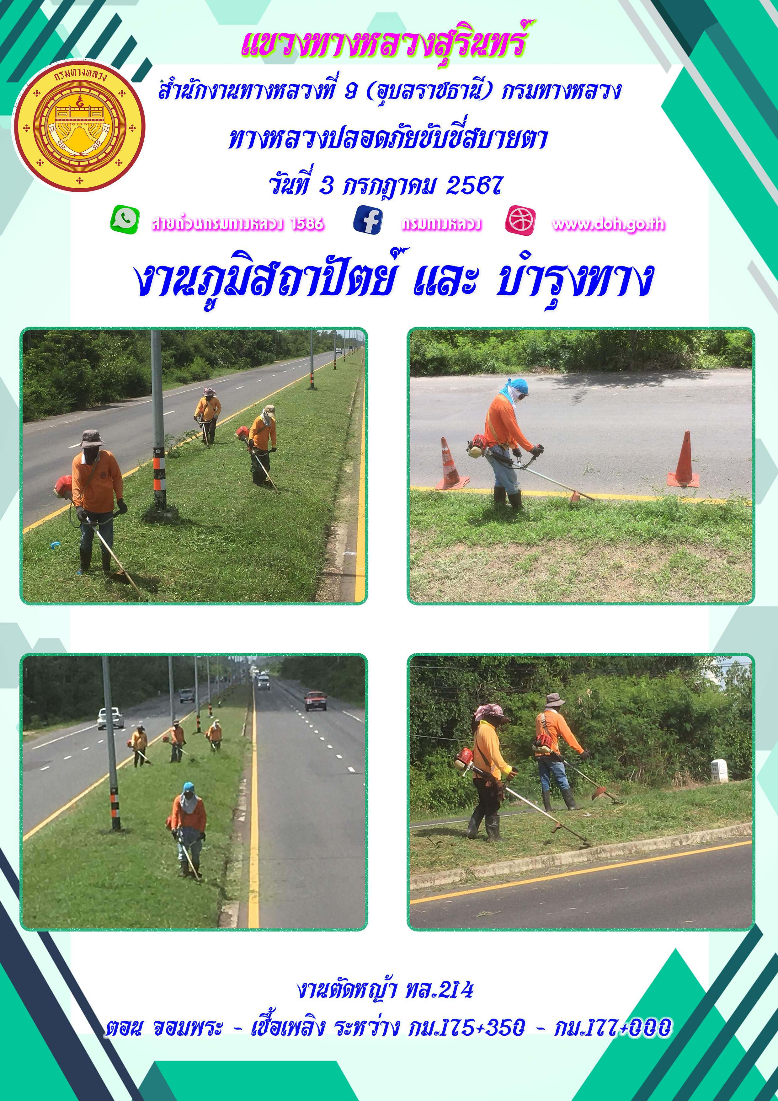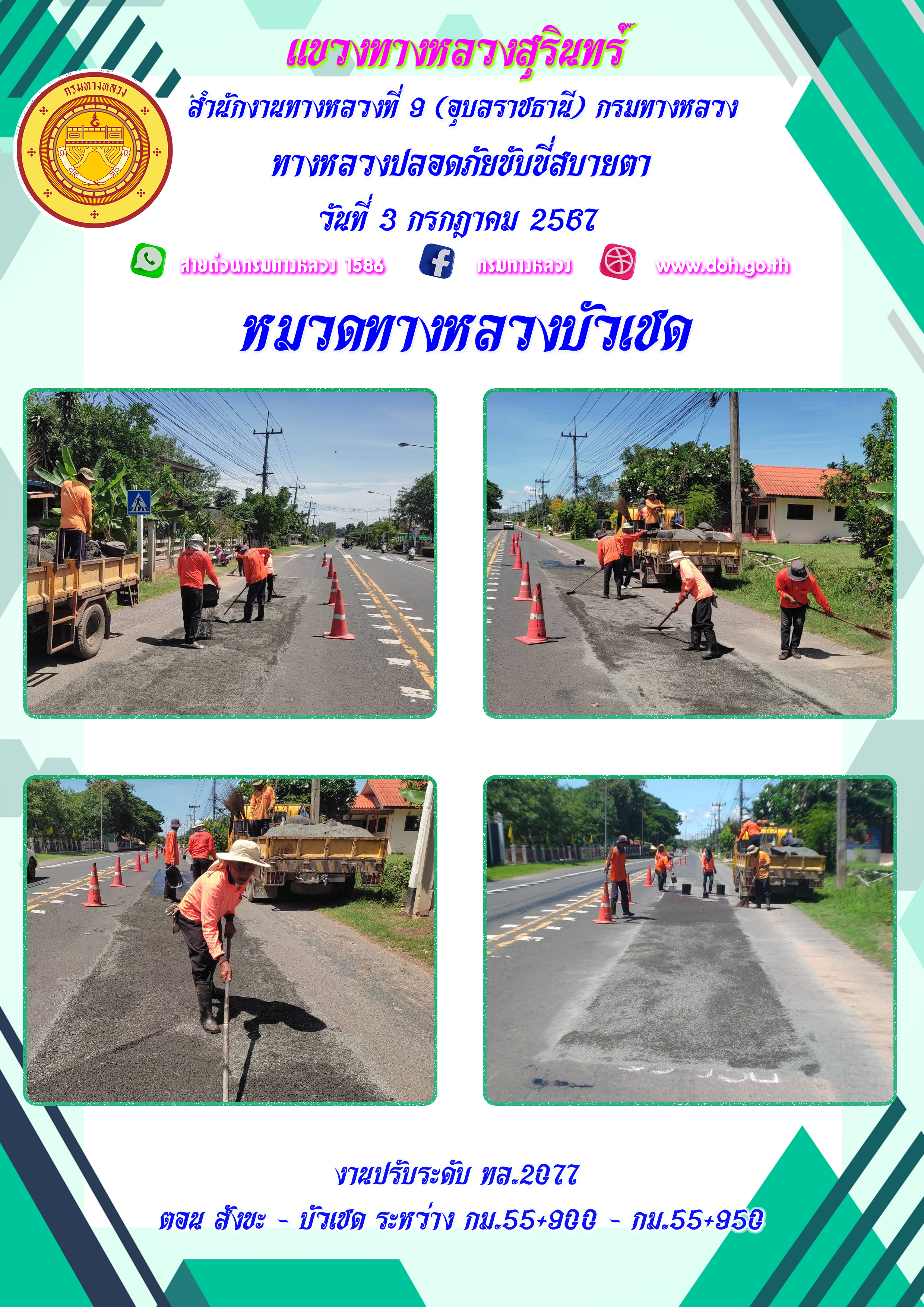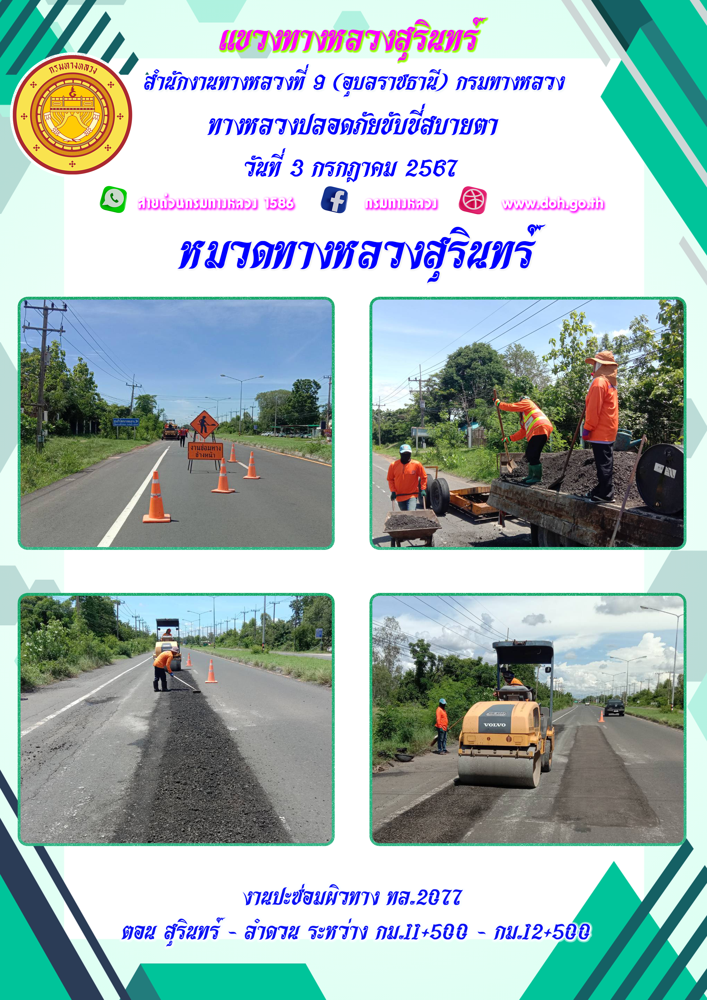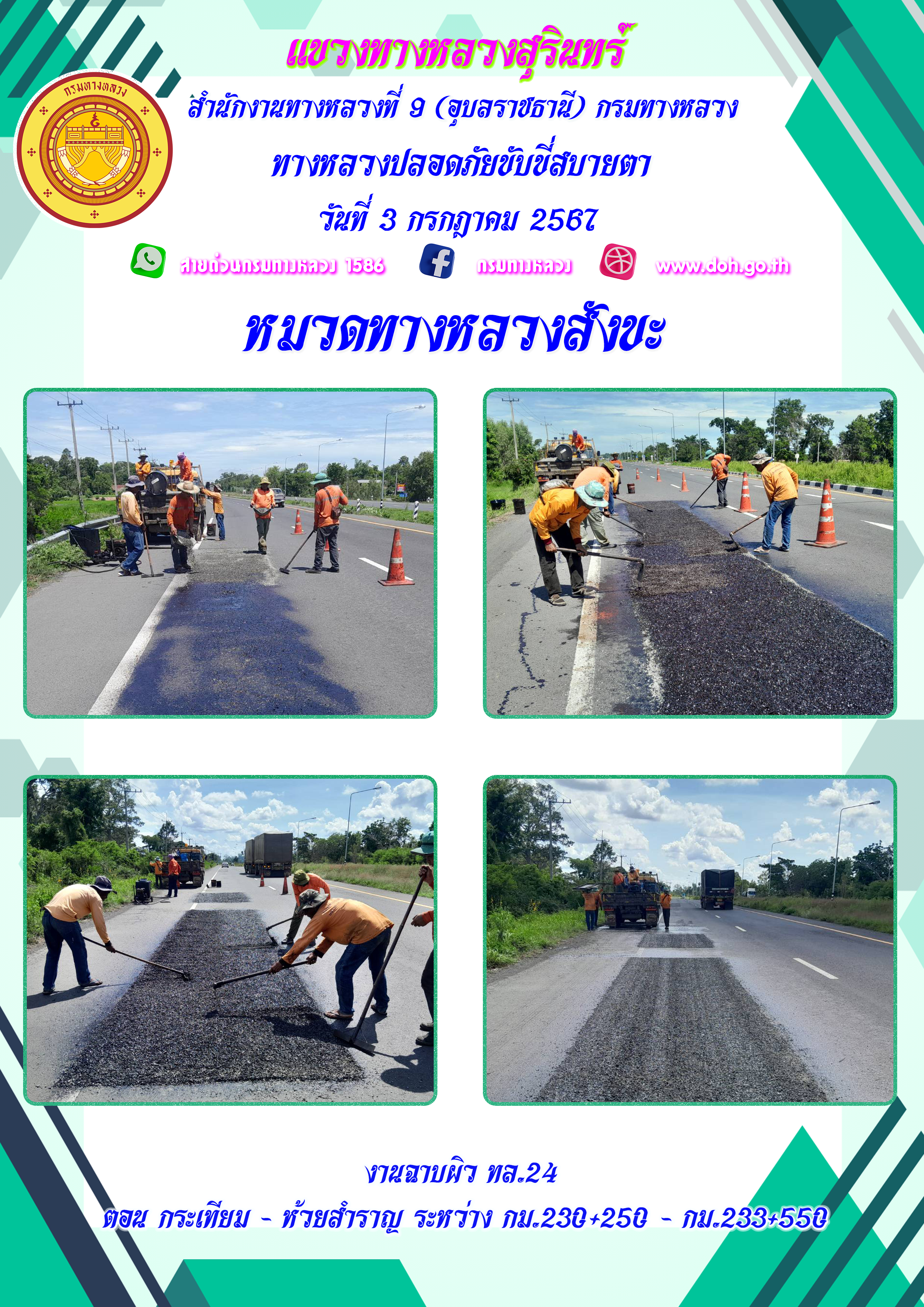 ข้อมูลภาพกิจกรรม : ทางหลวงปลอยภัย ขับขี่สบายตา 3 กรกฎาคม 2567