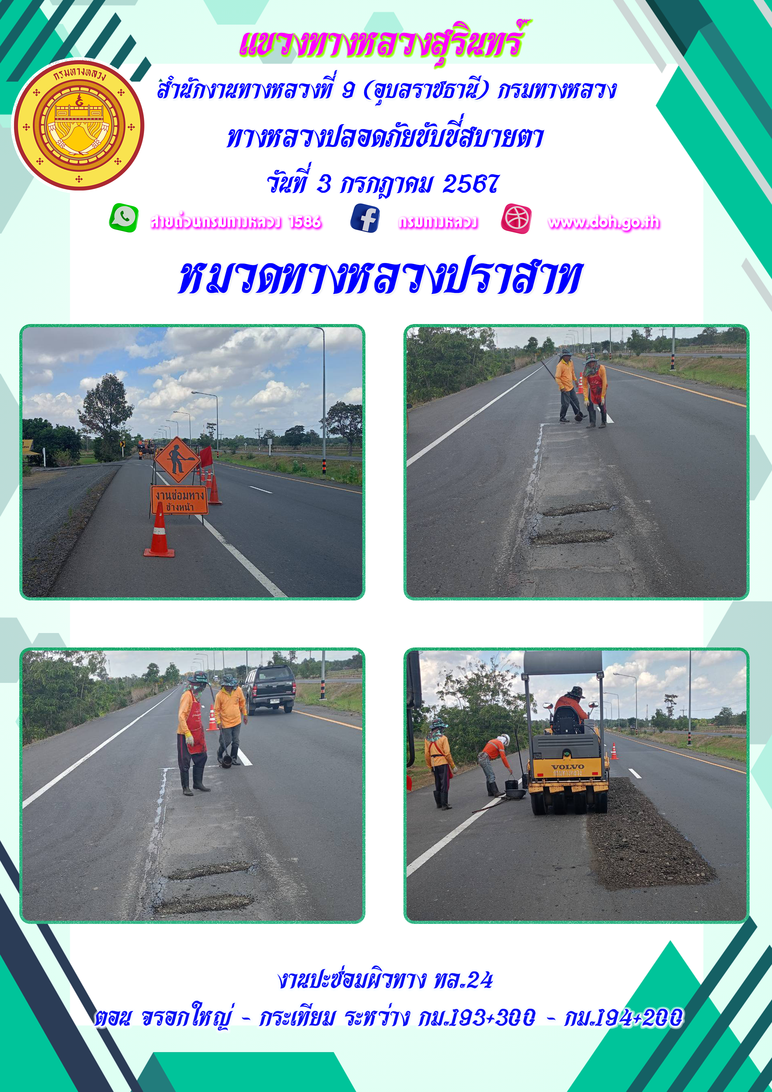 ทางหลวงปลอยภัย ขับขี่สบายตา 3 กรกฎาคม 2567