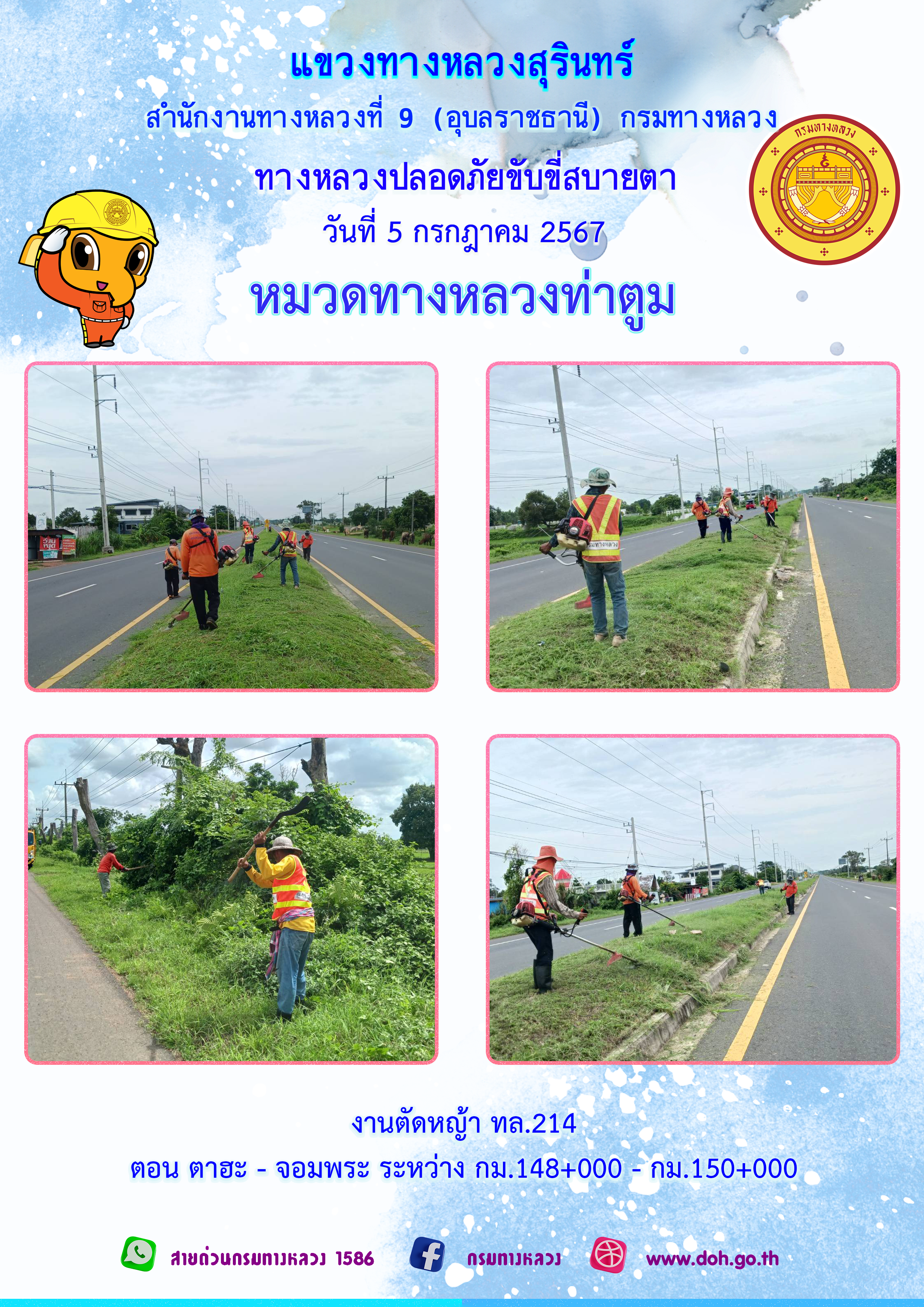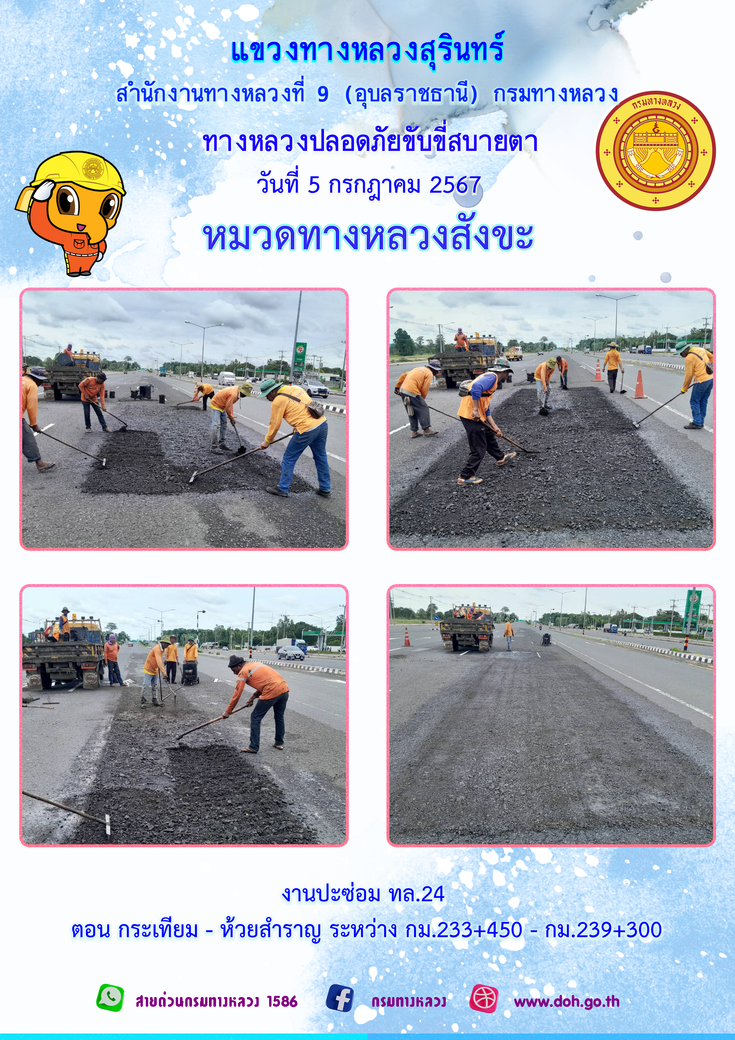 ข้อมูลภาพกิจกรรม : ทางหลวงปลอยภัย ขับขี่สบายตา 5 กรกฎาคม 2567