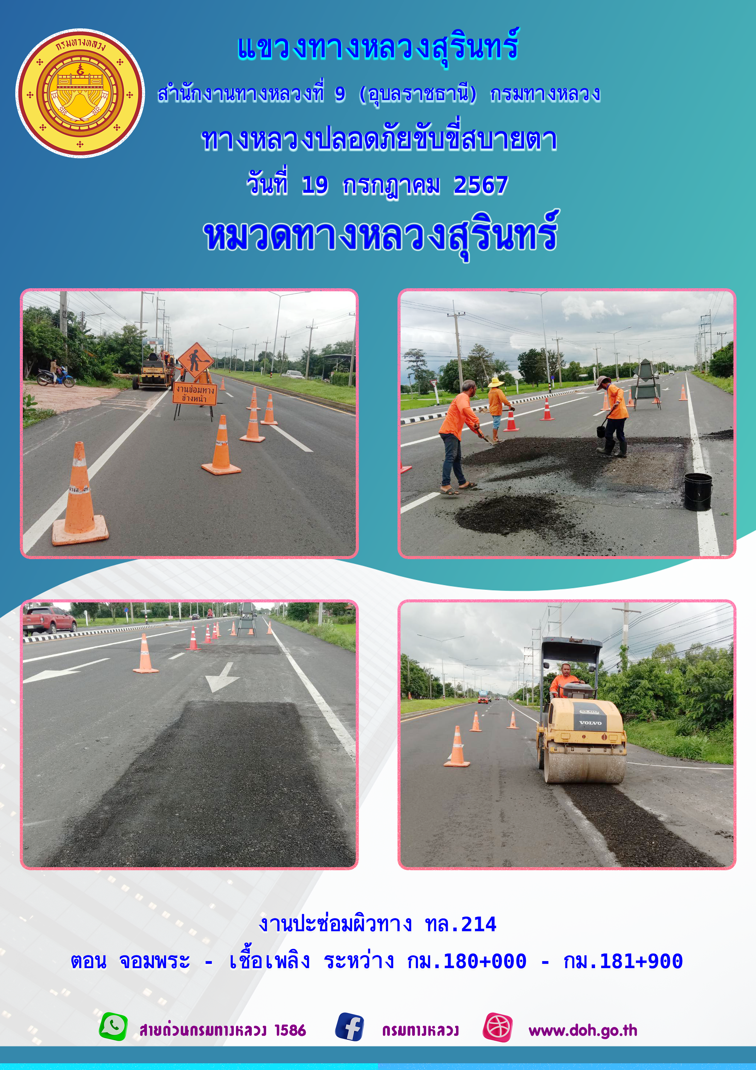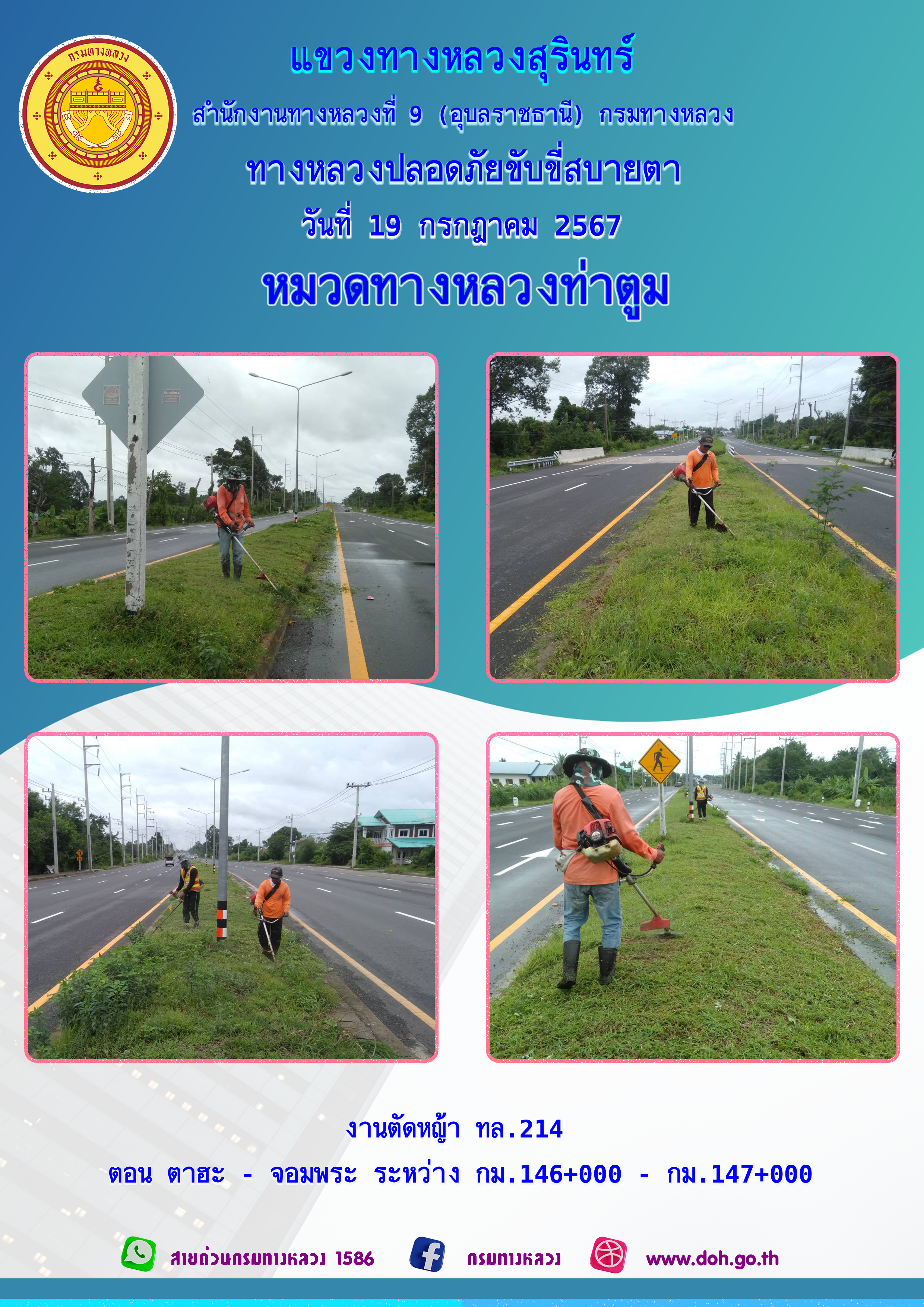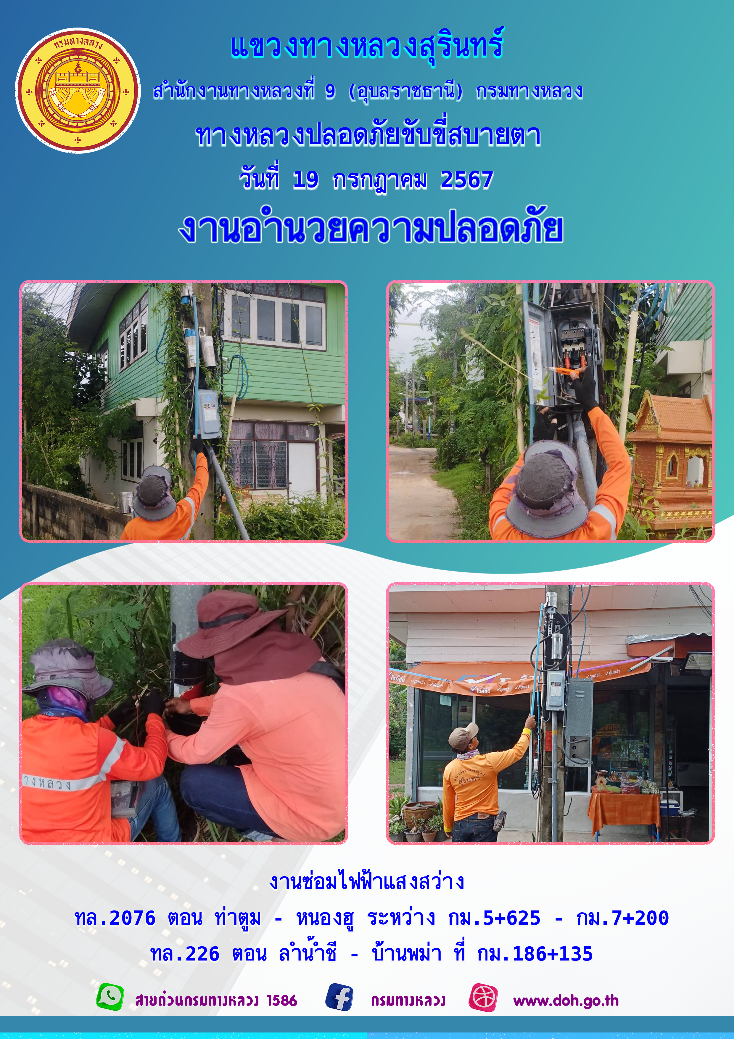 ข้อมูลภาพกิจกรรม : ทางหลวงปลอยภัย ขับขี่สบายตา 19 กรกฎาคม 2567
