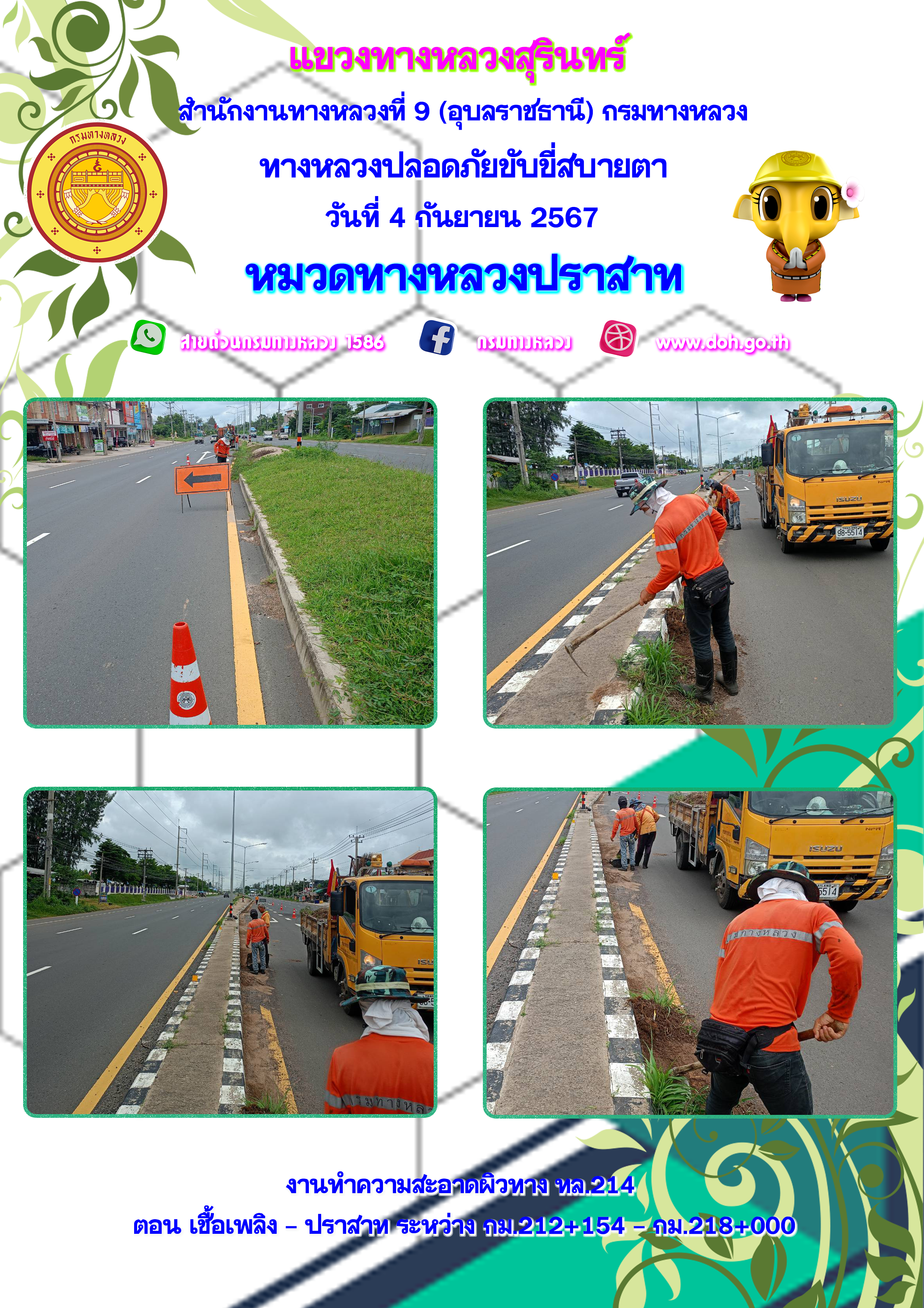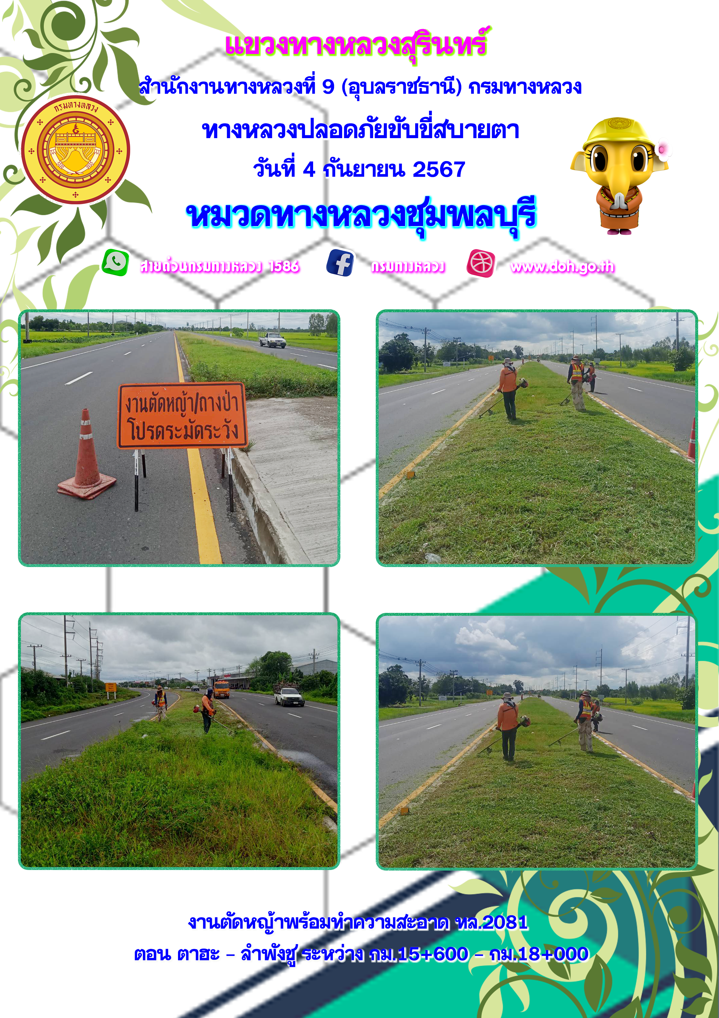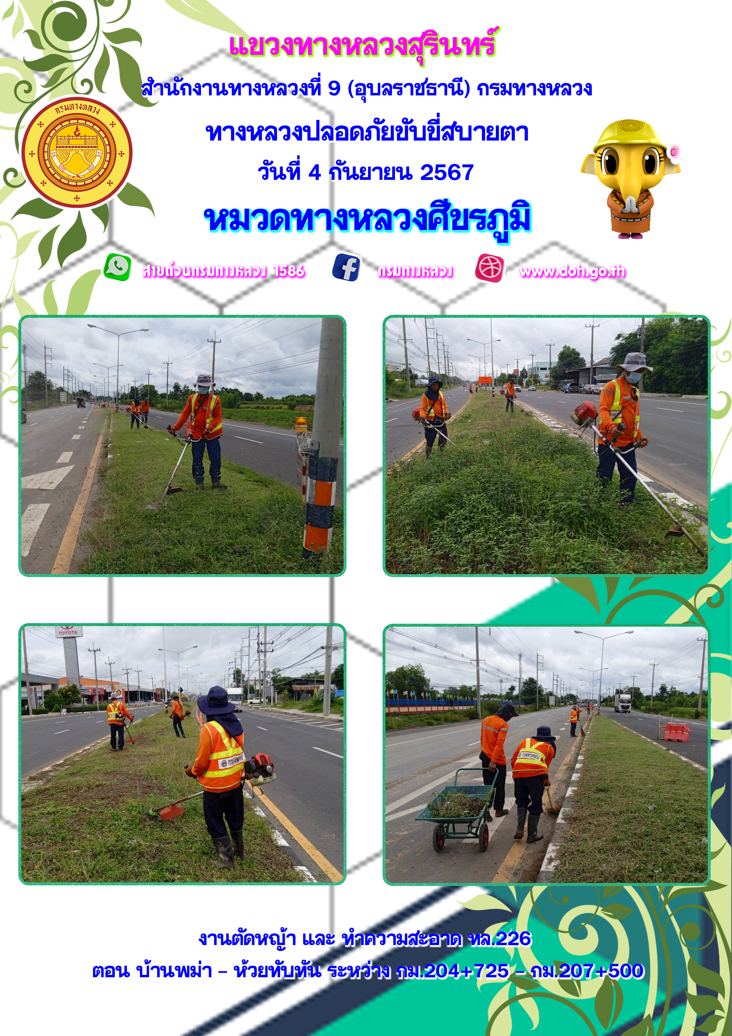 ข้อมูลภาพกิจกรรม : ทางหลวงปลอยภัย ขับขี่สบายตา 4 กันยายน 2567