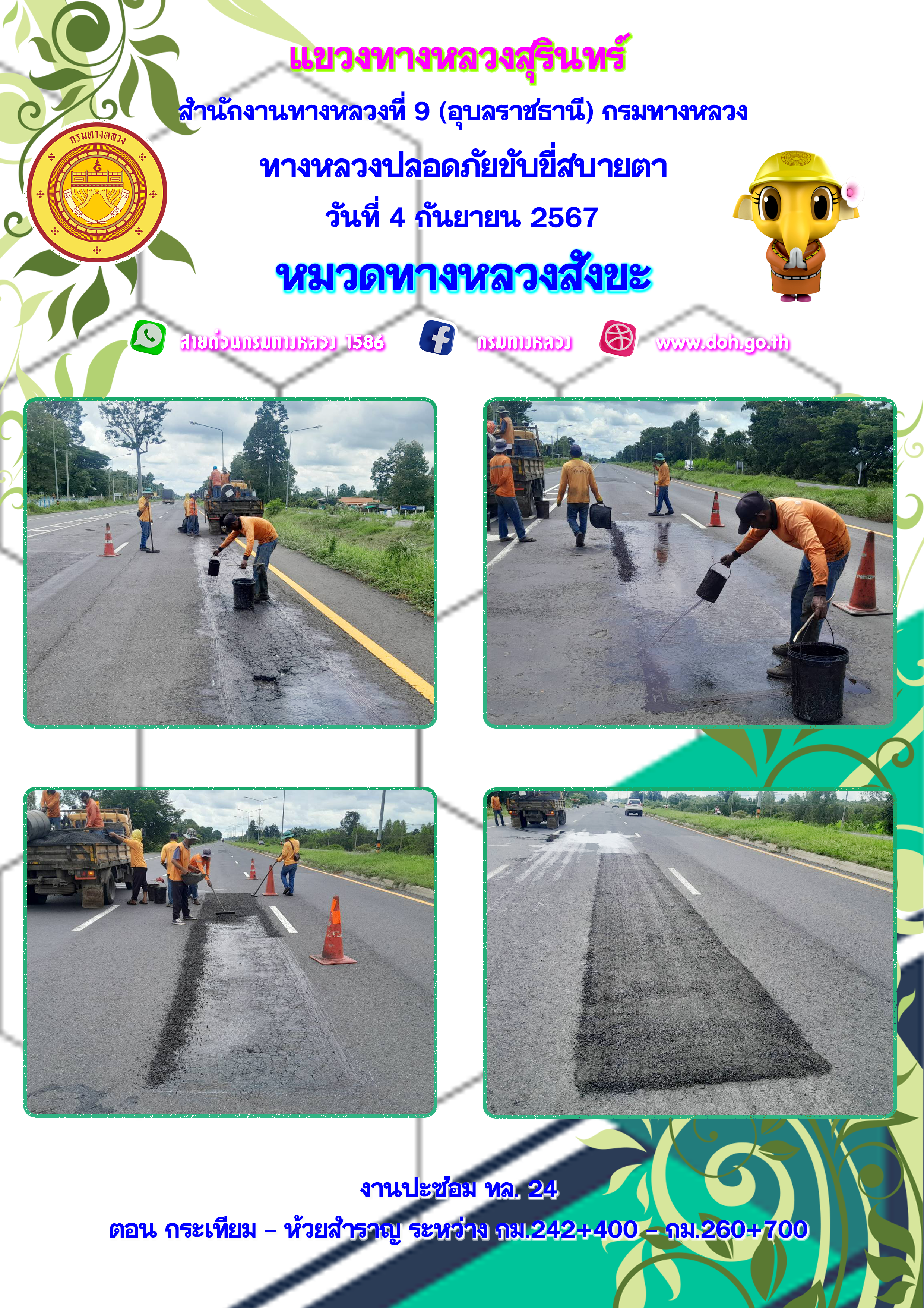 ทางหลวงปลอยภัย ขับขี่สบายตา 4 กันยายน 2567