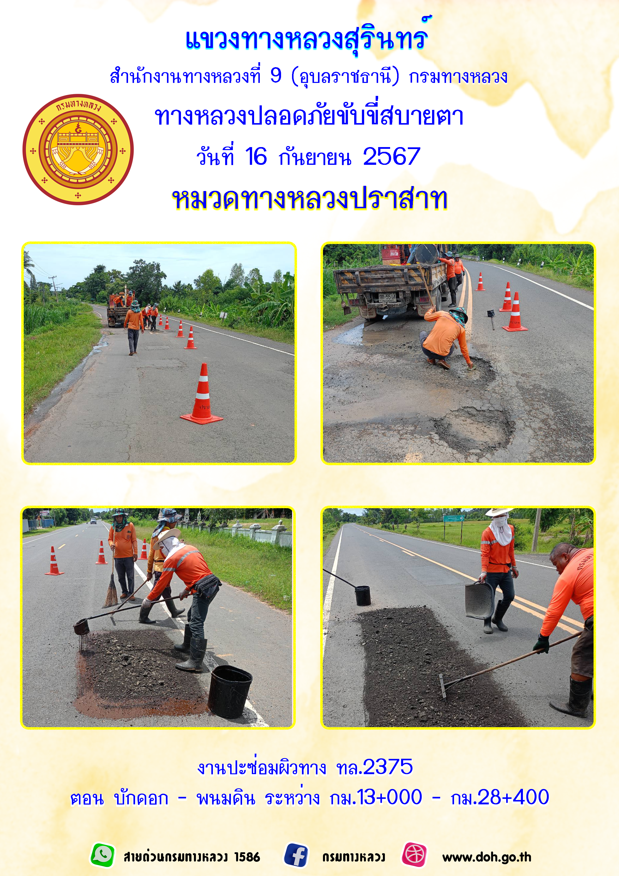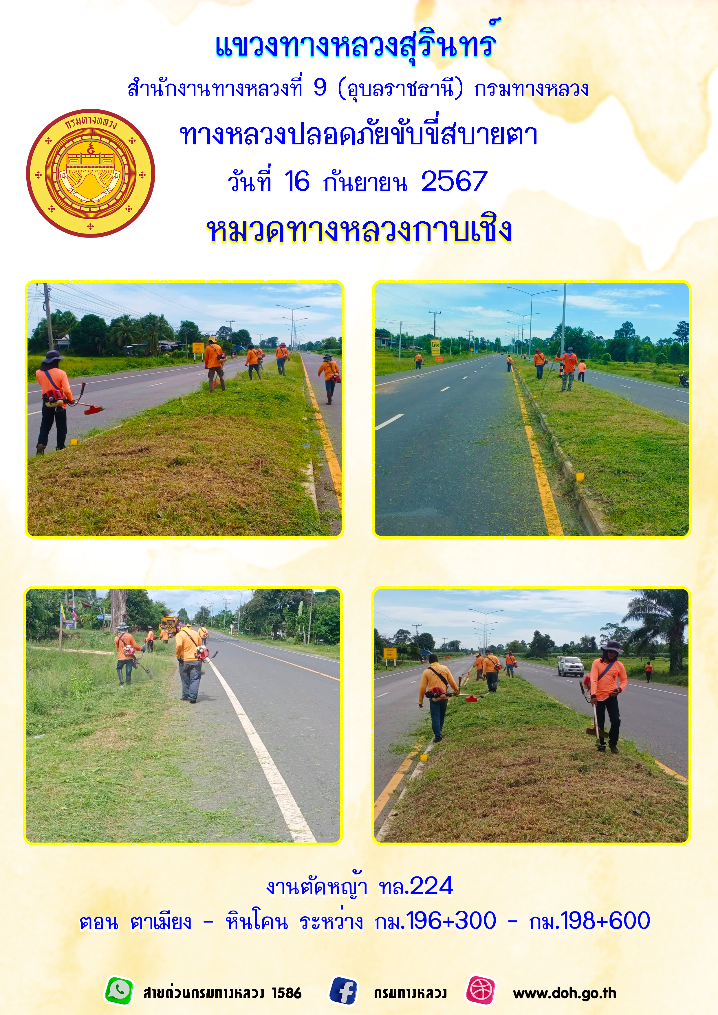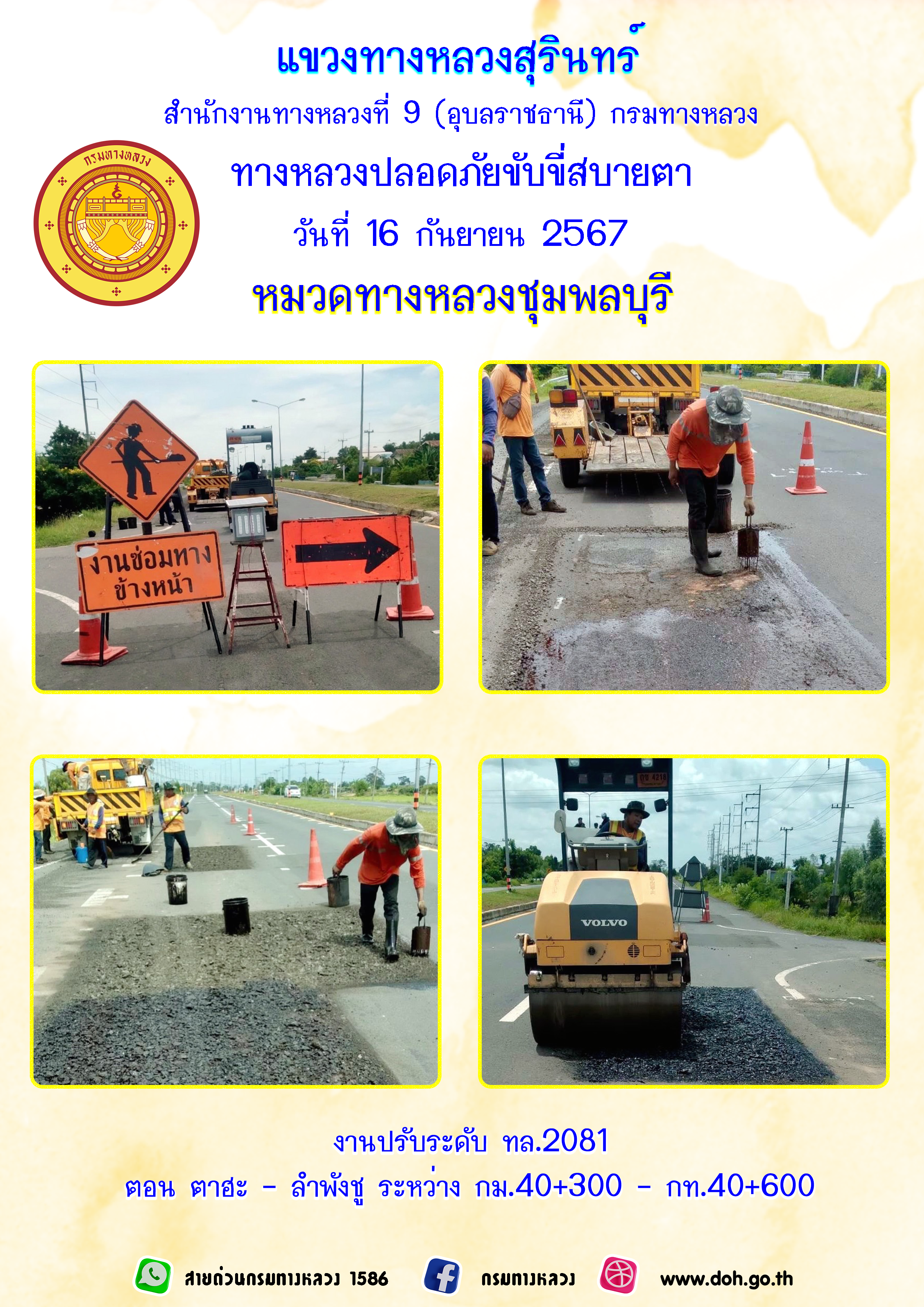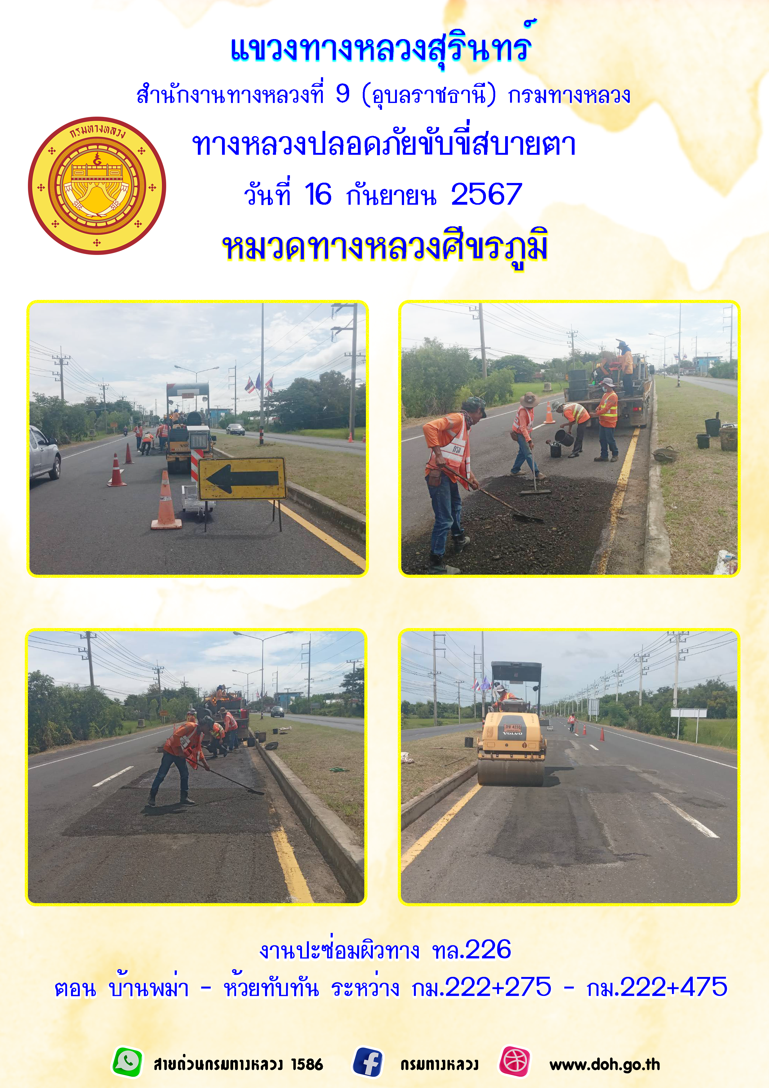 ทางหลวงปลอยภัย ขับขี่สบายตา 16 กันยายน 2567