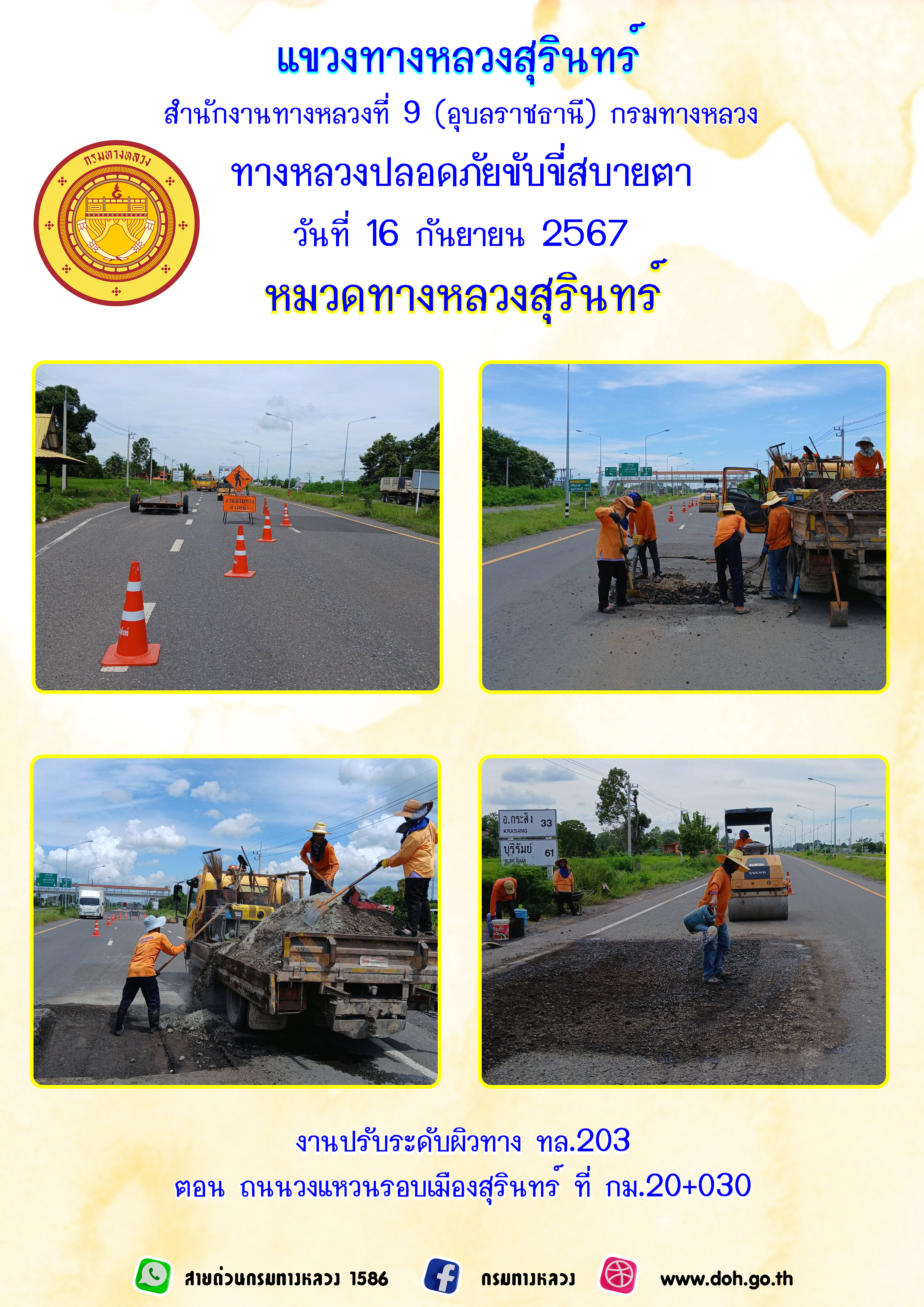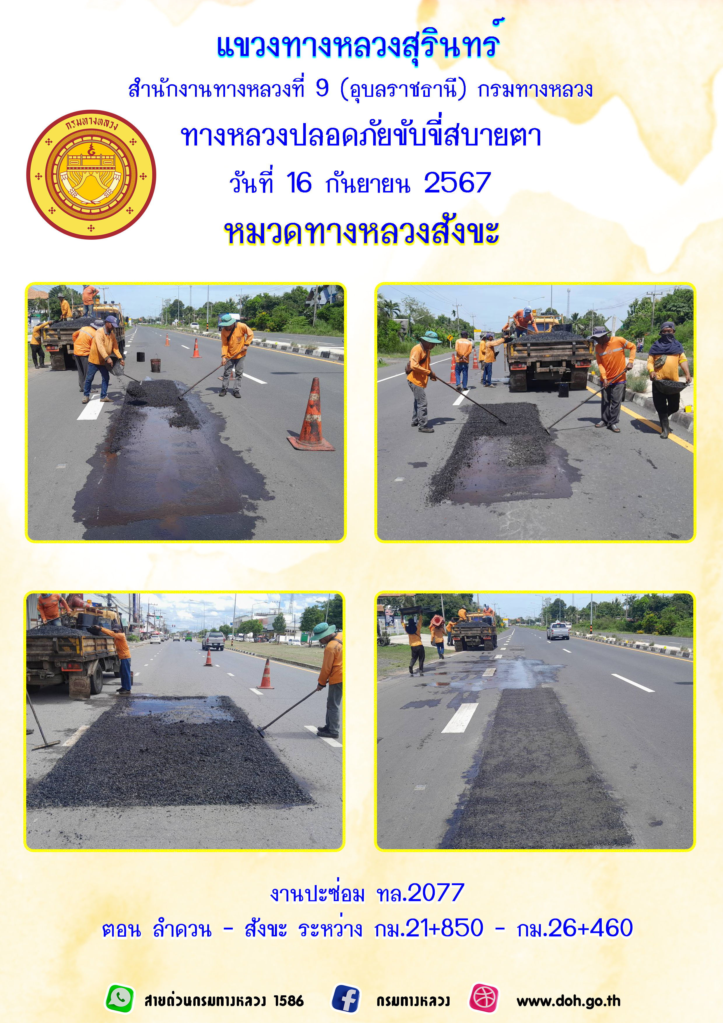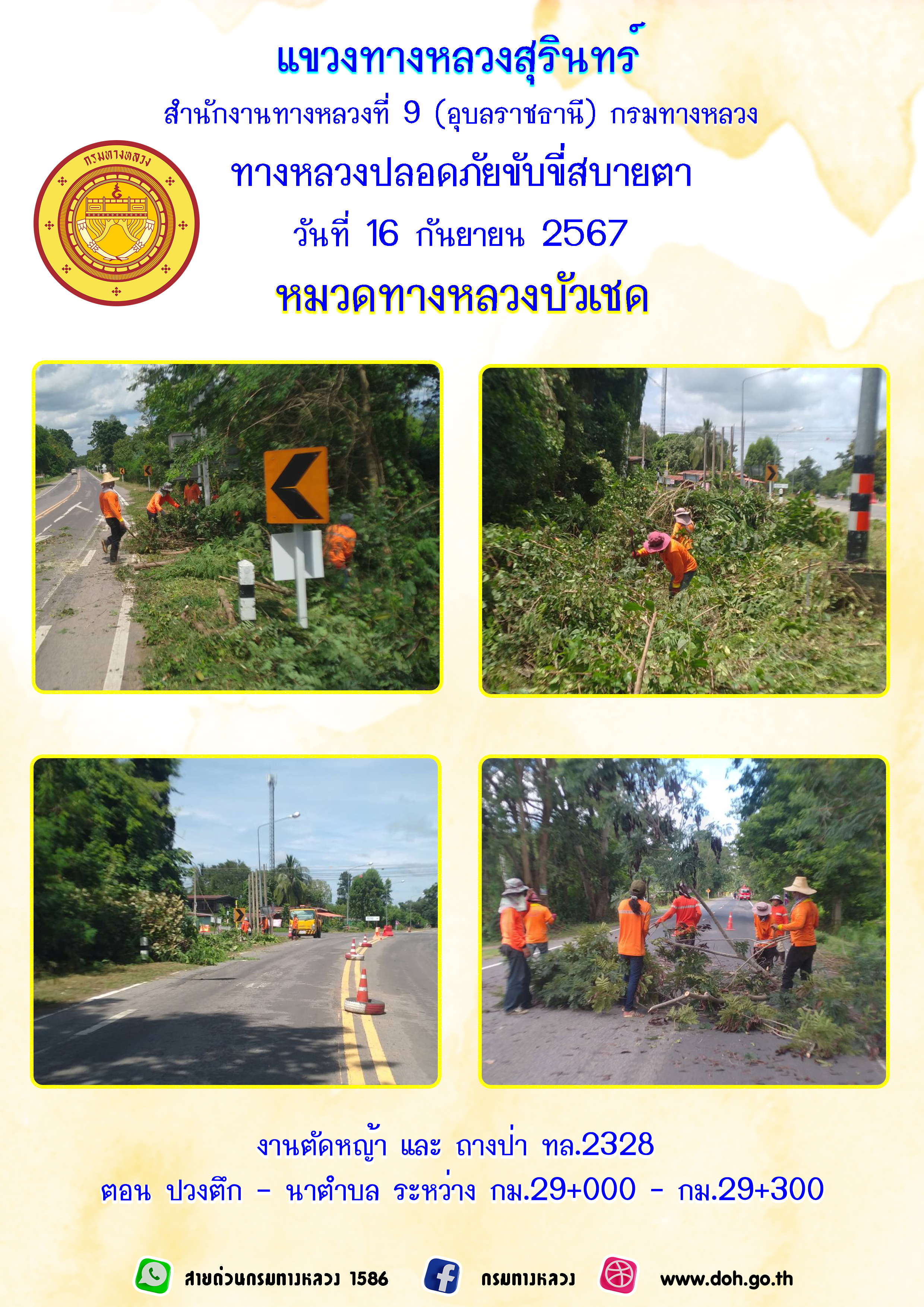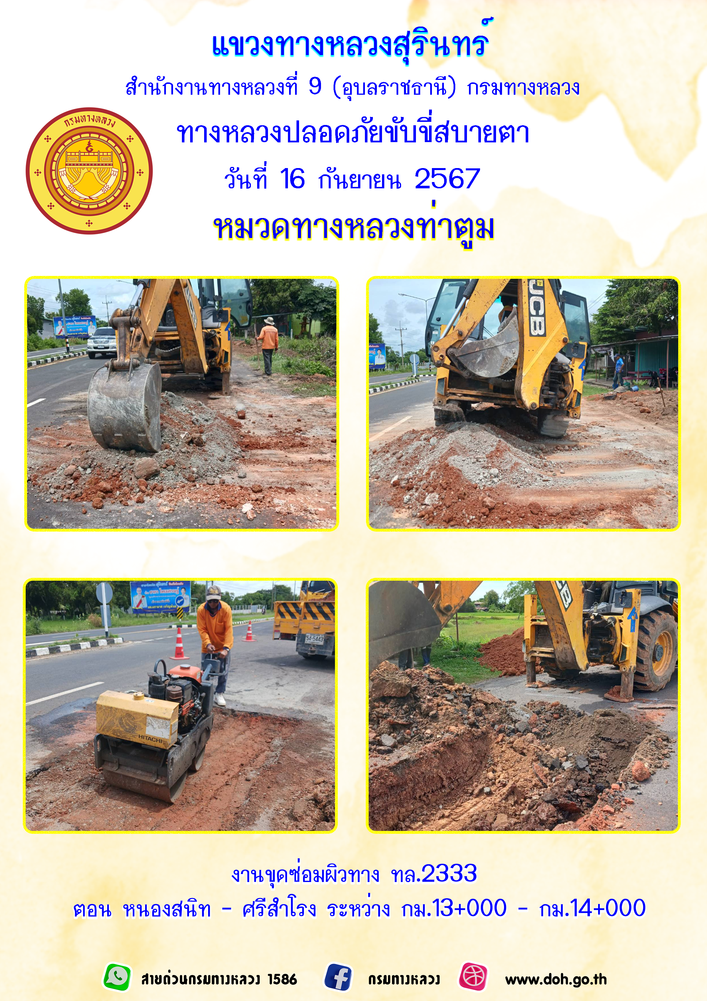 ทางหลวงปลอยภัย ขับขี่สบายตา 16 กันยายน 2567