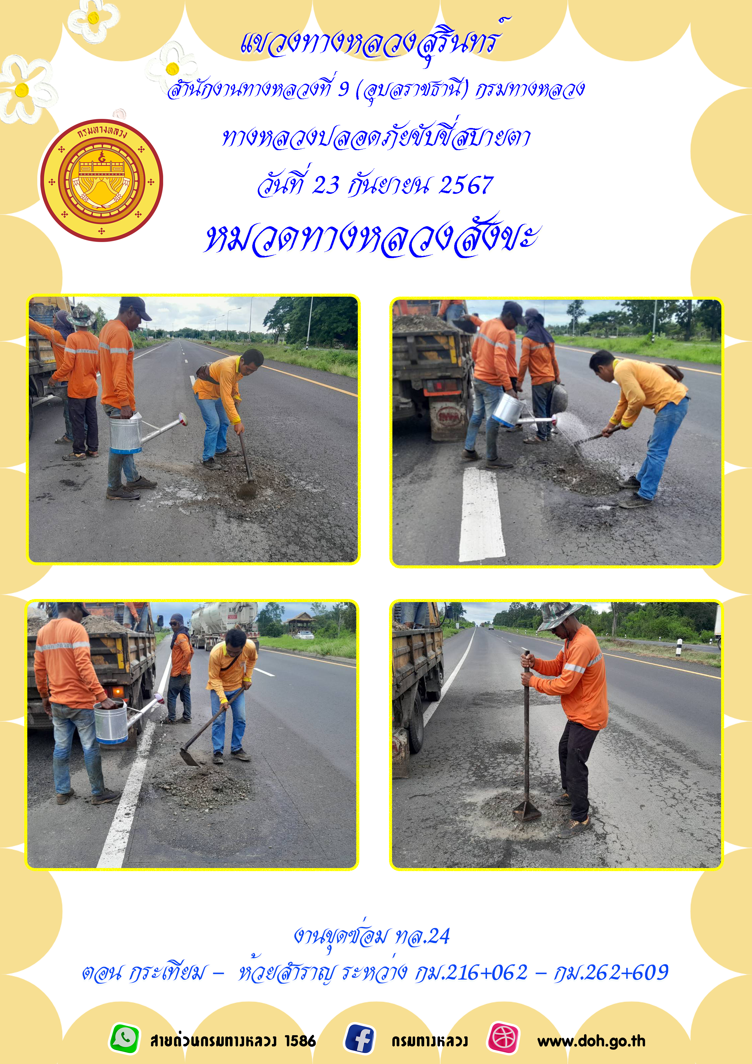 ทางหลวงปลอยภัย ขับขี่สบายตา 23 กันยายน 2567