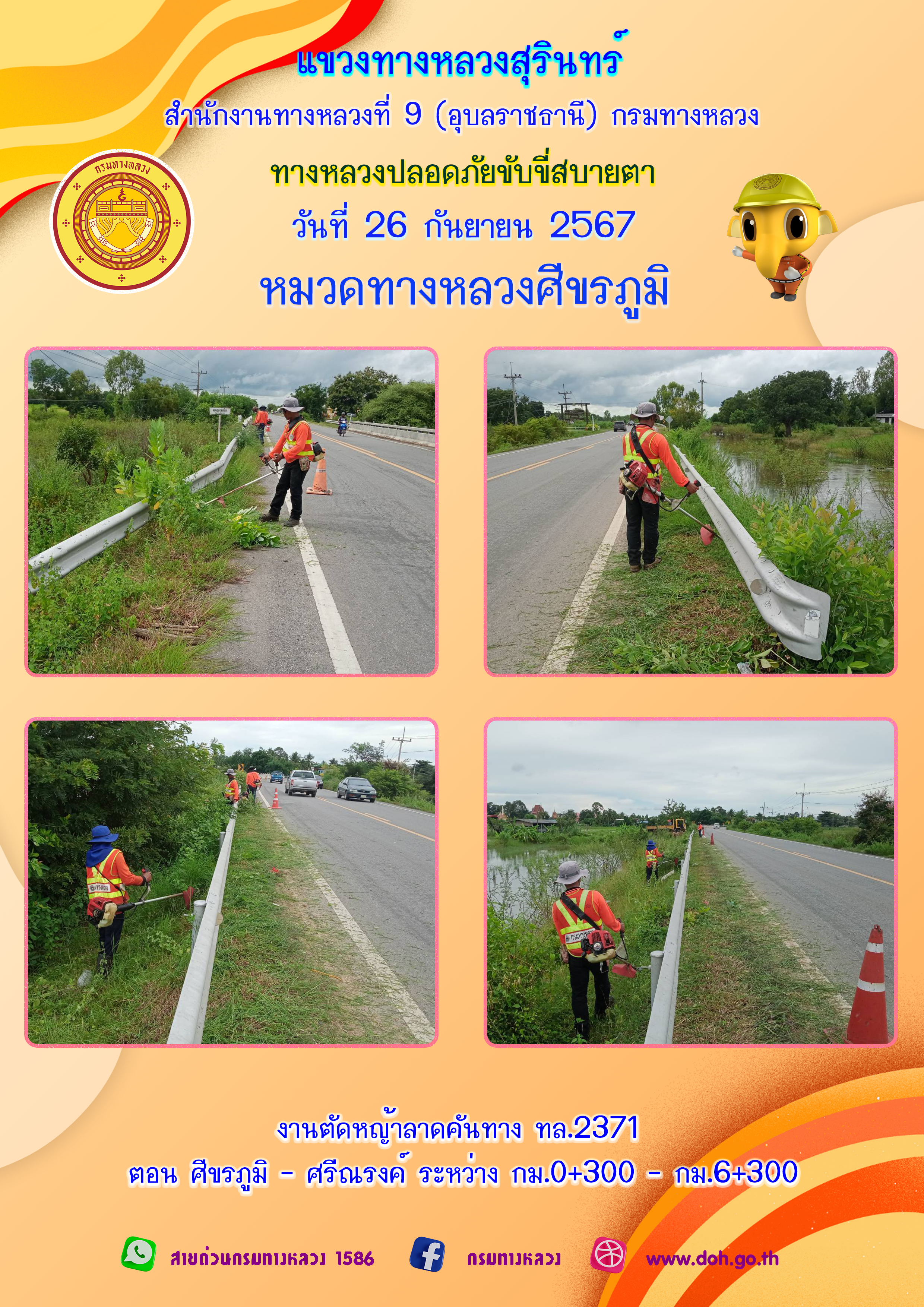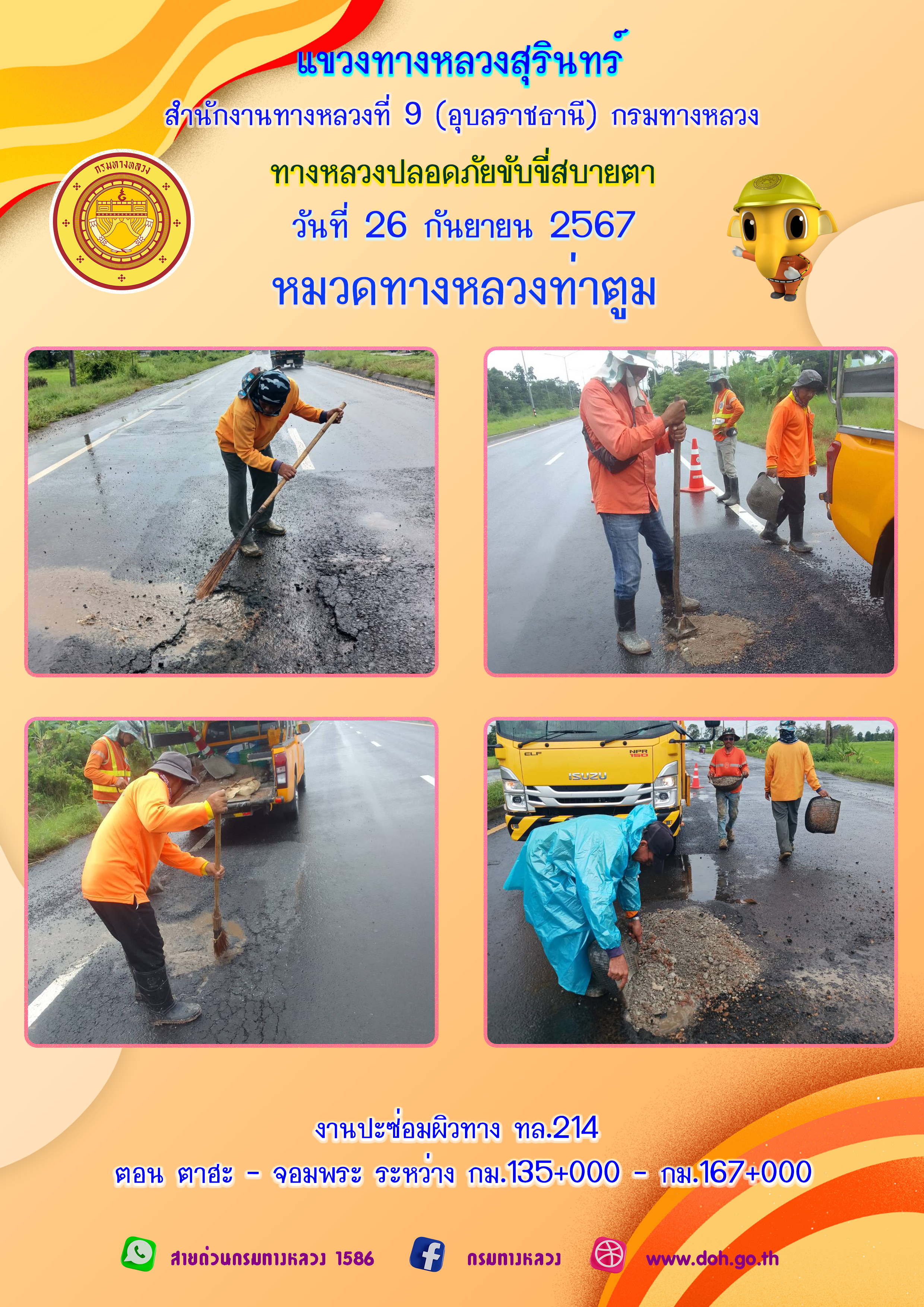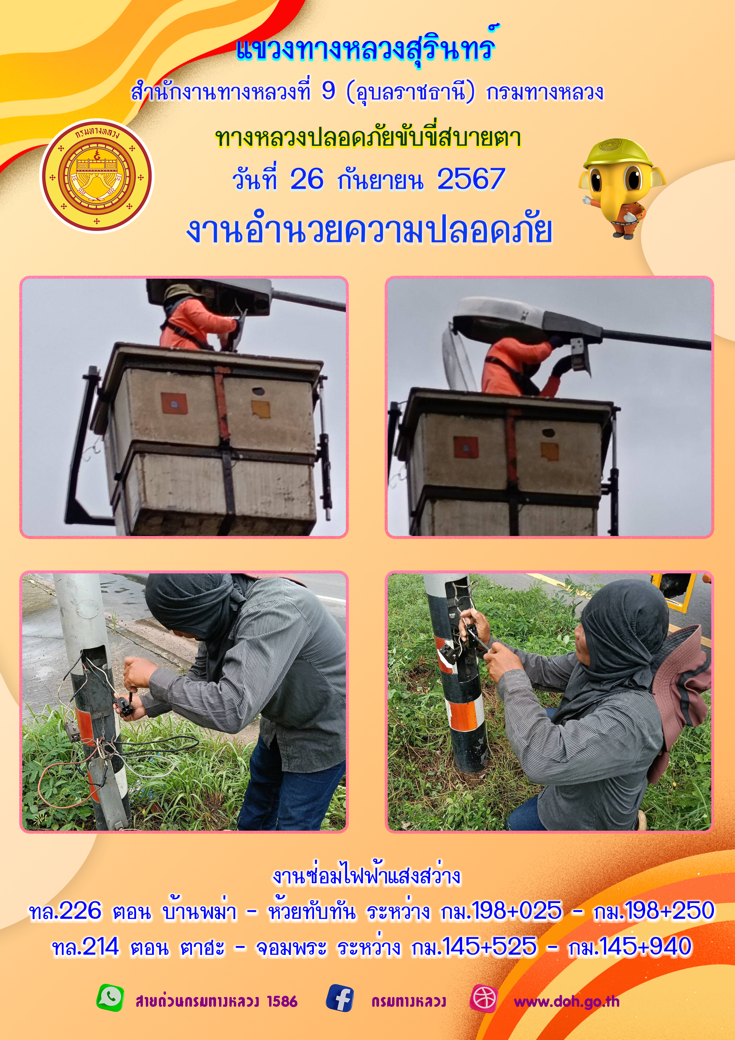 ข้อมูลภาพกิจกรรม : ทางหลวงปลอยภัย ขับขี่สบายตา 26 กันยายน 2567