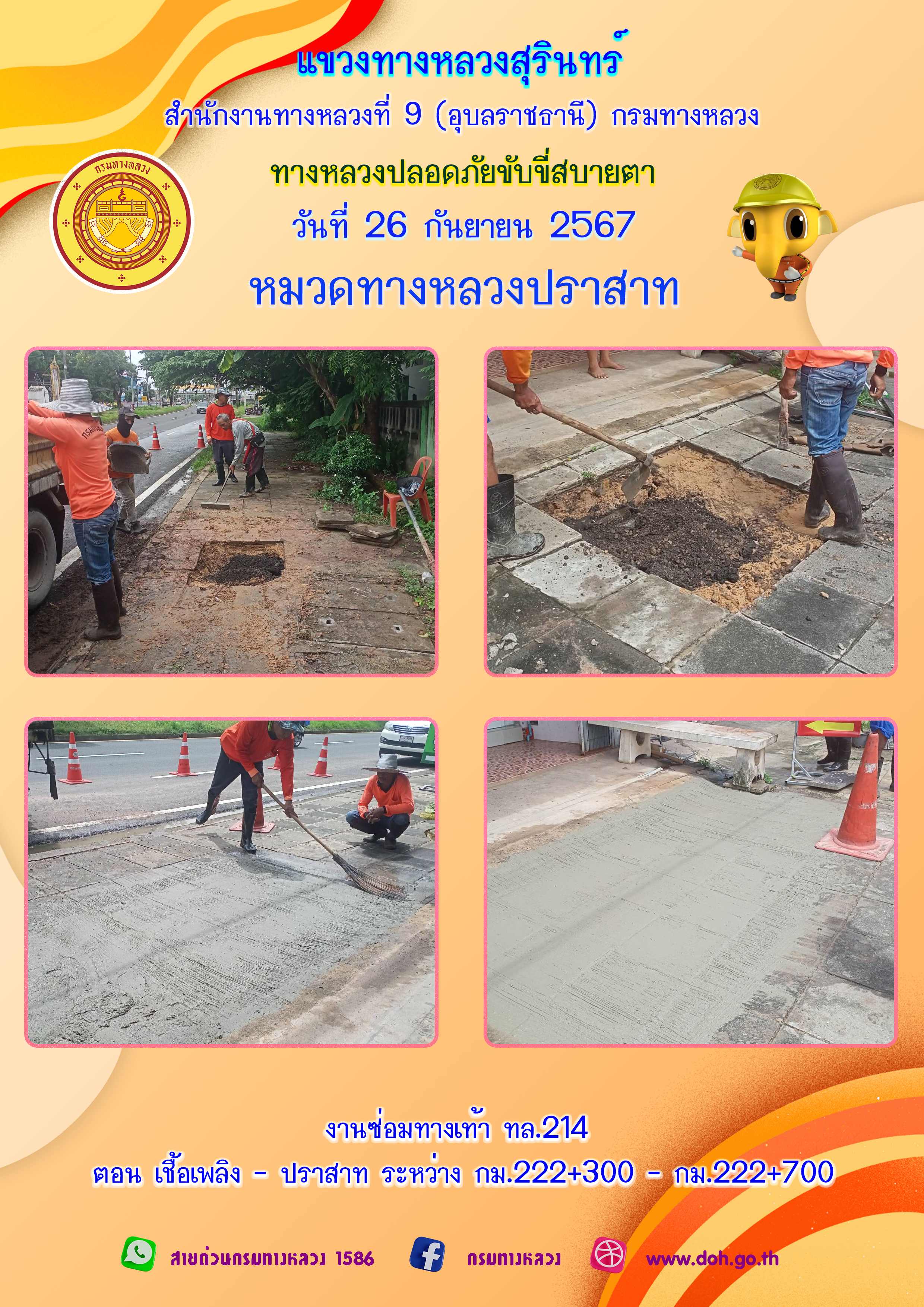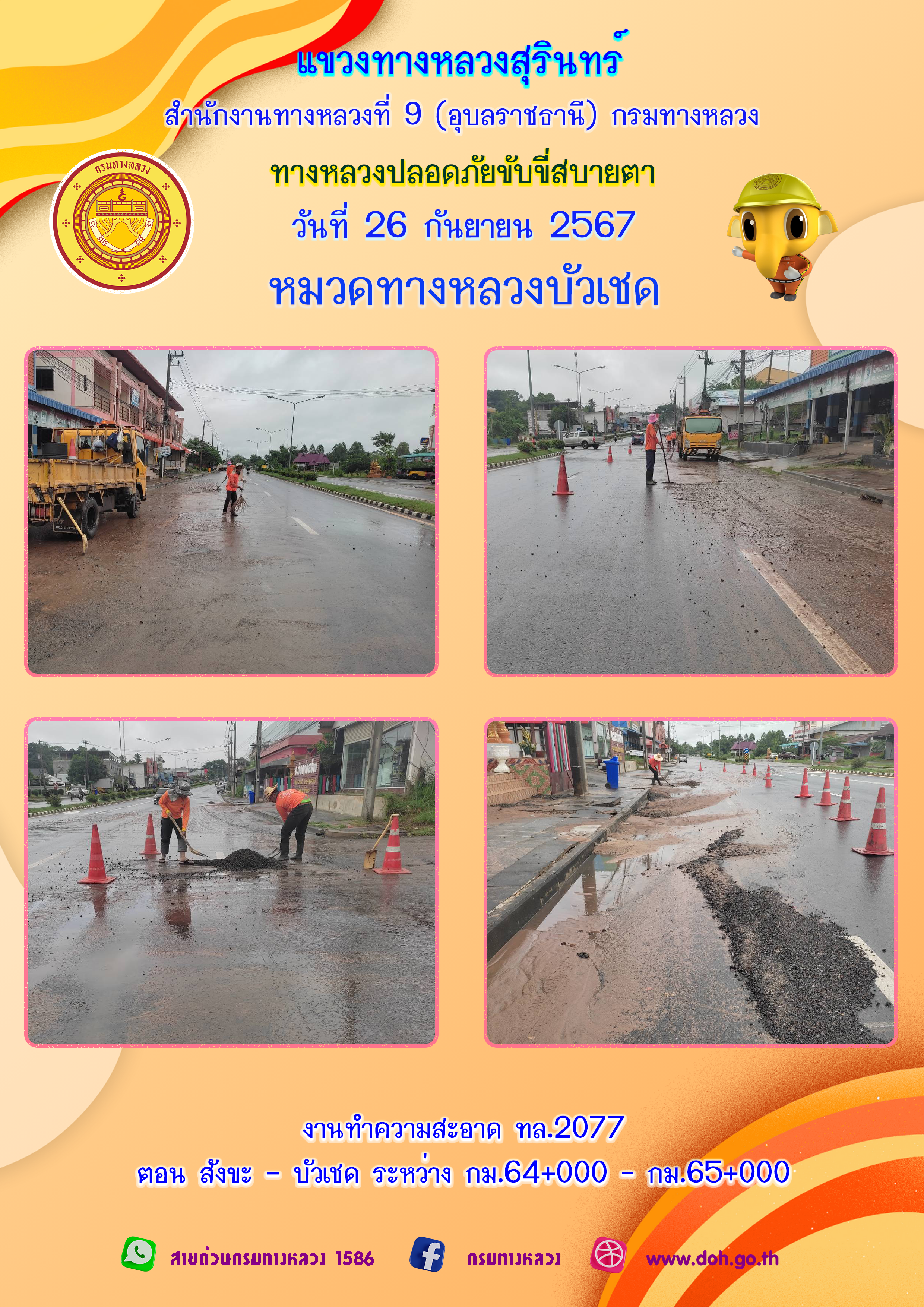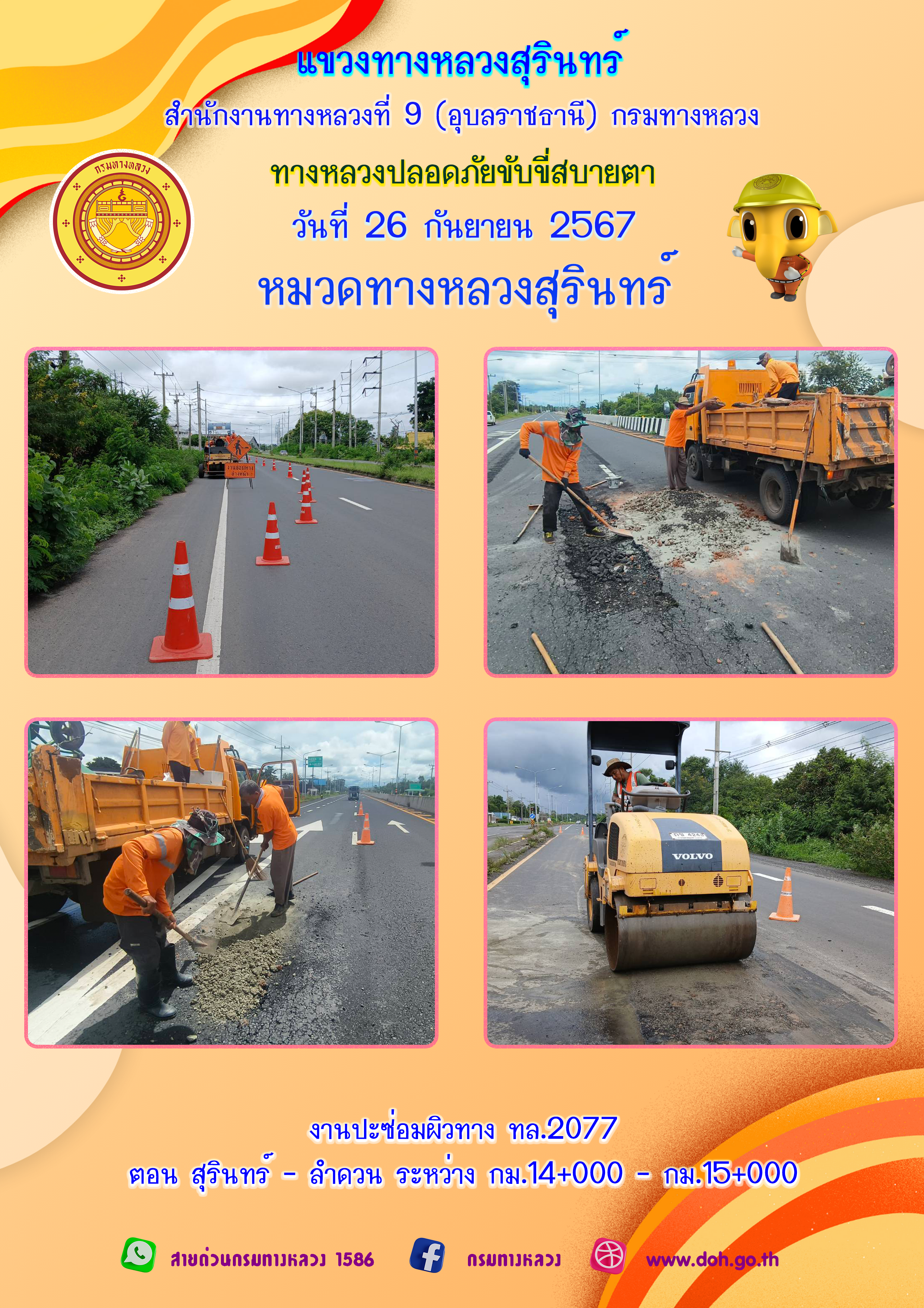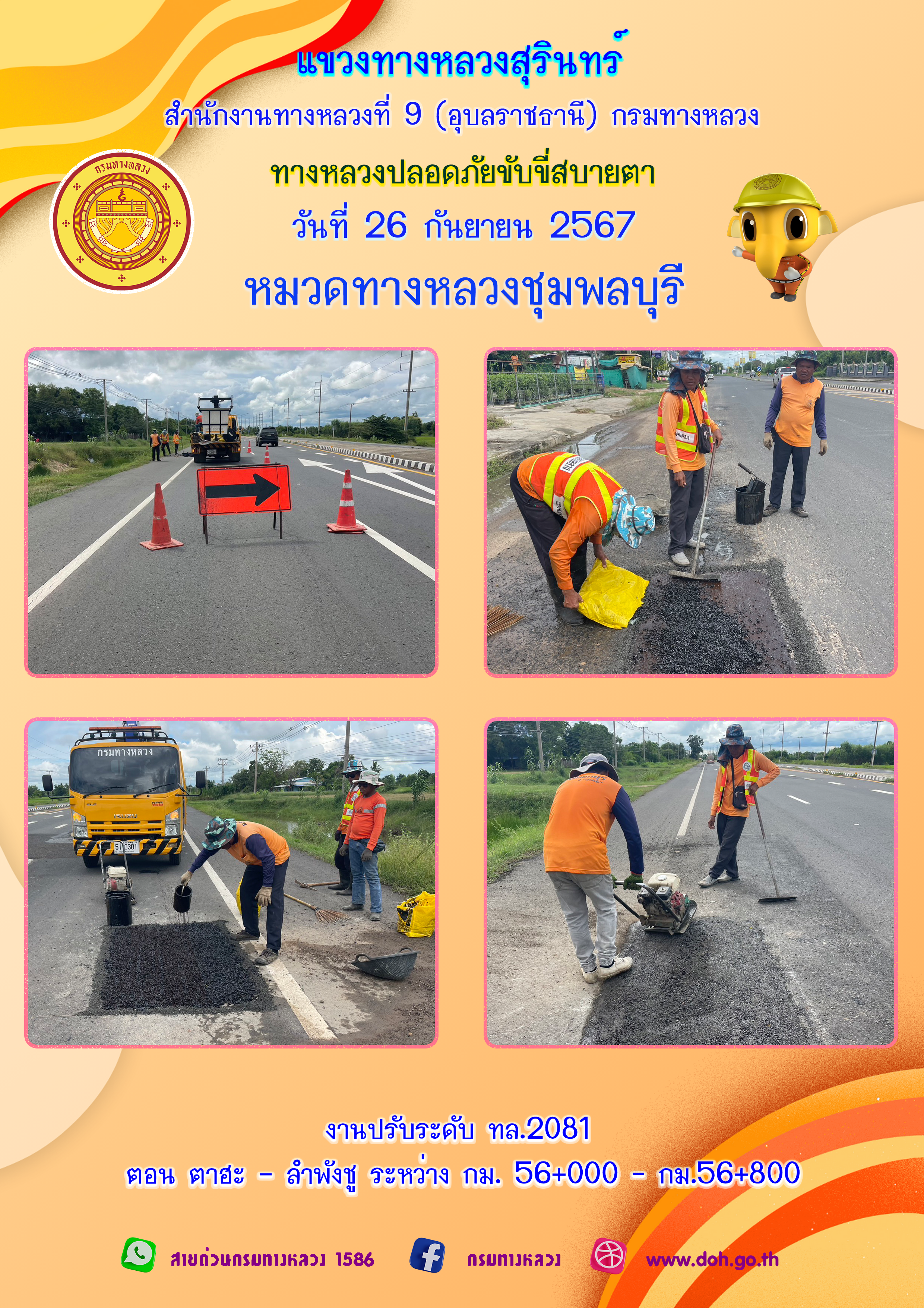 ข้อมูลภาพกิจกรรม : ทางหลวงปลอยภัย ขับขี่สบายตา 26 กันยายน 2567