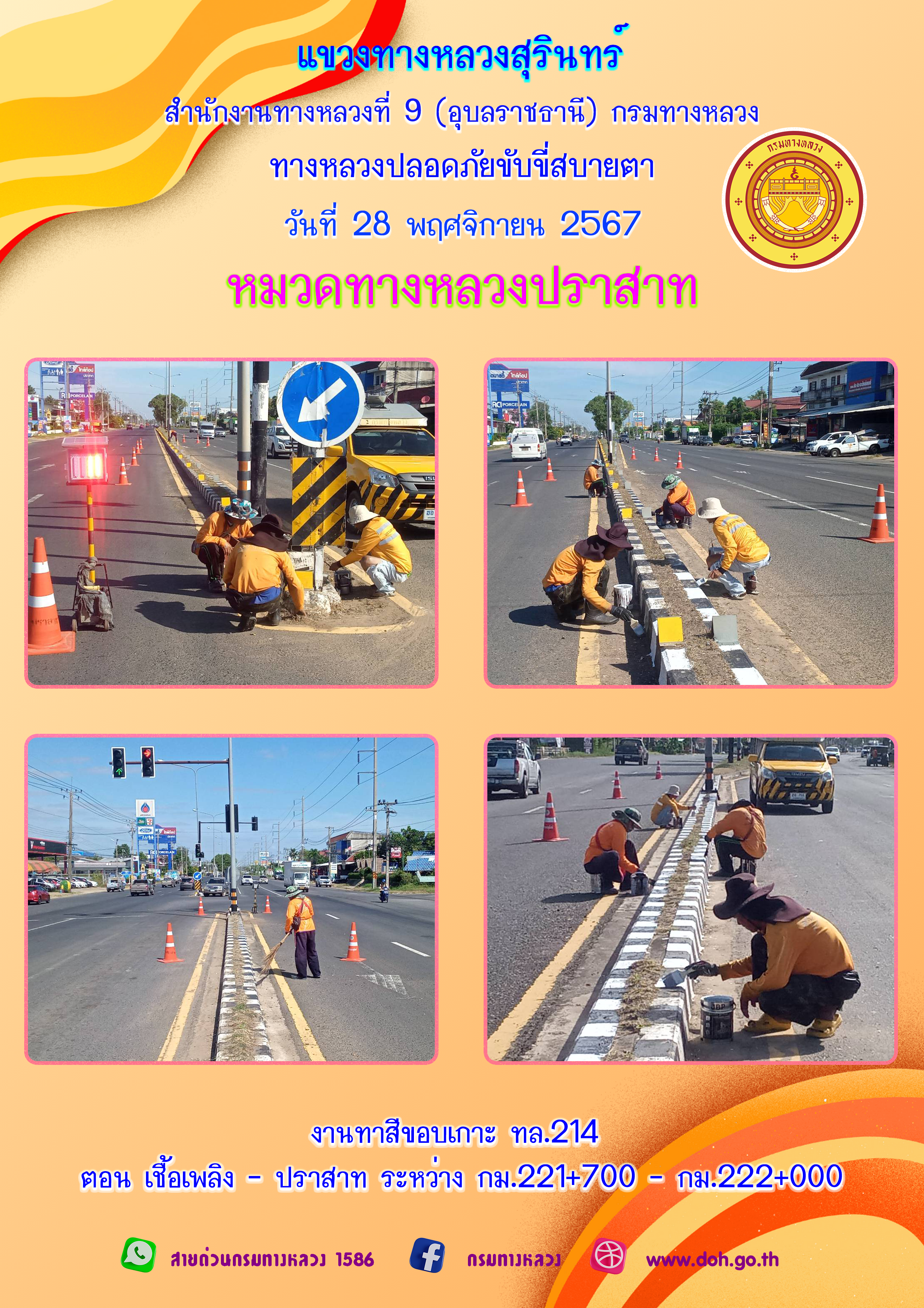 ข้อมูลภาพกิจกรรม : ทางหลวงปลอยภัย ขับขี่สบายตา 28 พฤศจิกายน 2567
