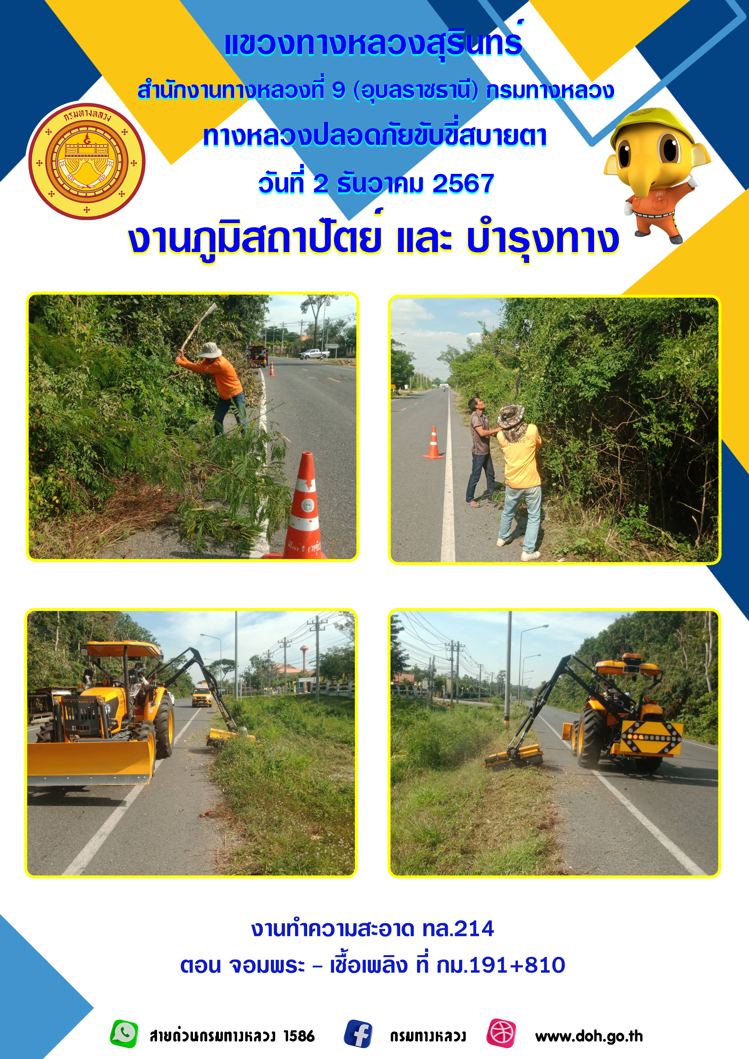 วิสัยทัศน์ : พัฒนาทางหลวงให้ได้มาตรฐาน มุ่งเน้นงานบริการประชาชน สร้างผลงานจากกิจกรรม 5 ส.