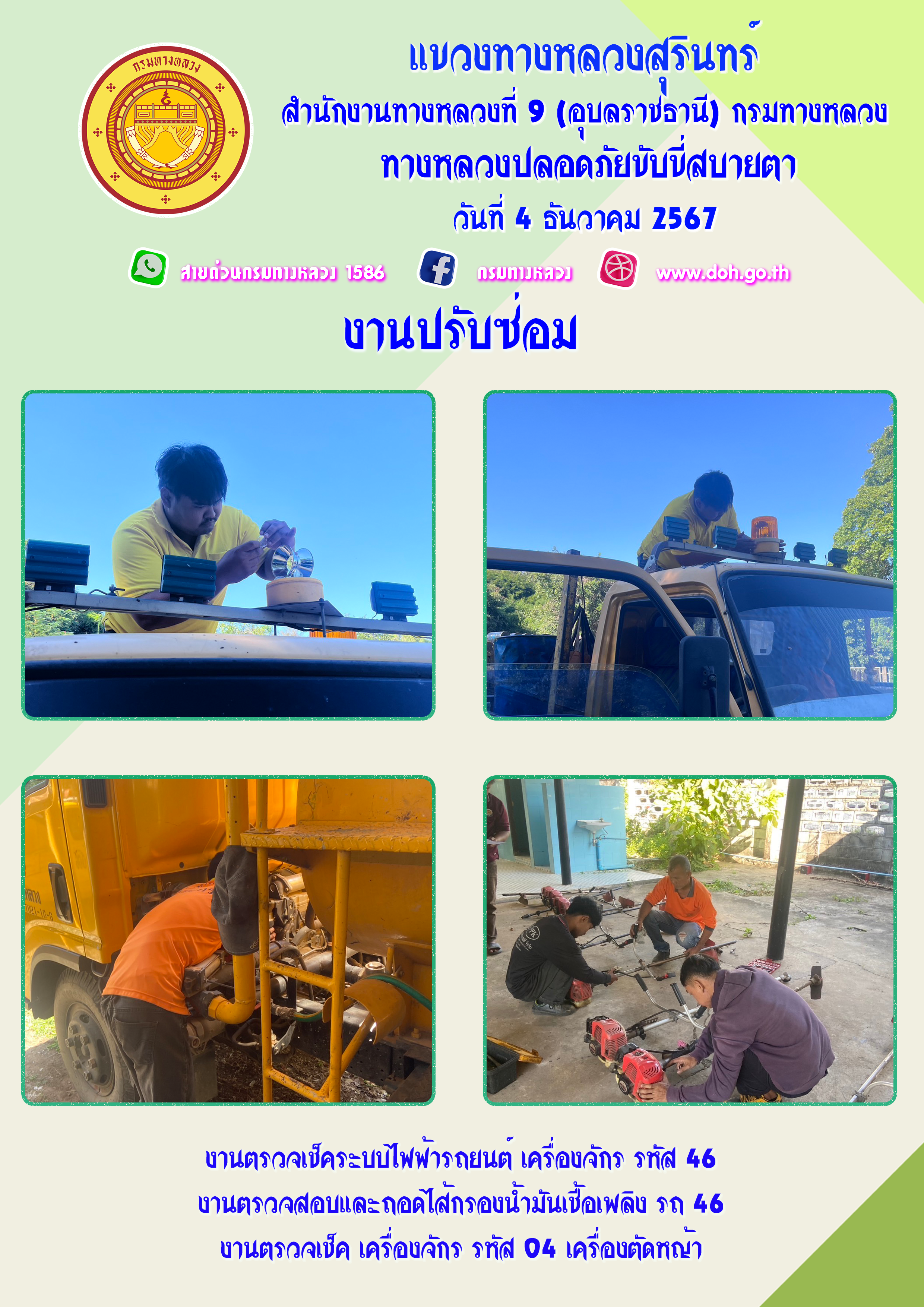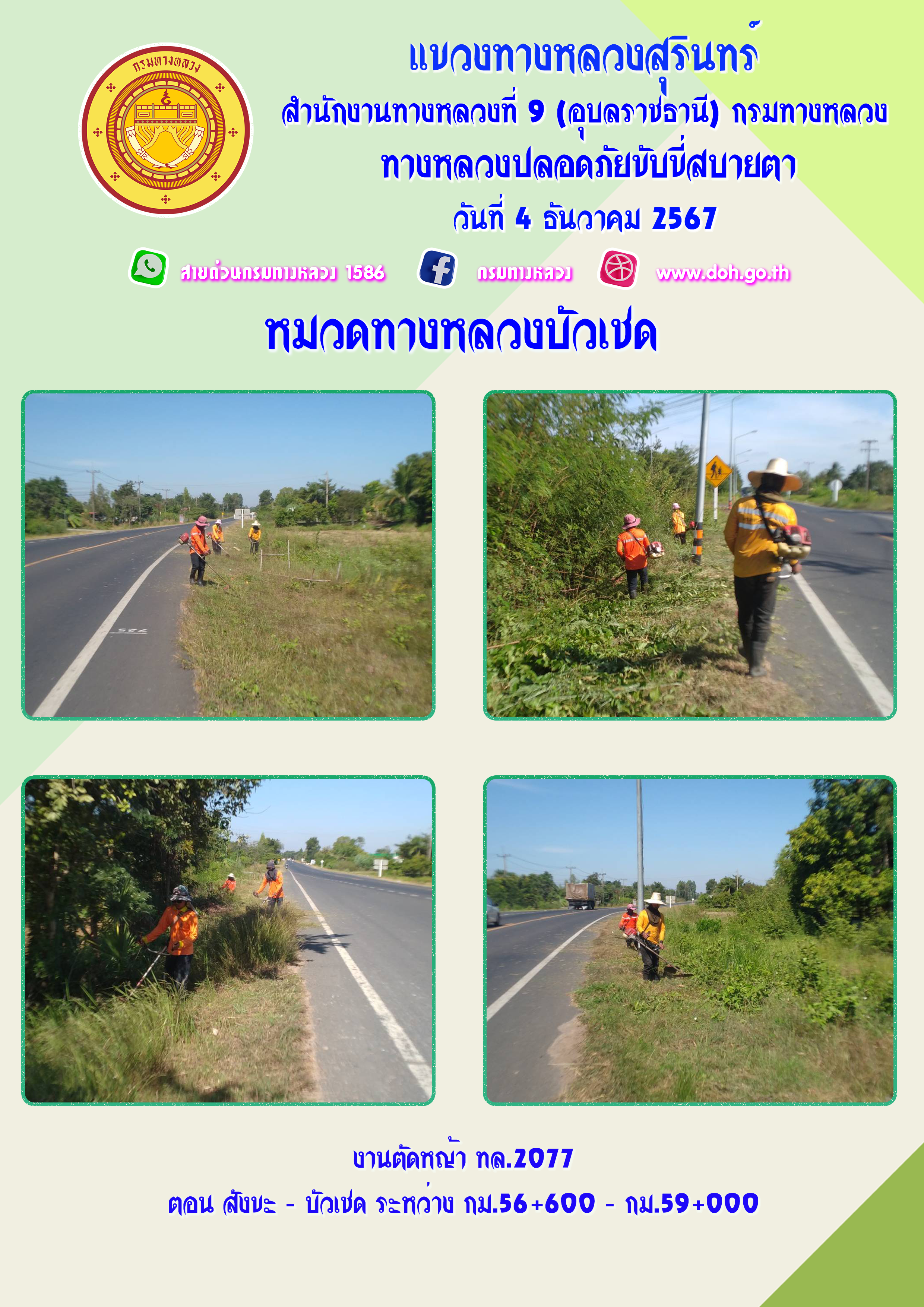 ข้อมูลภาพกิจกรรม : ทางหลวงปลอยภัย ขับขี่สบายตา 4 ธันวาคม 2567