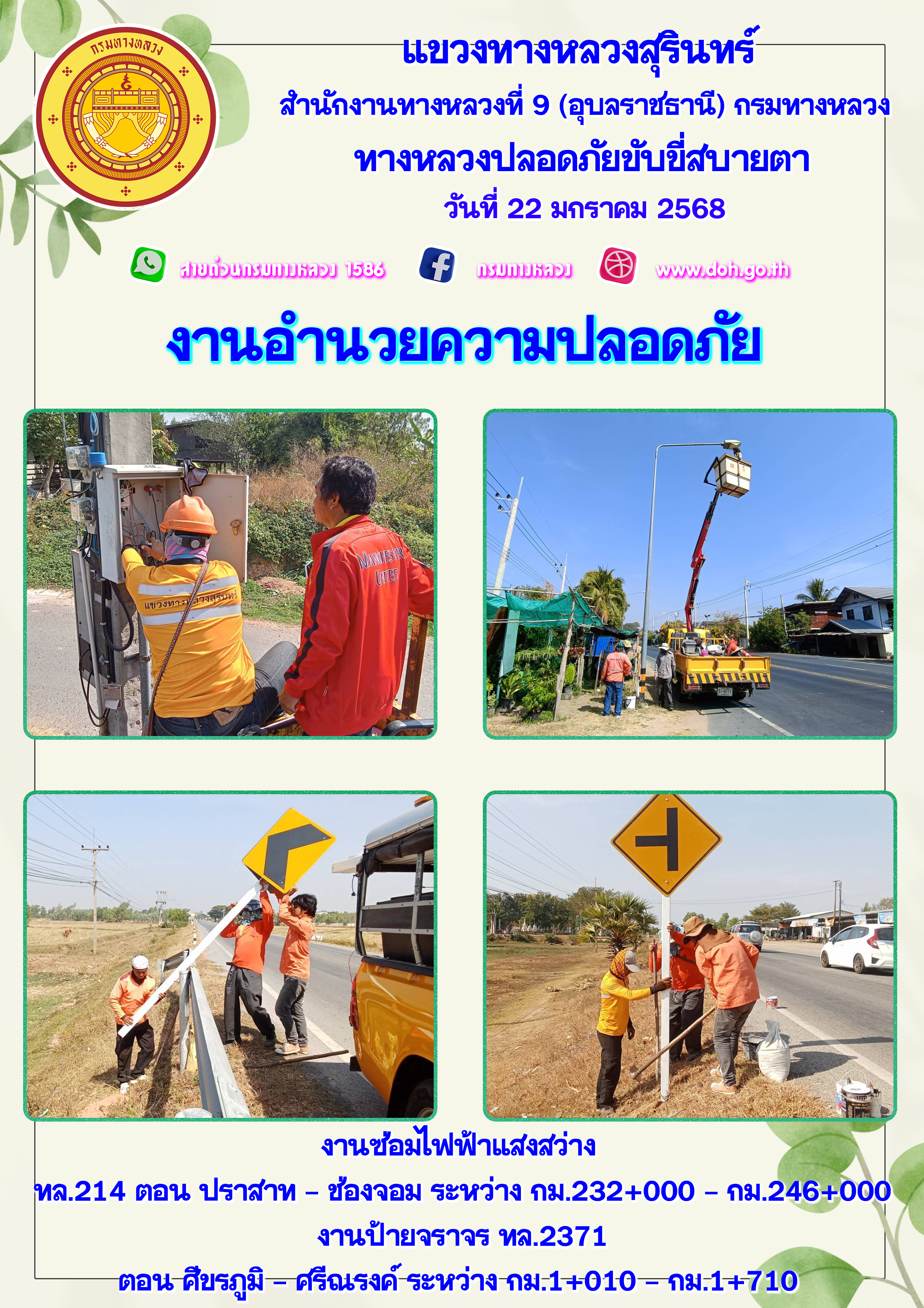 ข้อมูลภาพกิจกรรม : ทางหลวงปลอยภัย ขับขี่สบายตา 22 มกราคม 2568