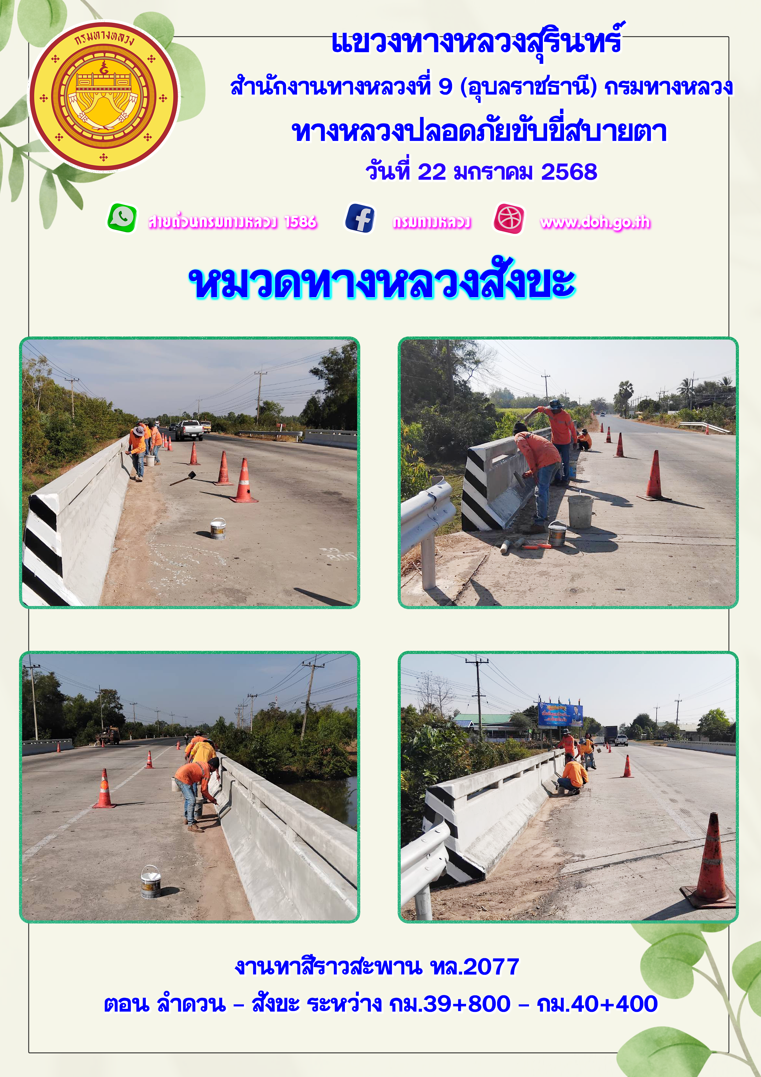 ทางหลวงปลอยภัย ขับขี่สบายตา 22 มกราคม 2568