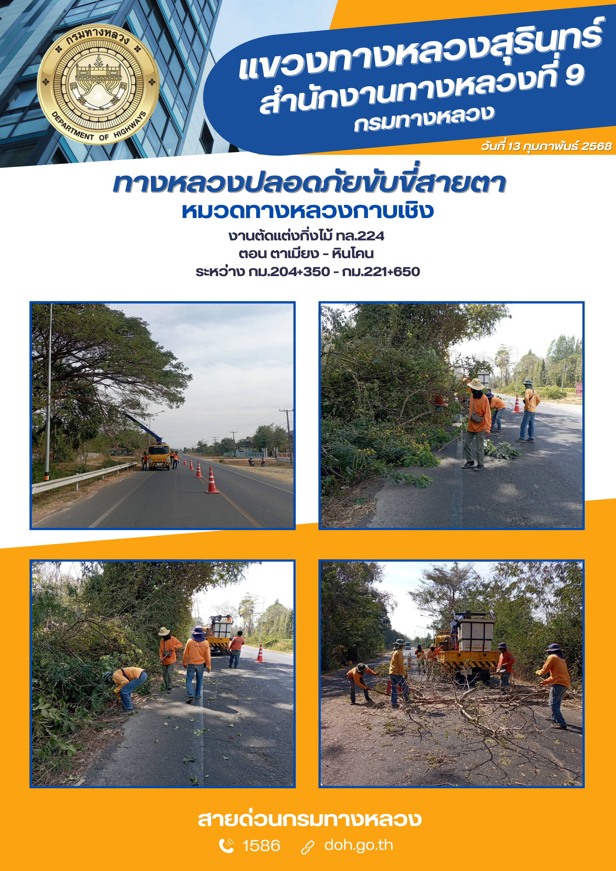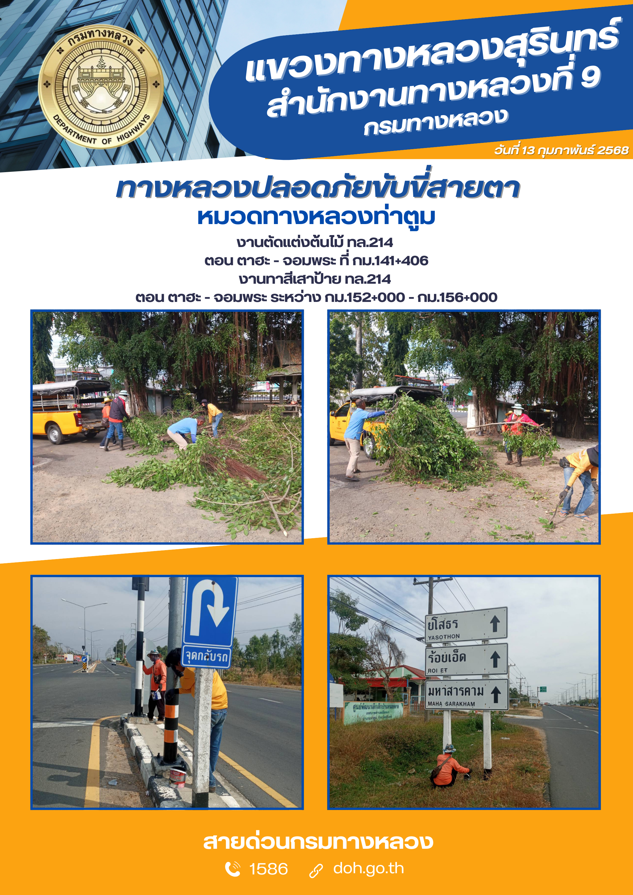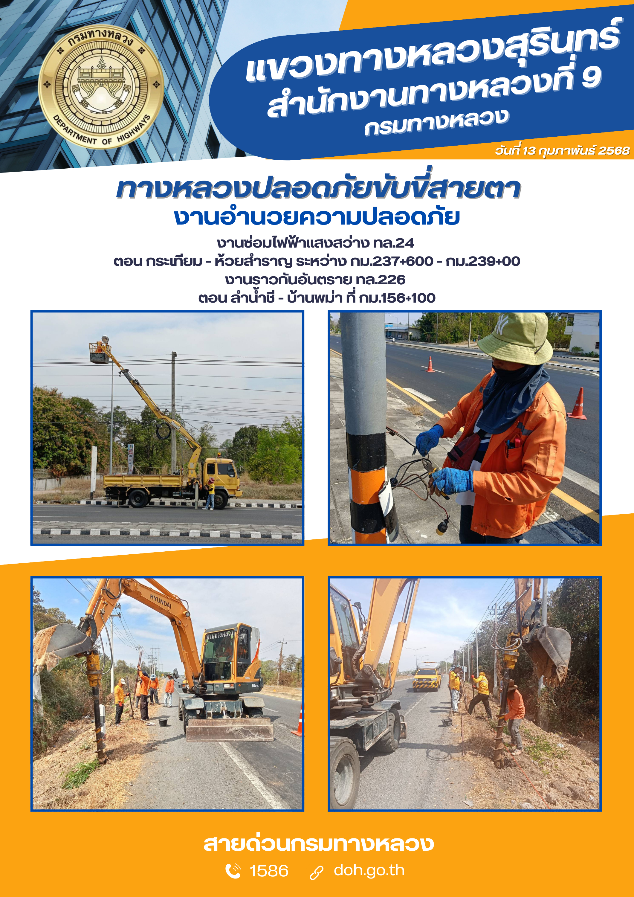 ข้อมูลภาพกิจกรรม : ทางหลวงปลอยภัย ขับขี่สบายตา 13 กุมภาพันธ์ 2568