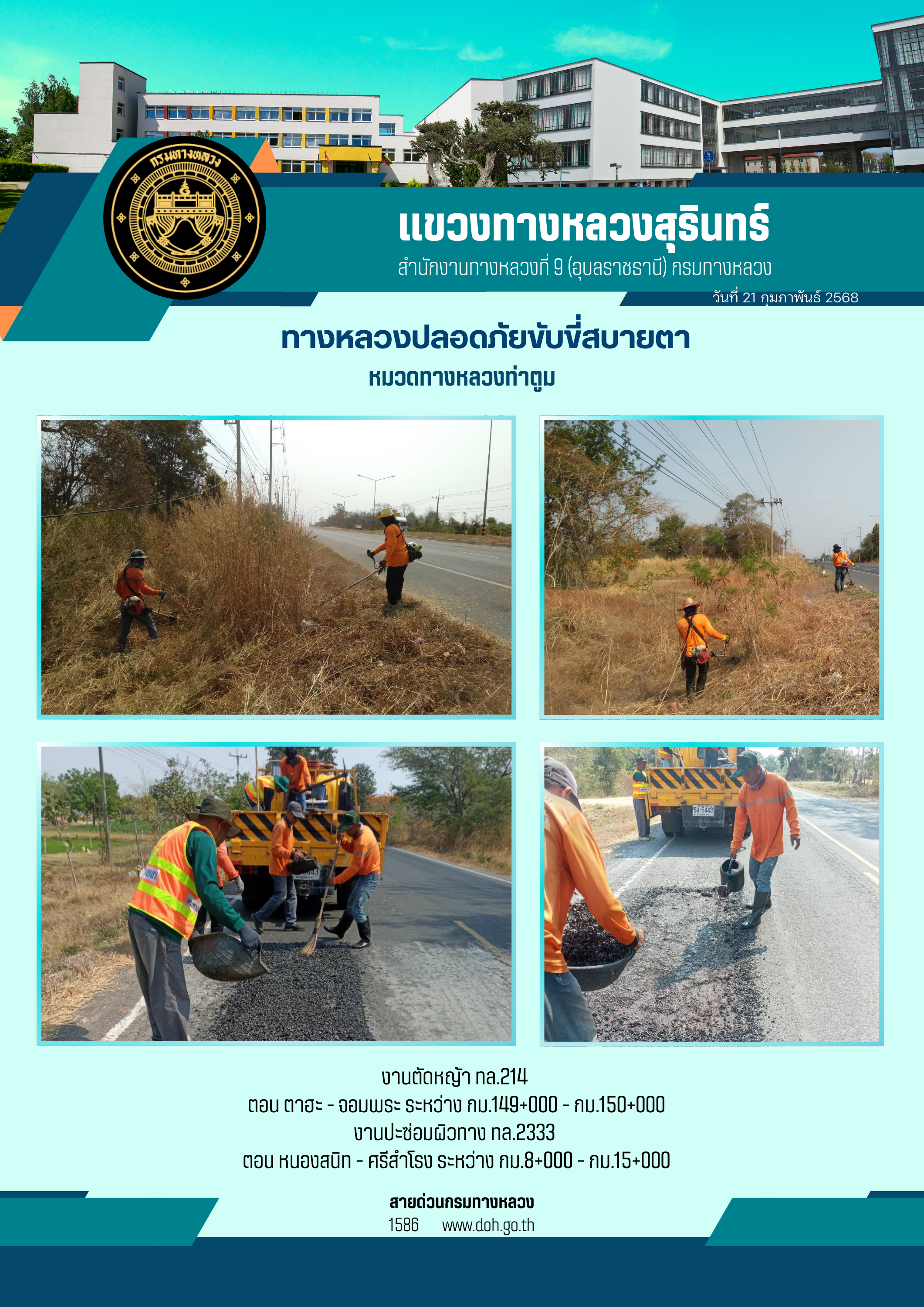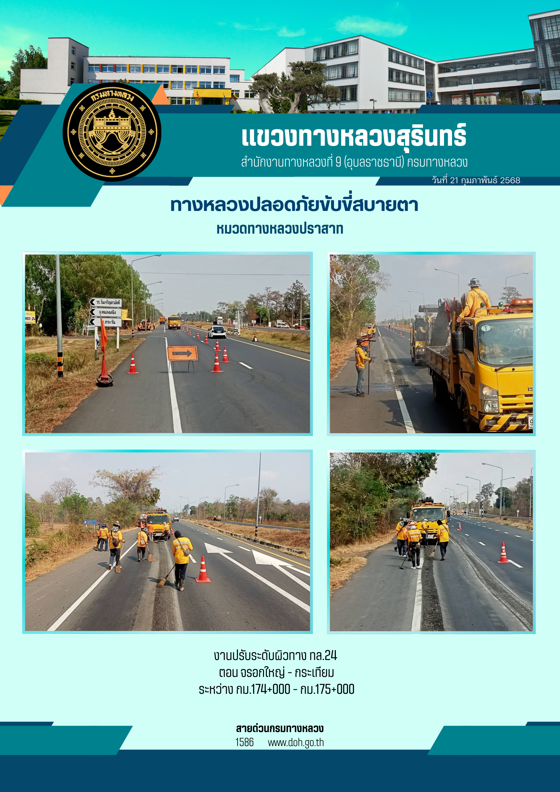 ข้อมูลภาพกิจกรรม : ทางหลวงปลอยภัย ขับขี่สบายตา 21 กุมภาพันธ์ 2568