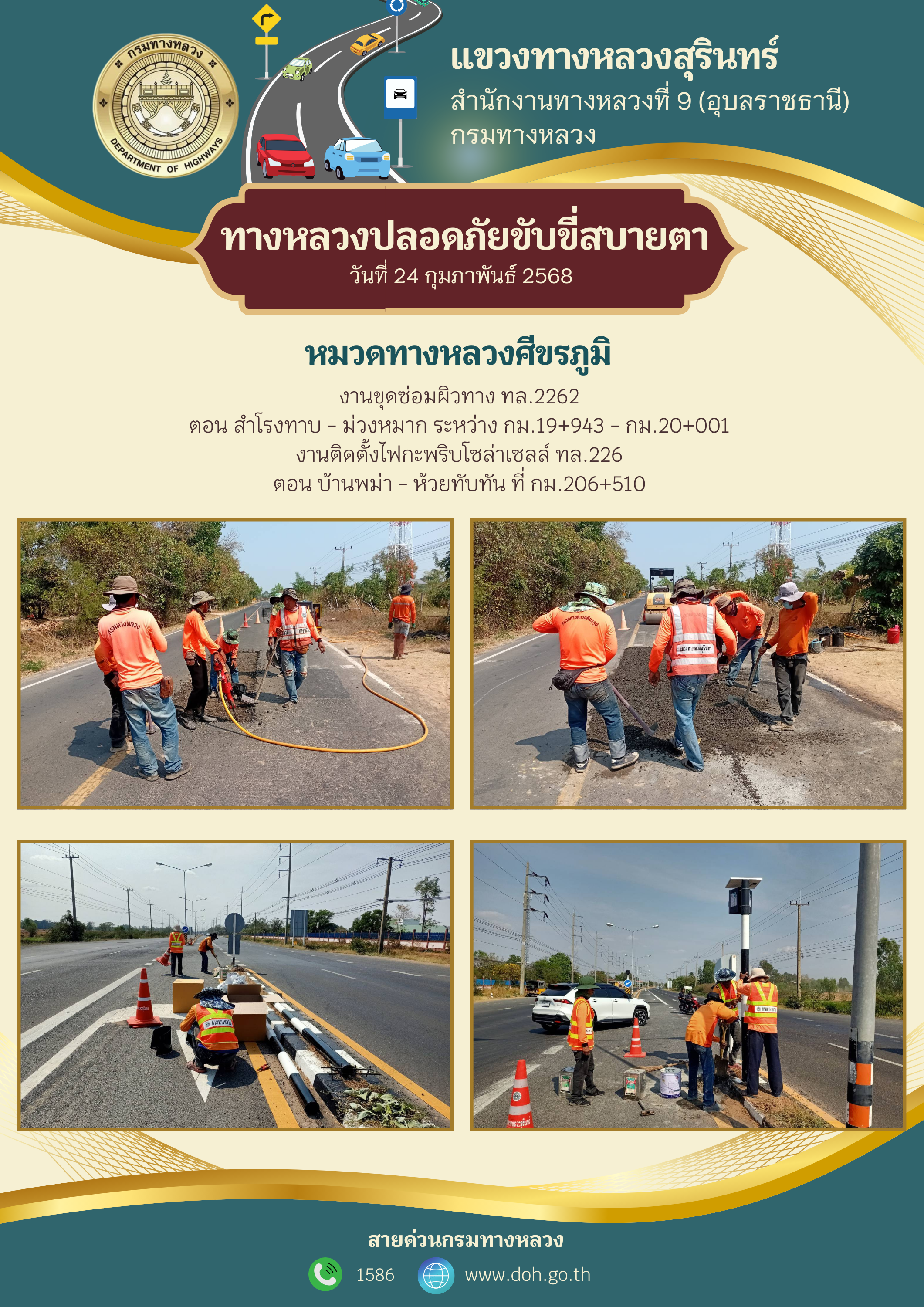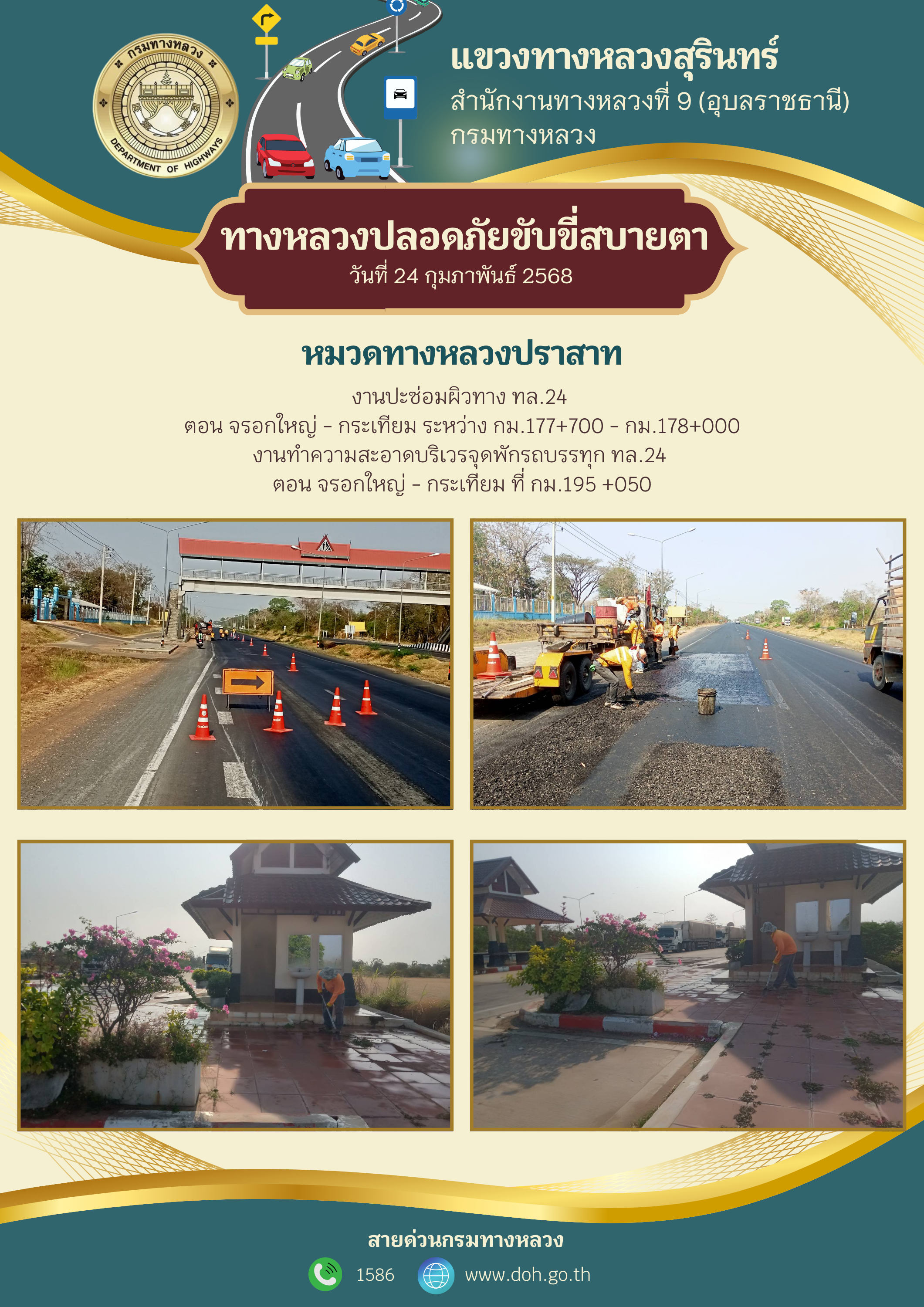 ทางหลวงปลอยภัย ขับขี่สบายตา 24 กุมภาพันธ์ 2568