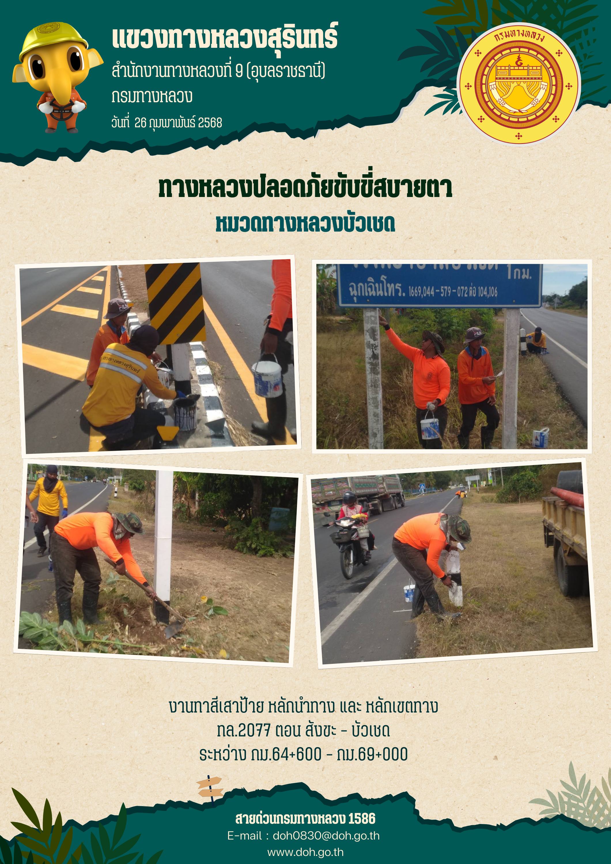 ข้อมูลภาพกิจกรรม : ทางหลวงปลอยภัย ขับขี่สบายตา 26 กุมภาพันธ์ 2568