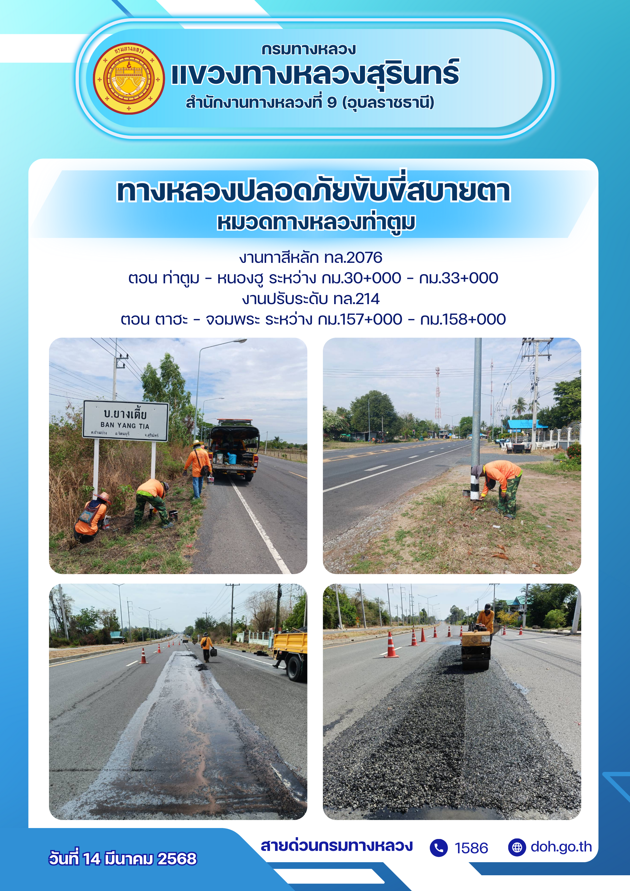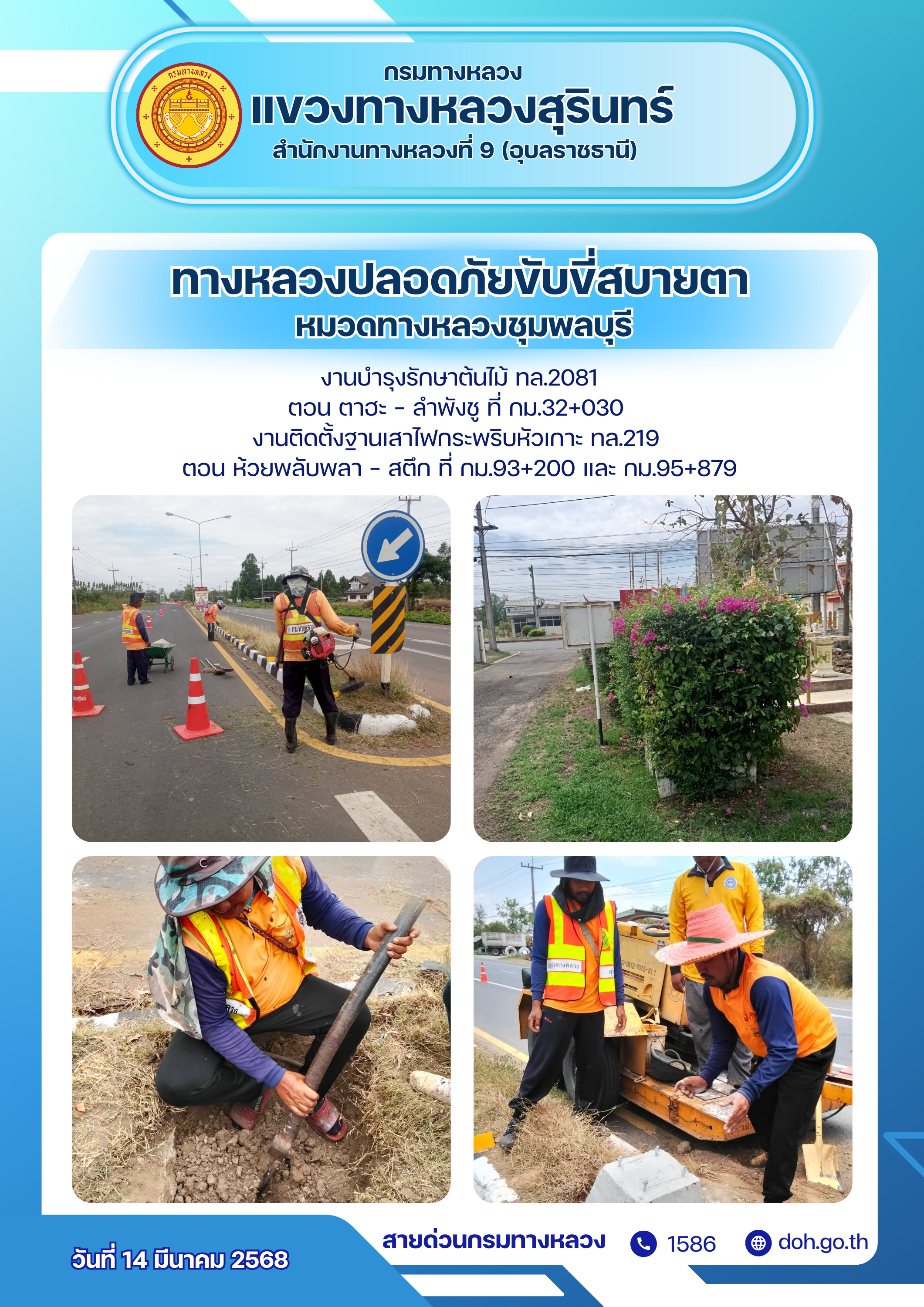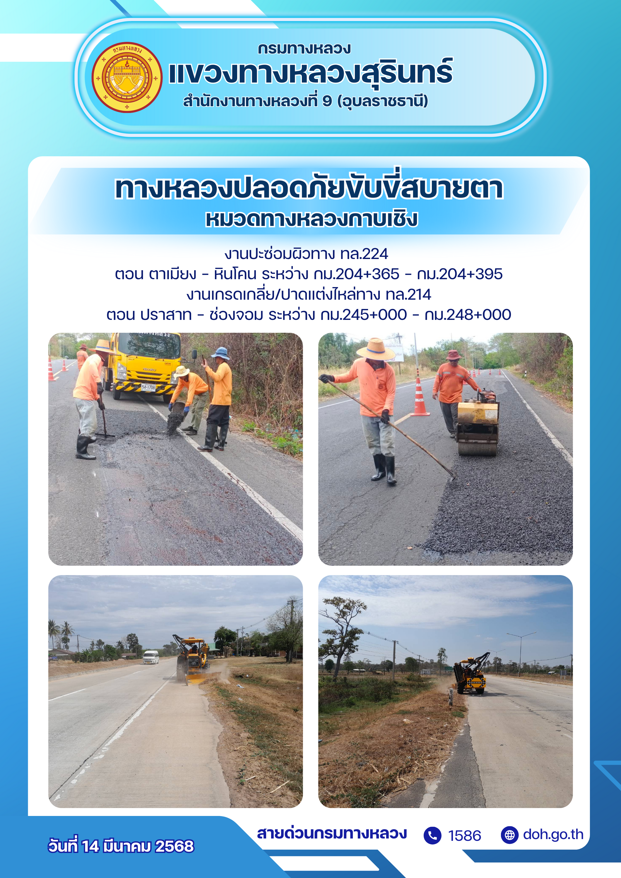 ข้อมูลภาพกิจกรรม : ทางหลวงปลอยภัย ขับขี่สบายตา 14 มีนาคม 2568