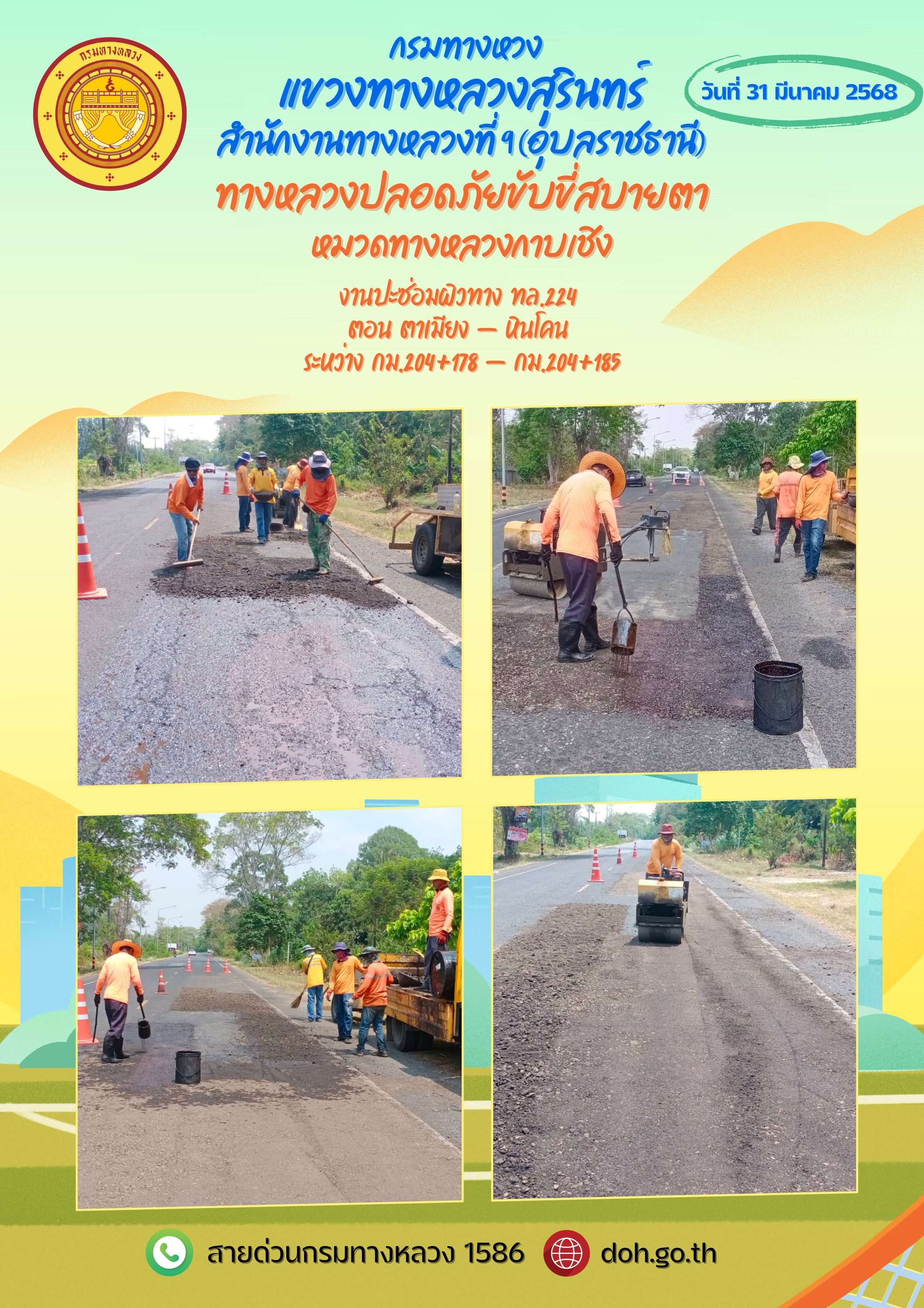 ทางหลวงปลอยภัย ขับขี่สบายตา 31 มีนาคม 2568