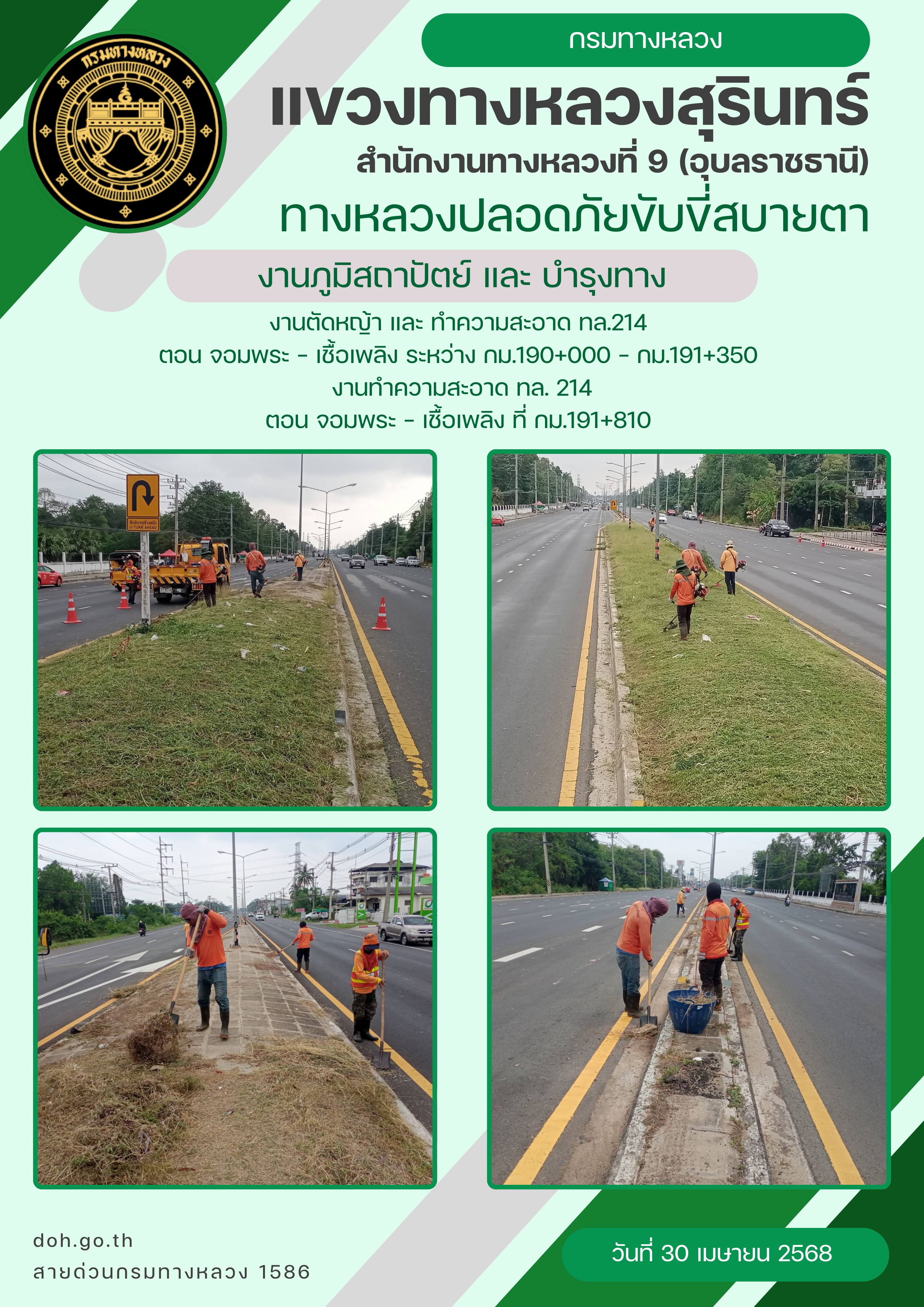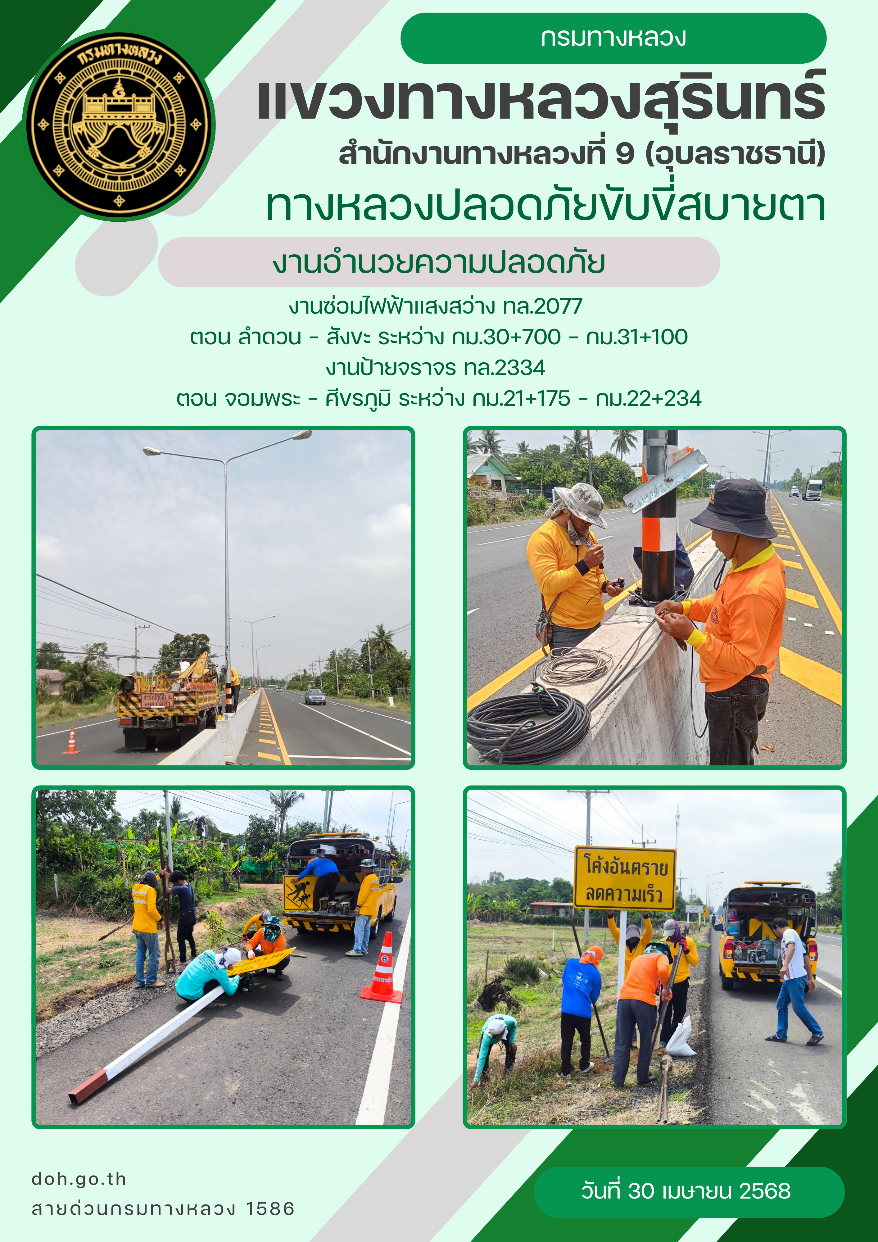 ข้อมูลภาพกิจกรรม : ทางหลวงปลอยภัย ขับขี่สบายตา 30 เมษายน 2568