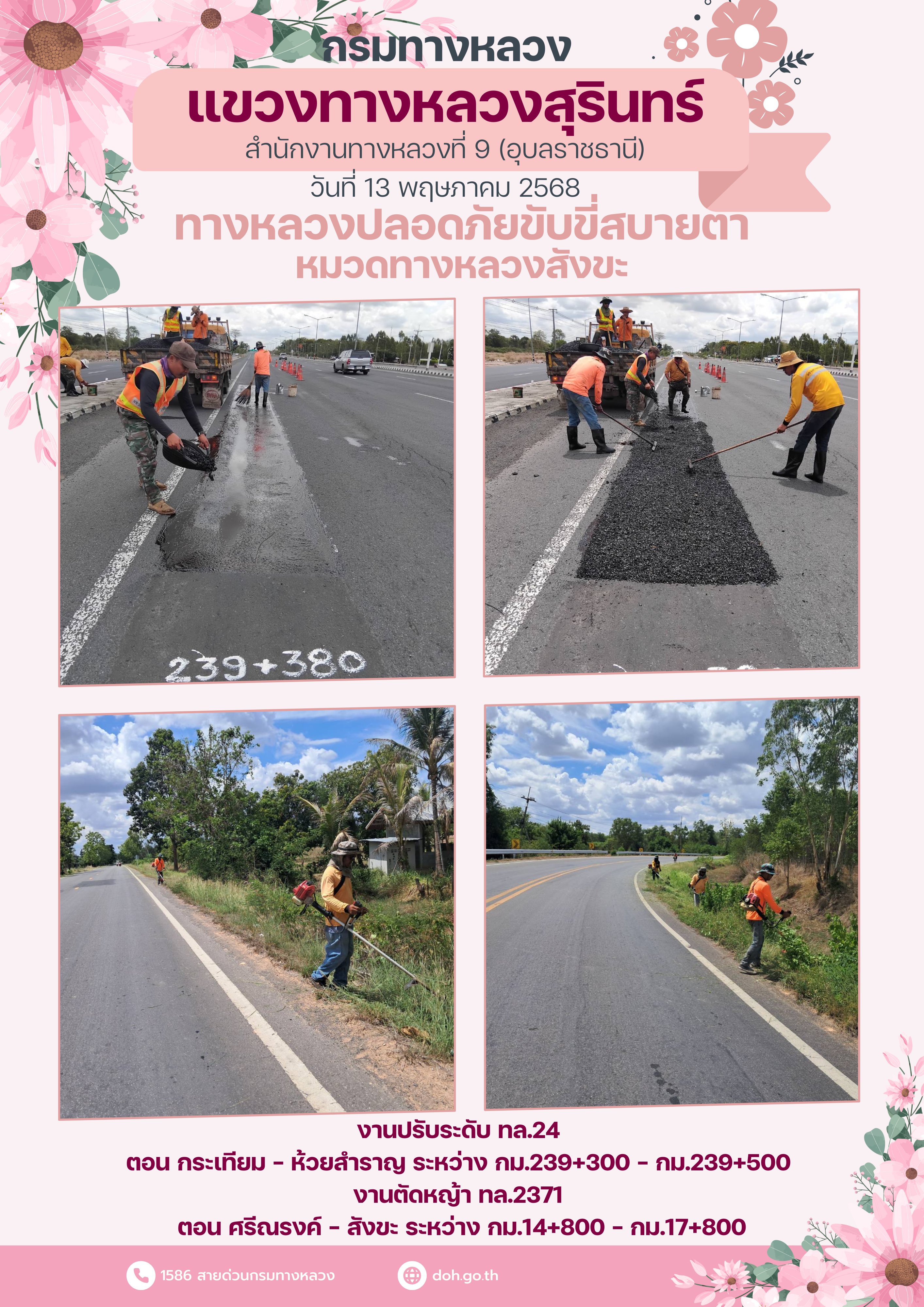 ทางหลวงปลอยภัย ขับขี่สบายตา 13 พฤษภาคม 2568