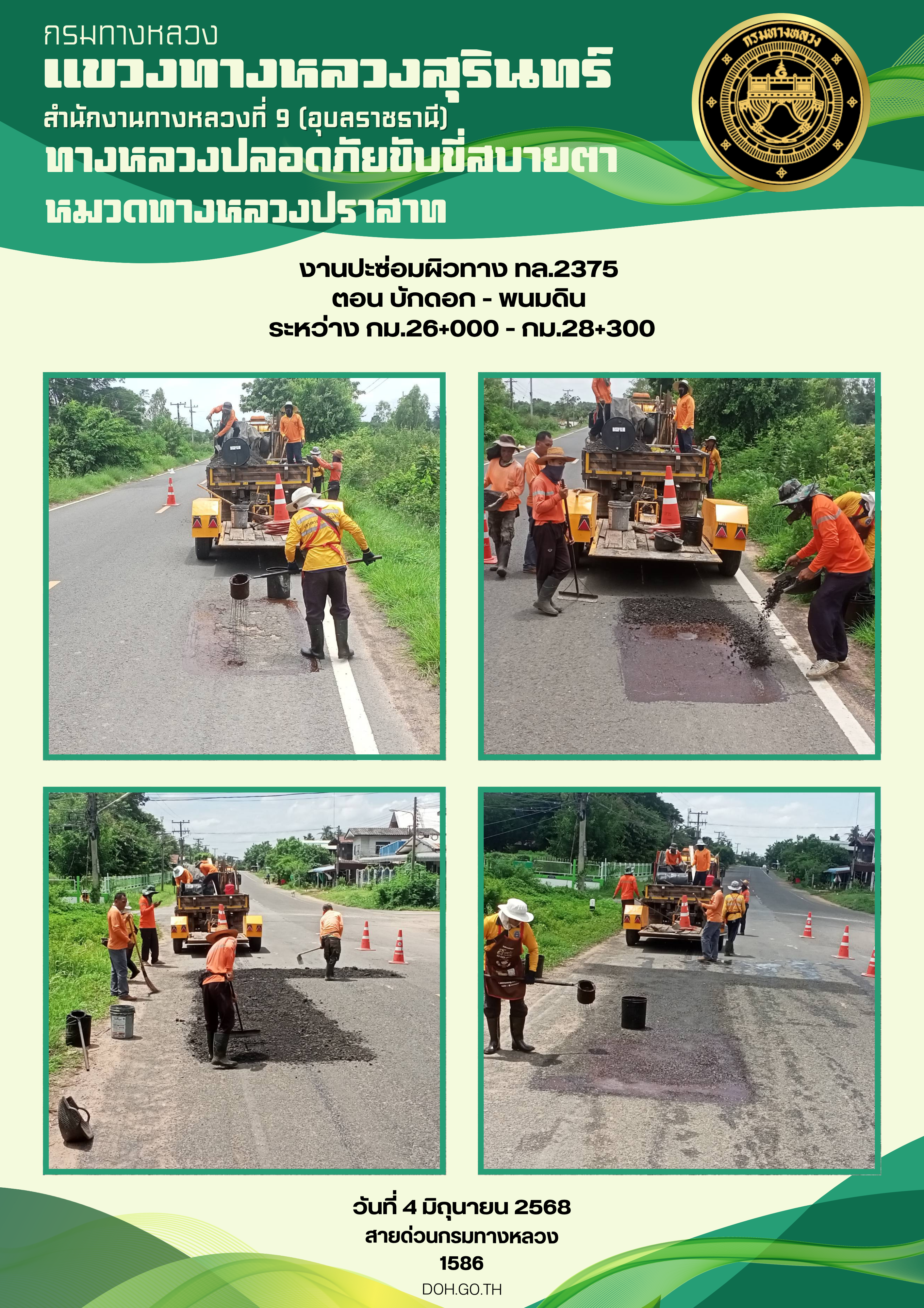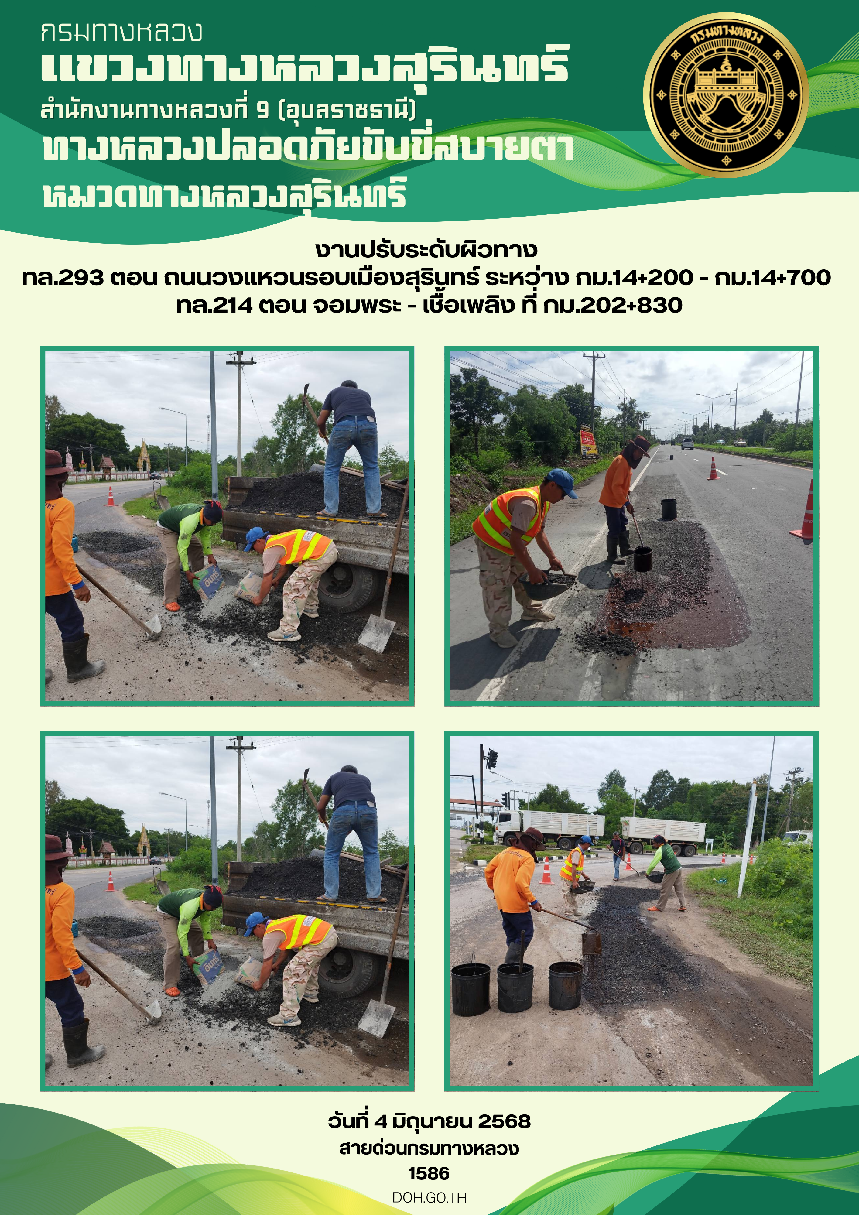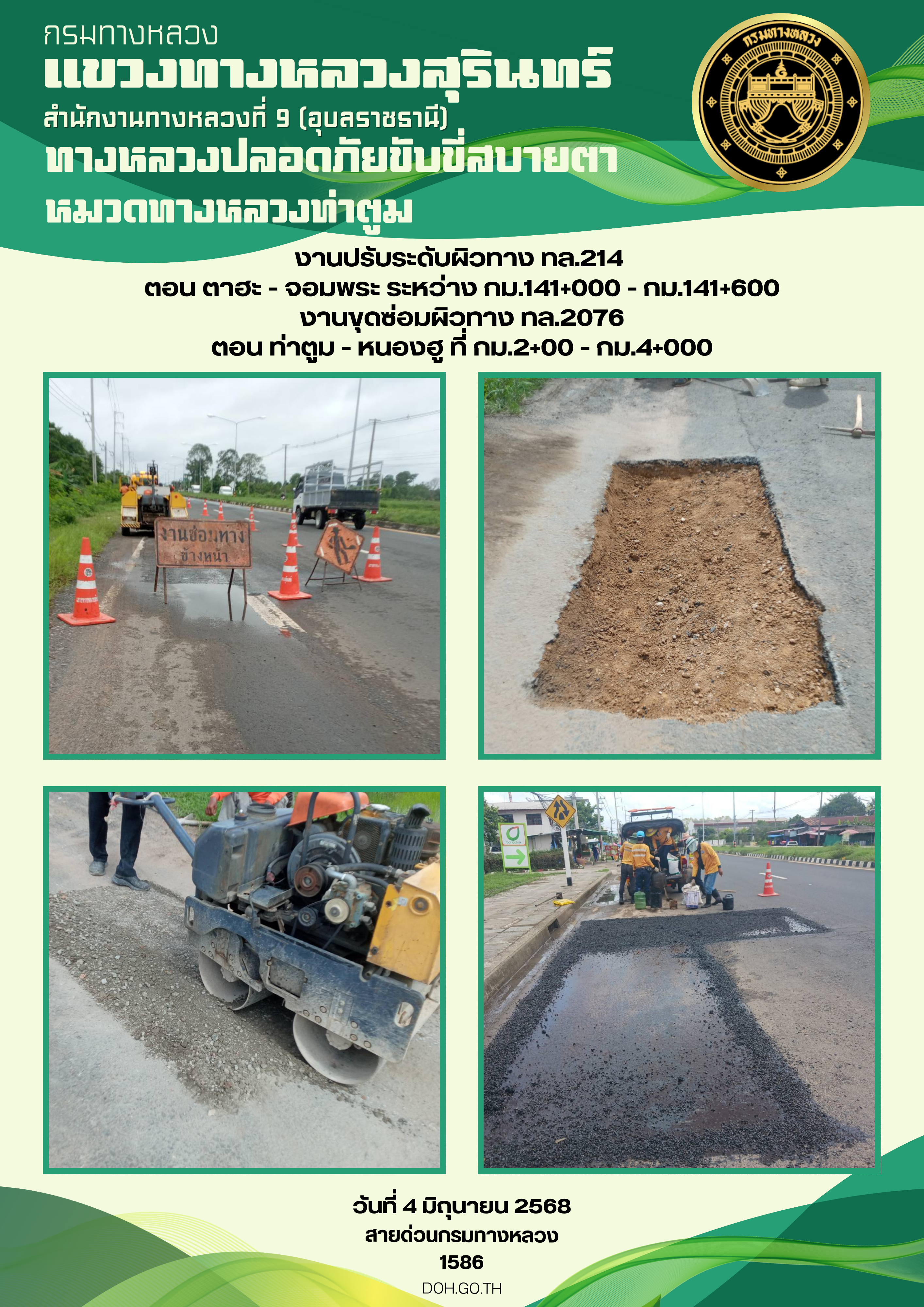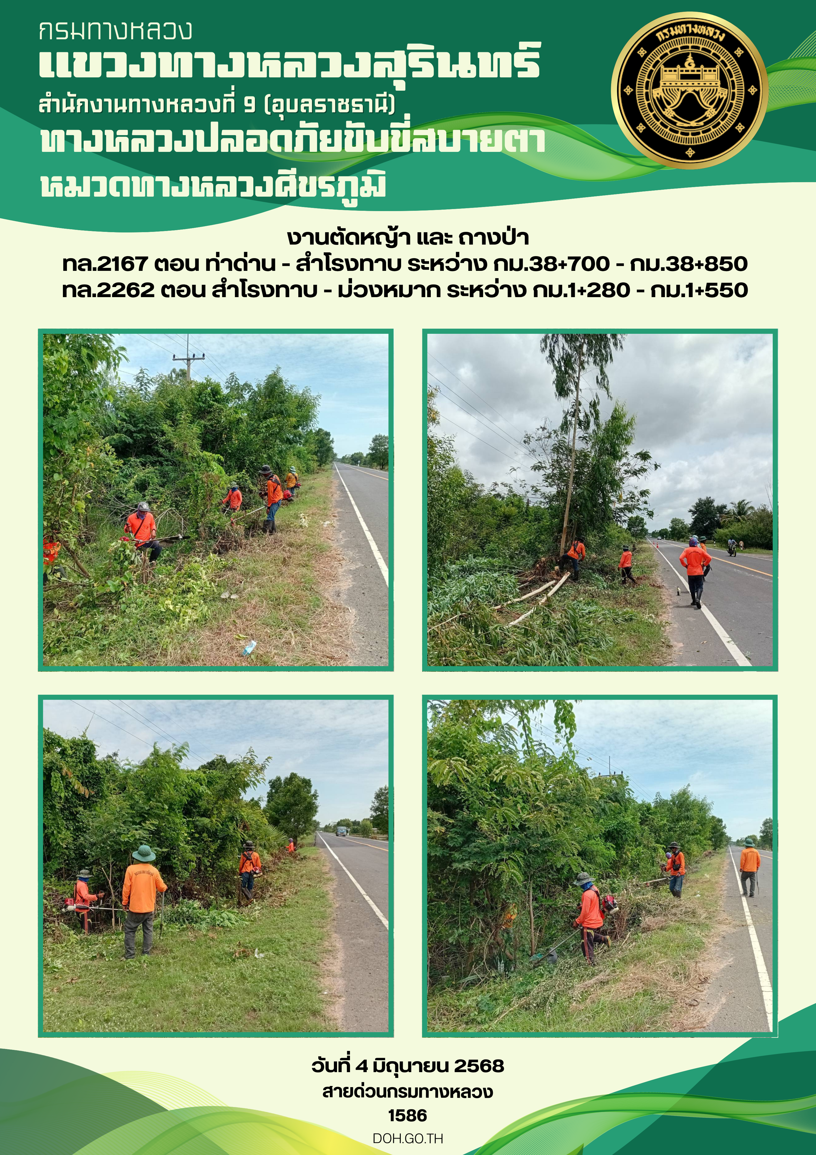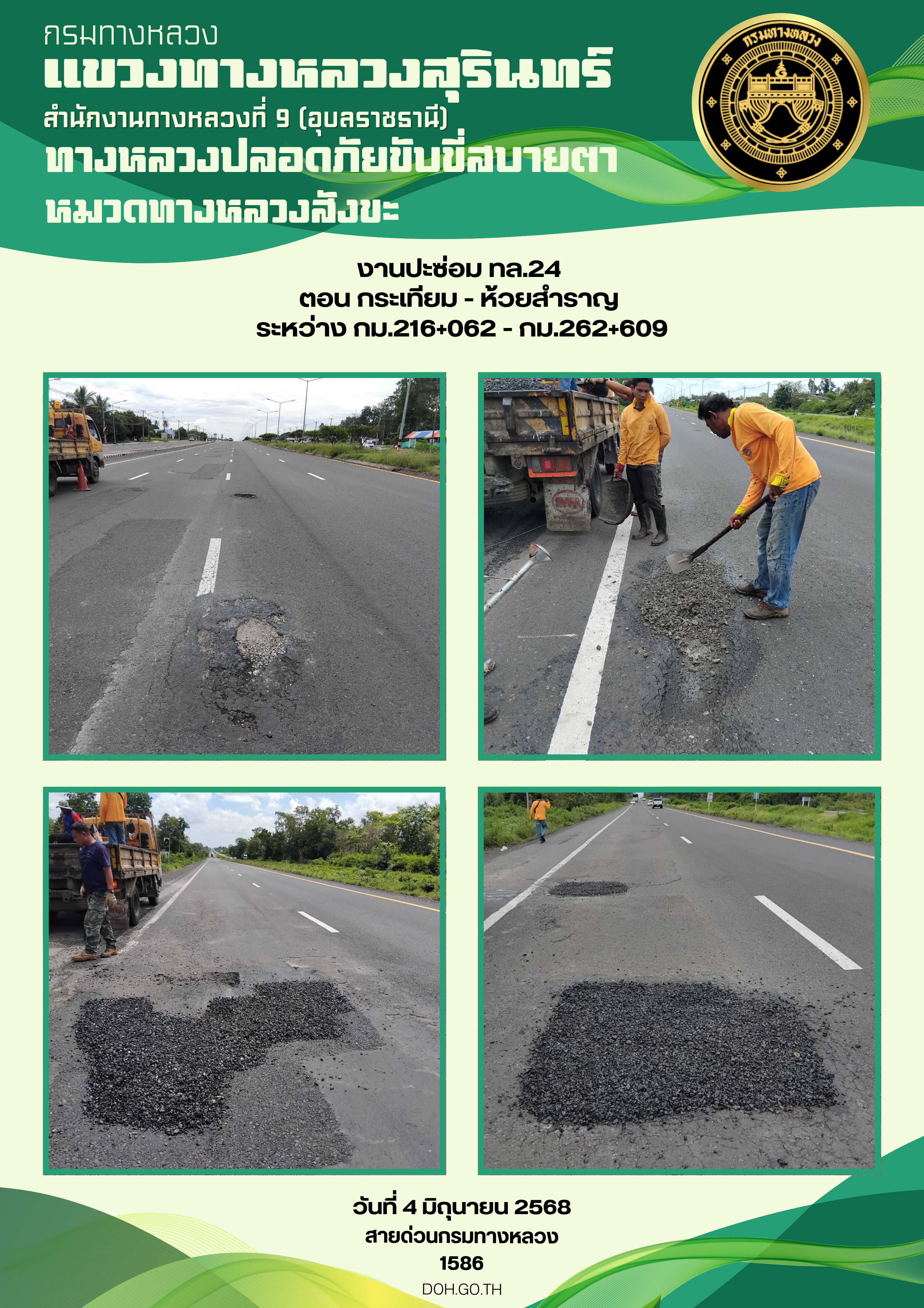 ทางหลวงปลอยภัย ขับขี่สบายตา 4 มิถุนายน 2568