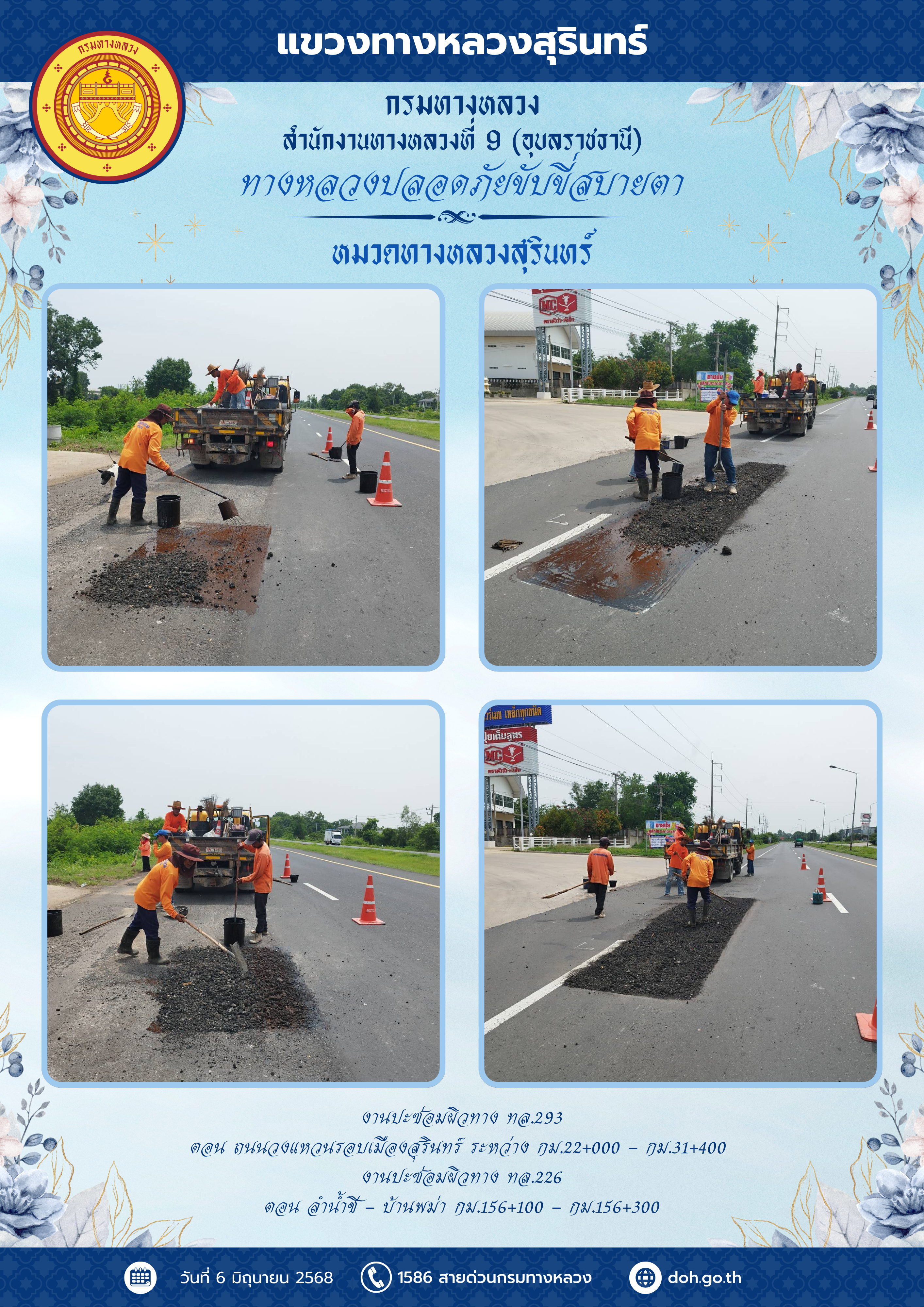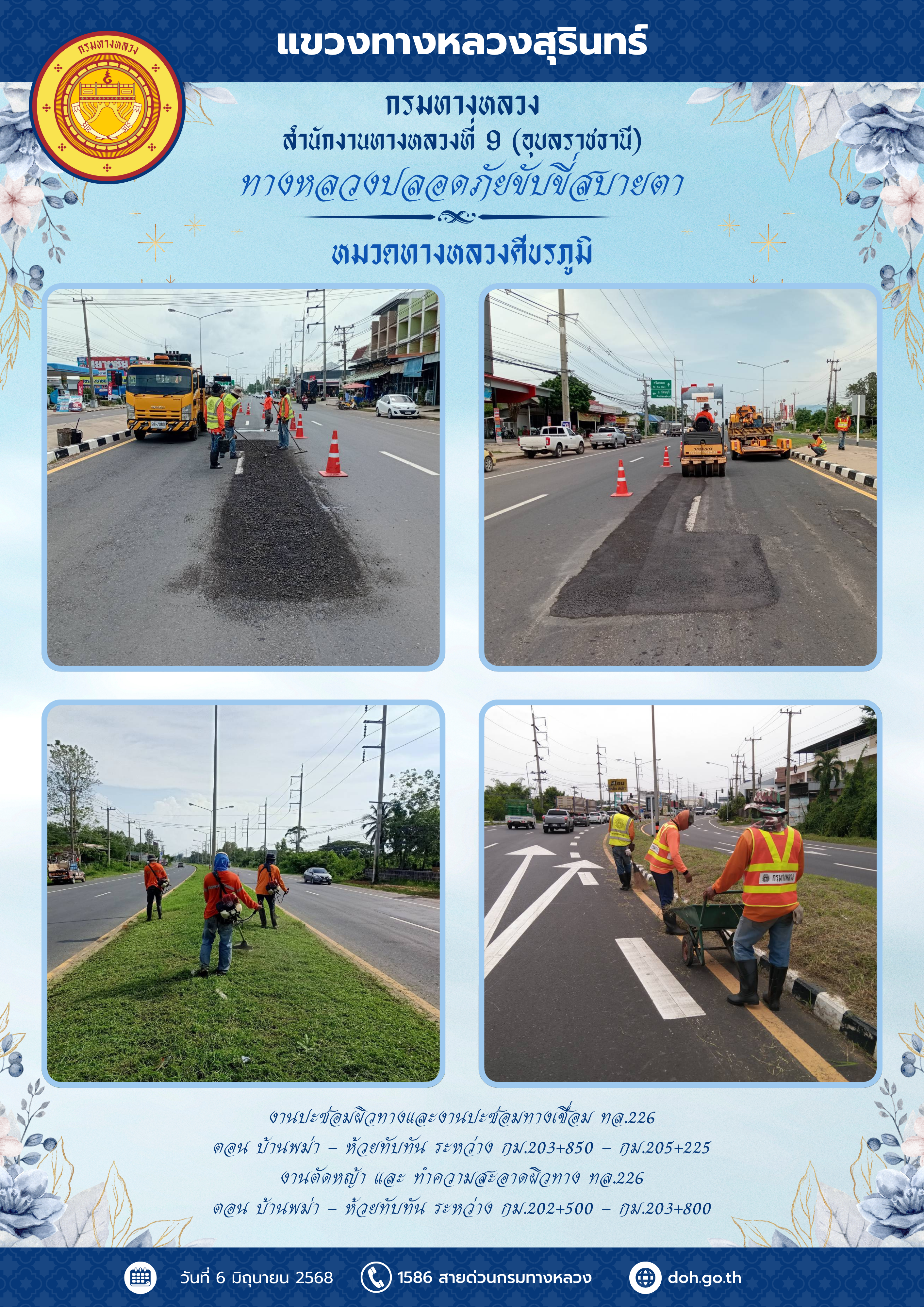 ทางหลวงปลอยภัย ขับขี่สบายตา 6 มิถุนายน 2568