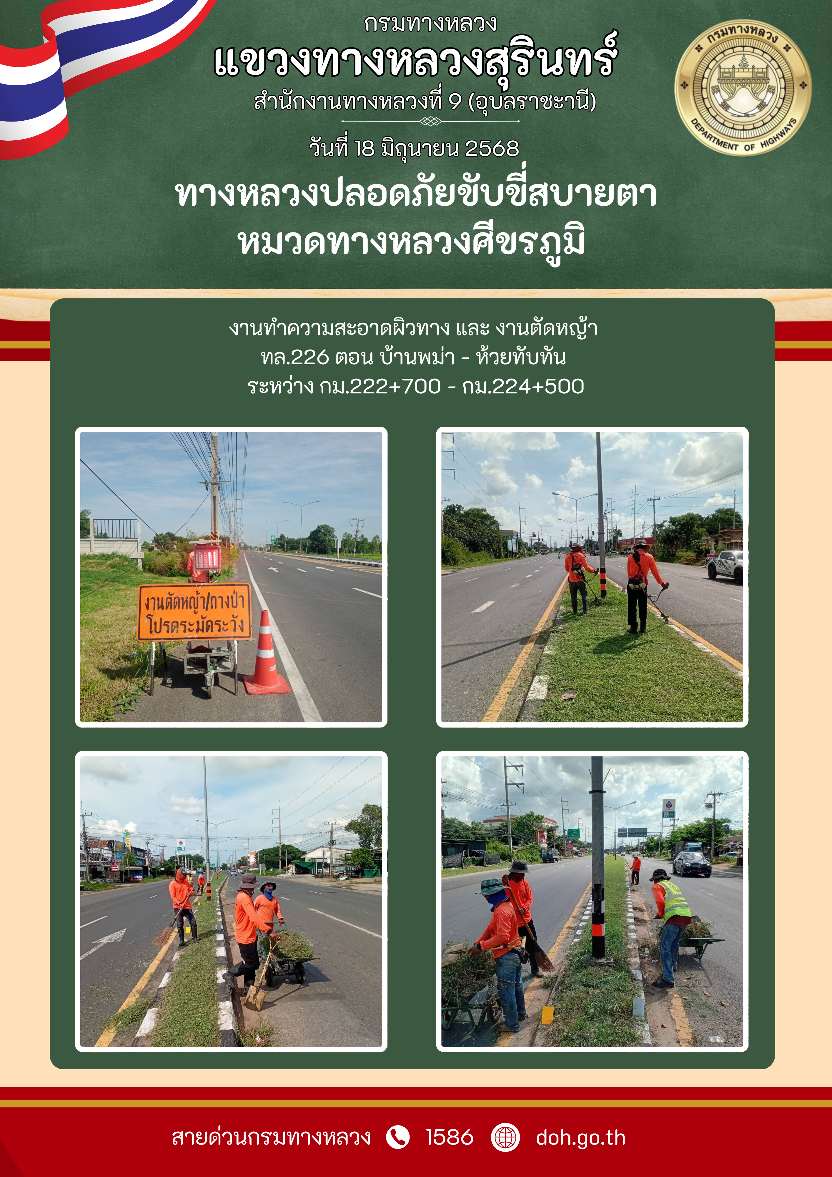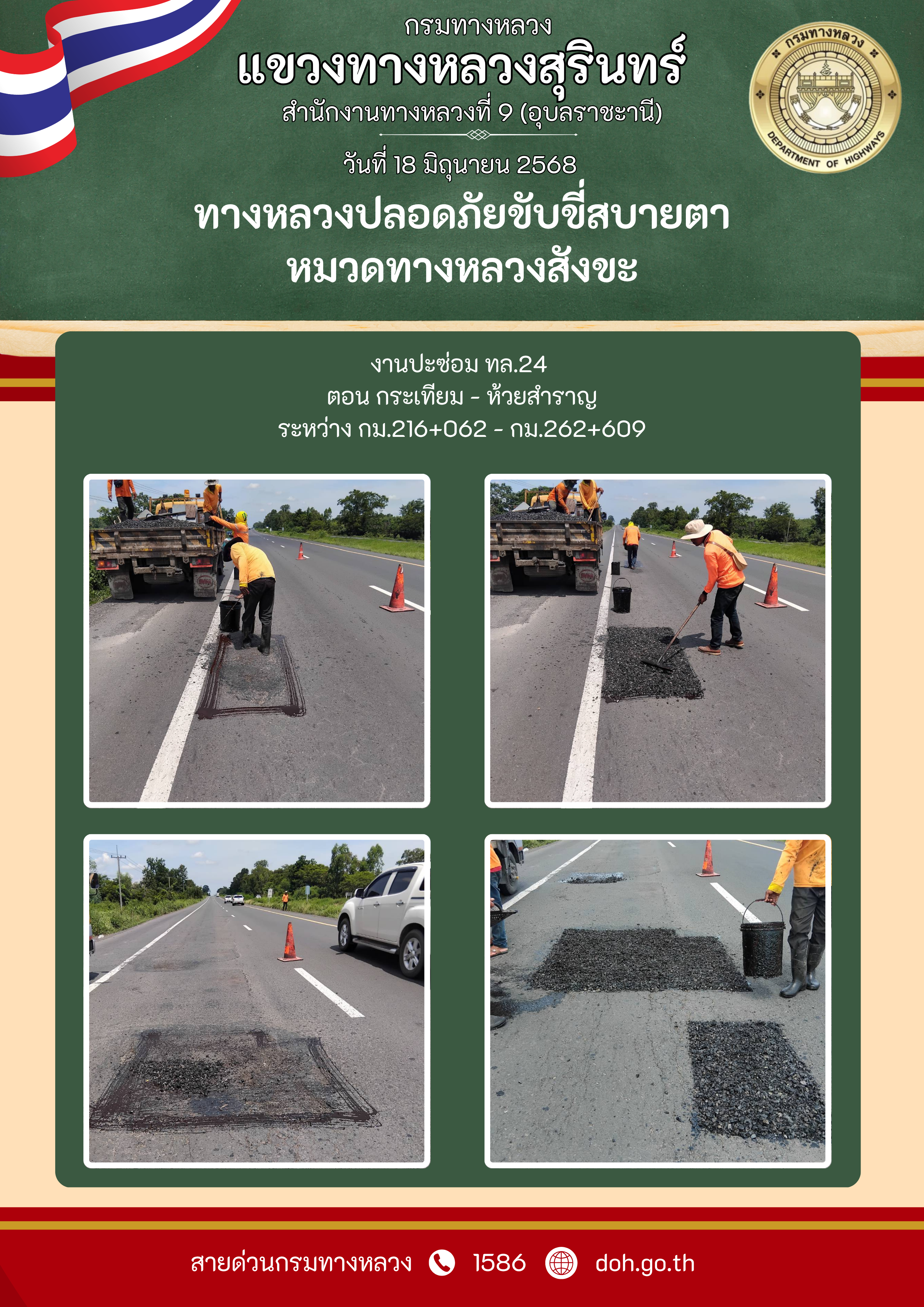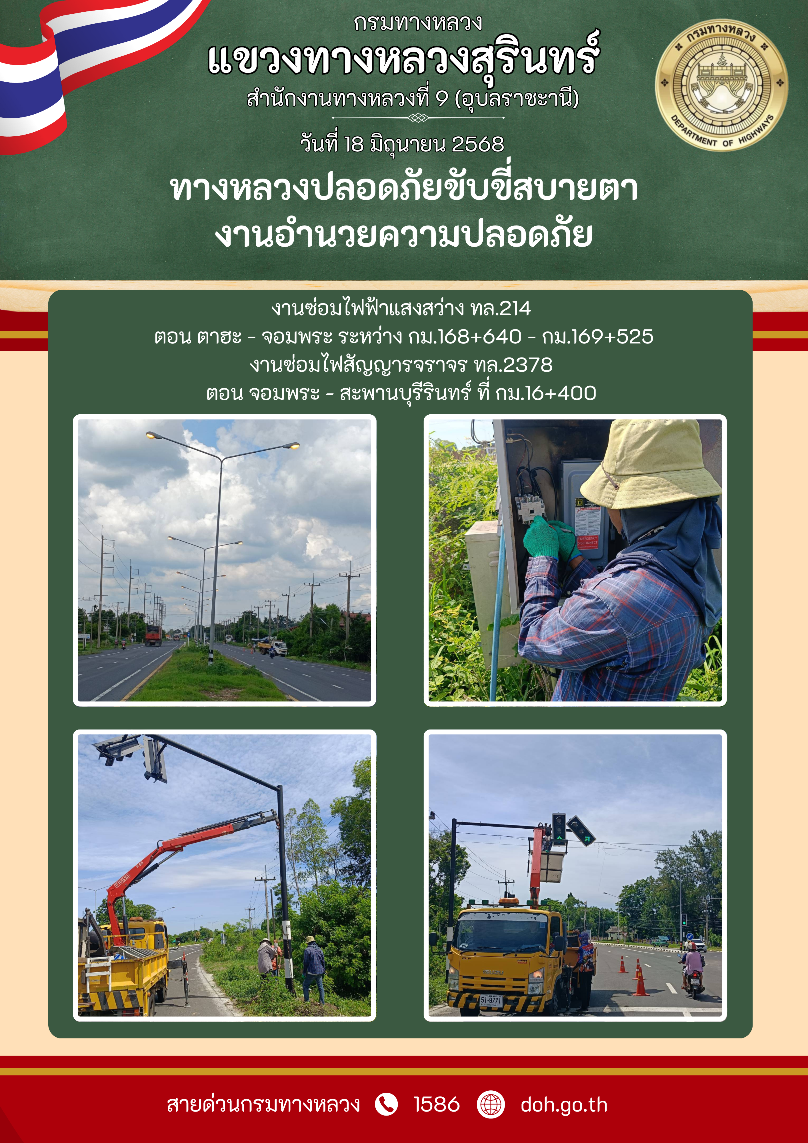 ทางหลวงปลอยภัย ขับขี่สบายตา 18 มิถุนายน 2568
