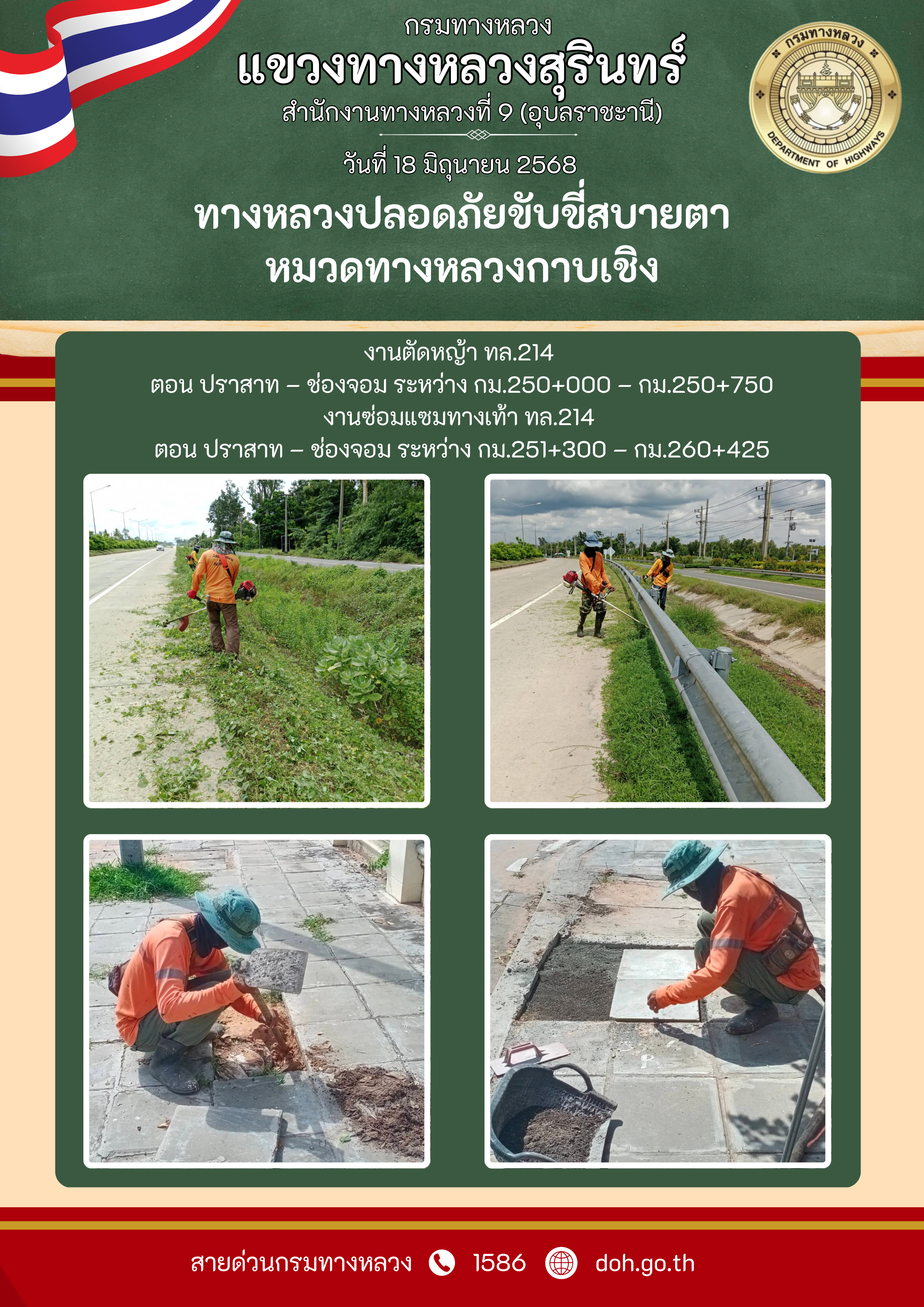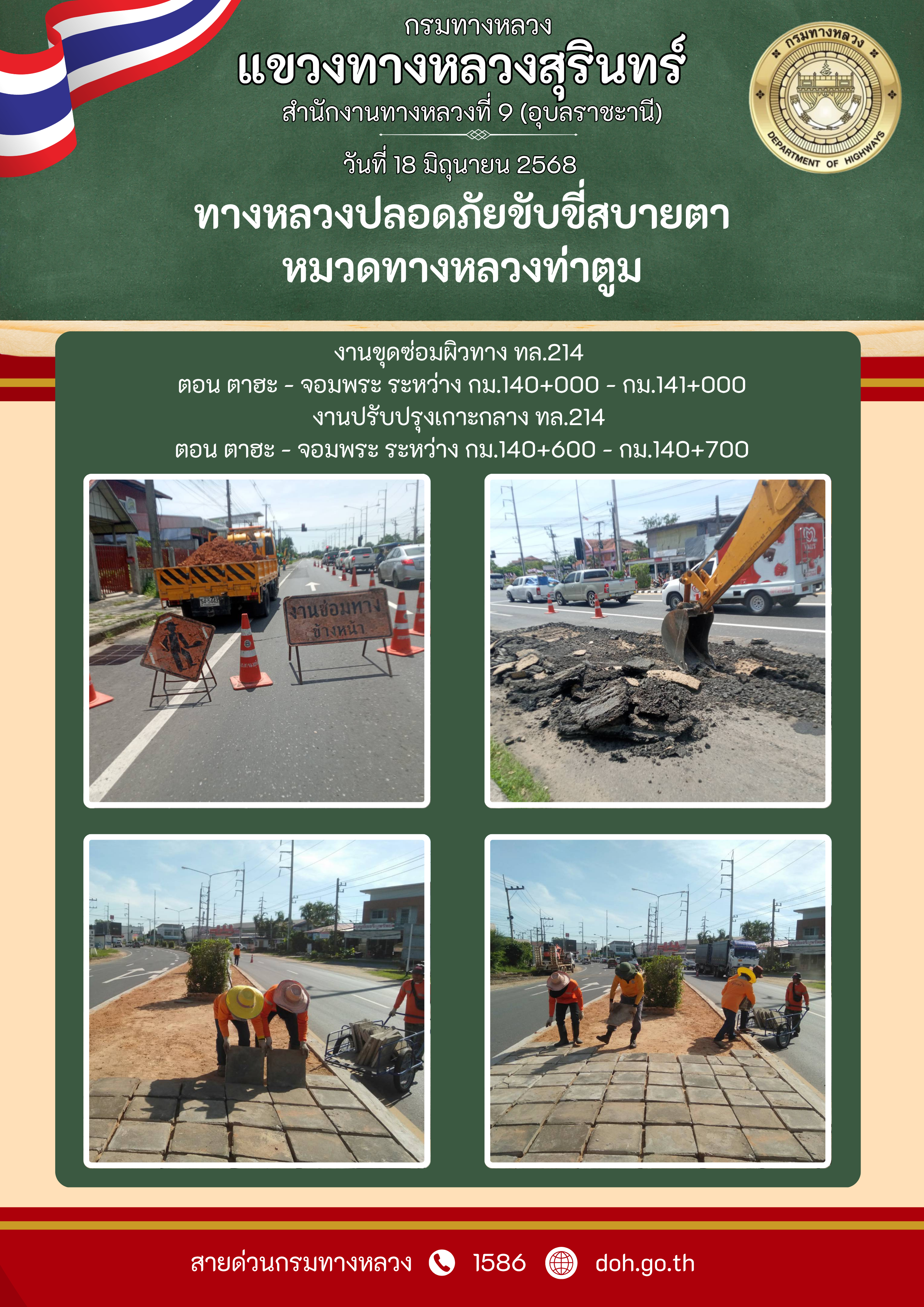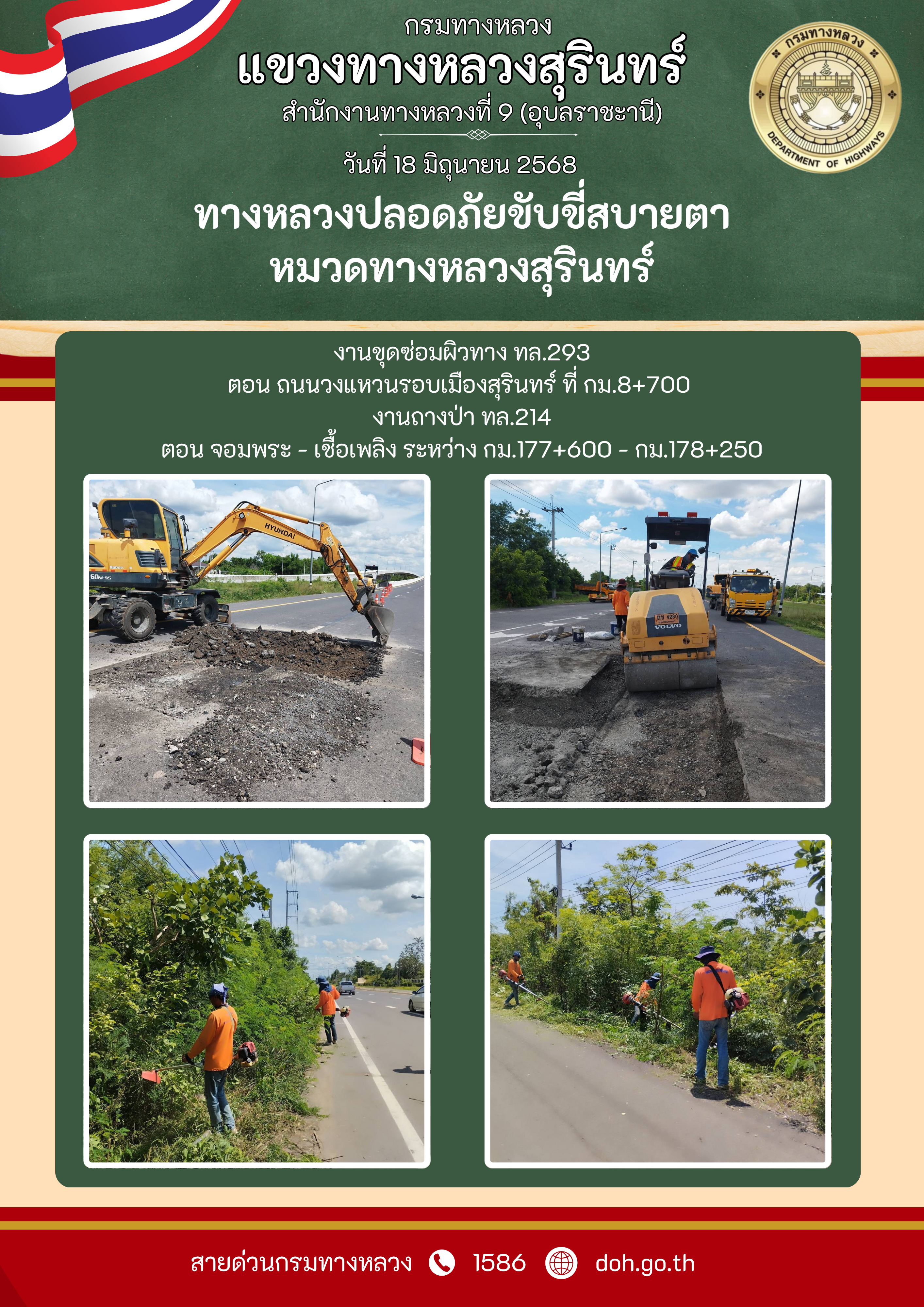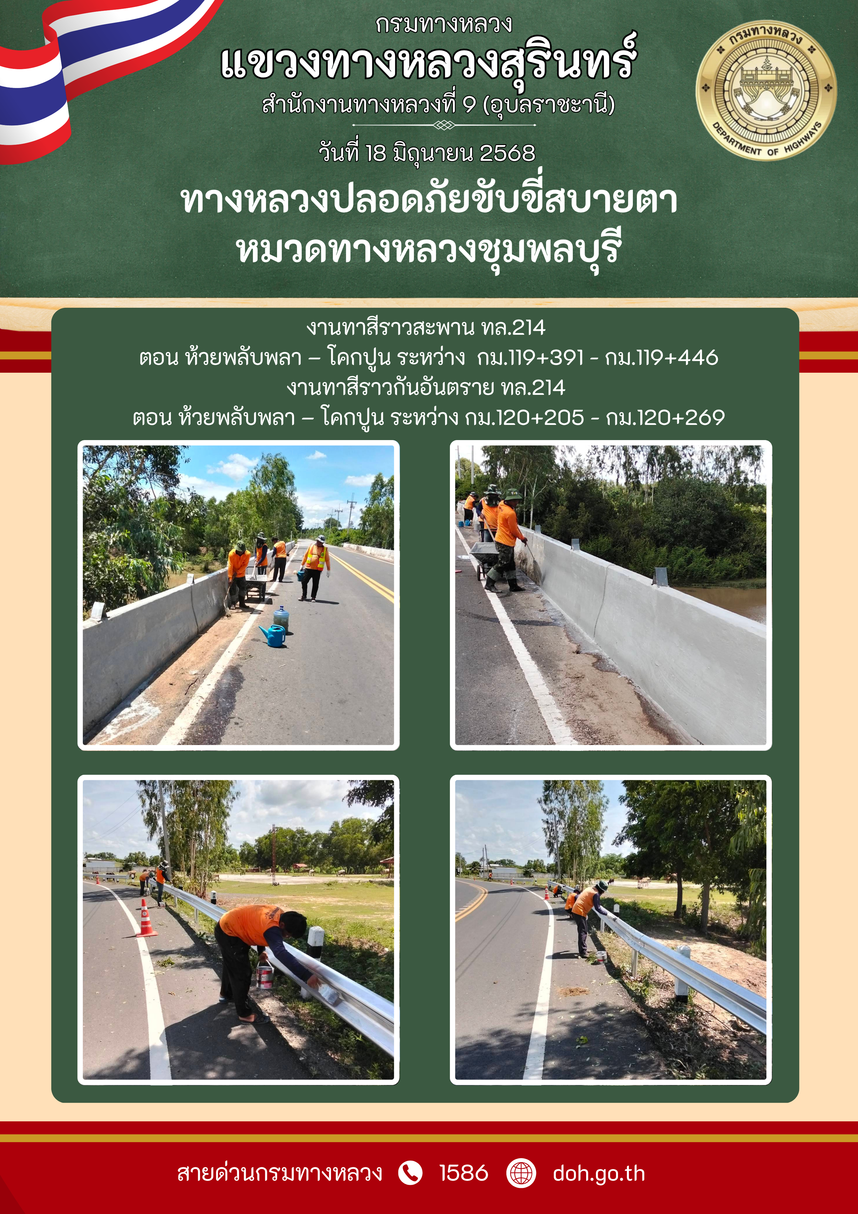 ทางหลวงปลอยภัย ขับขี่สบายตา 18 มิถุนายน 2568